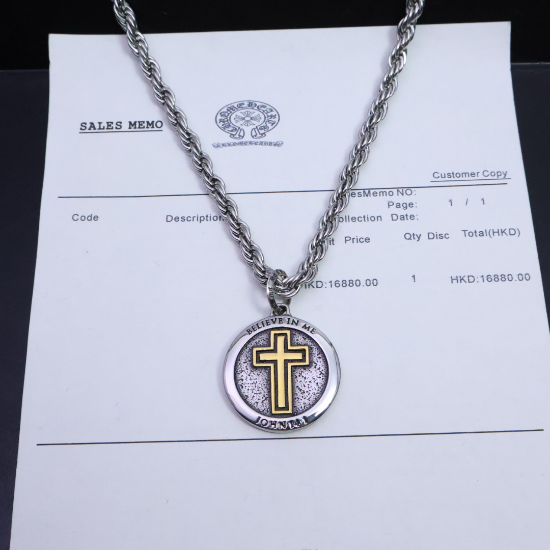 这款首饰是AAAAA 1:1 质量 (非常棒). 使用了和原版一模一样的材料. 商标部分也保持了和克罗心/Chrome Hearts一样. 图片拍摄是实物首饰拍摄, 您所收到的实物保证和我们图片一模一样.