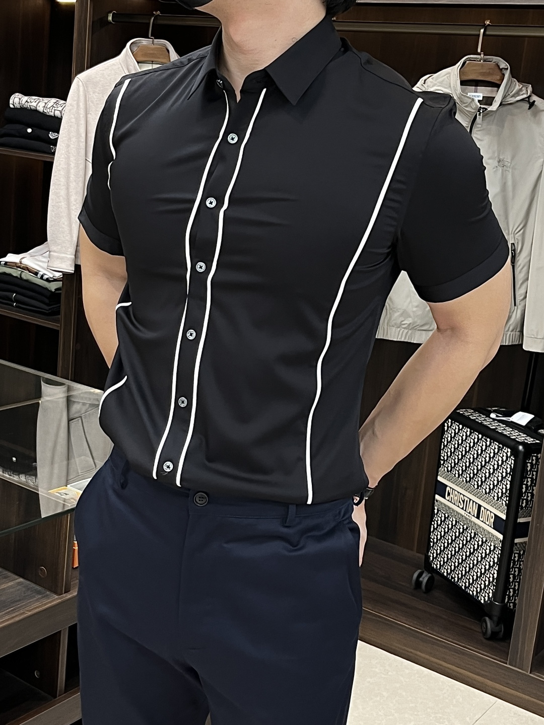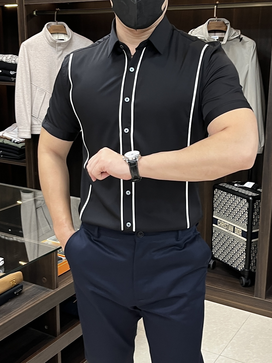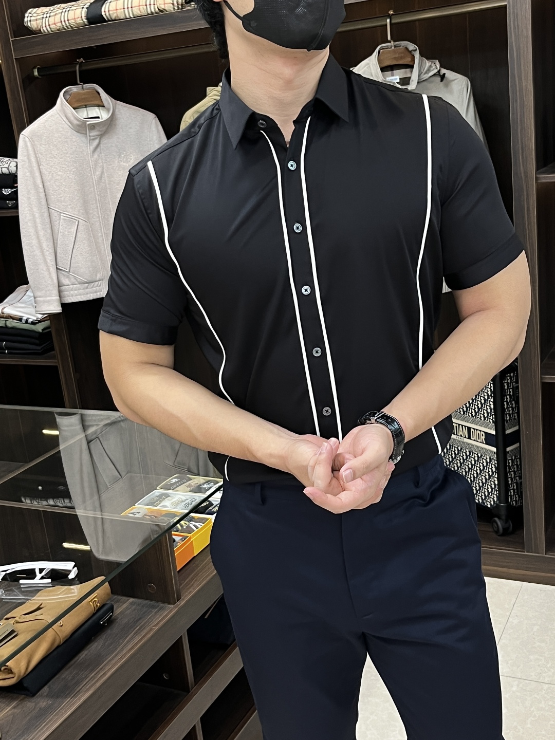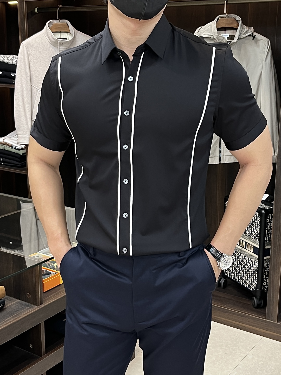 这款衣服是AAAAA 1:1 质量 (非常棒). 使用了和原版一模一样的材料. 商标部分也保持了和阿玛尼/Armani一样. 图片拍摄是实物衣服拍摄, 您所收到的实物保证和我们图片一模一样.