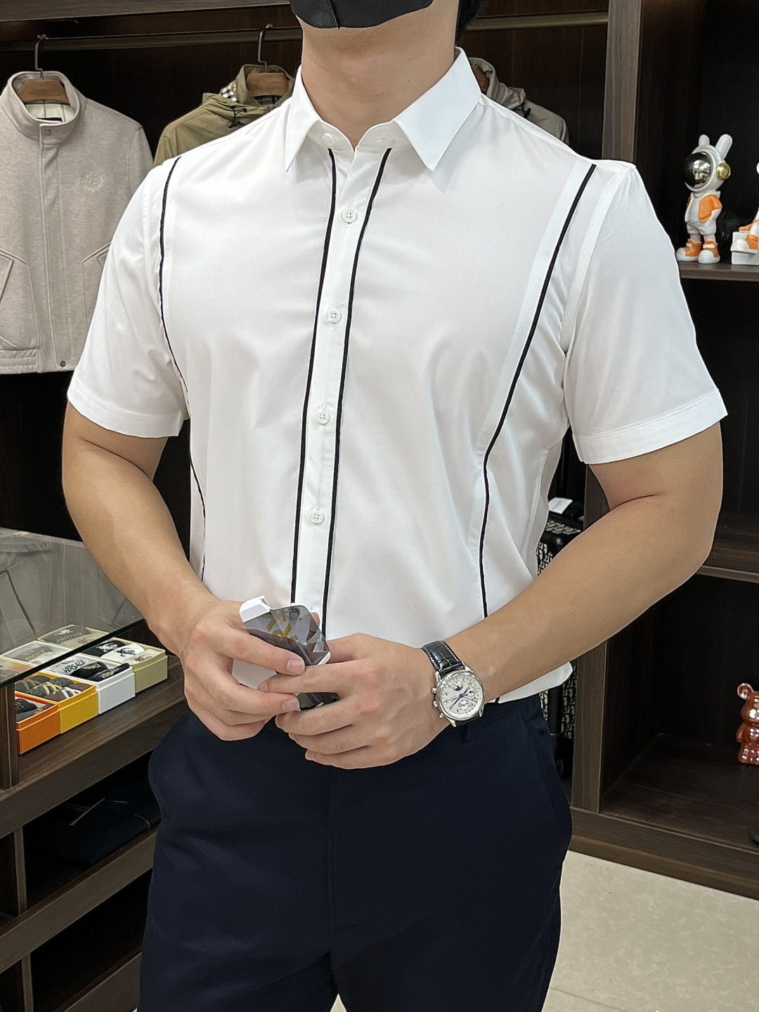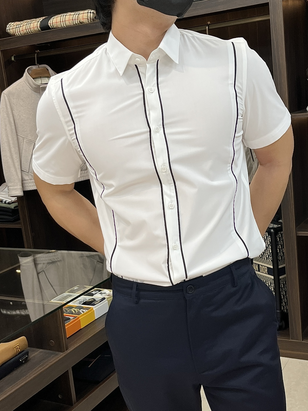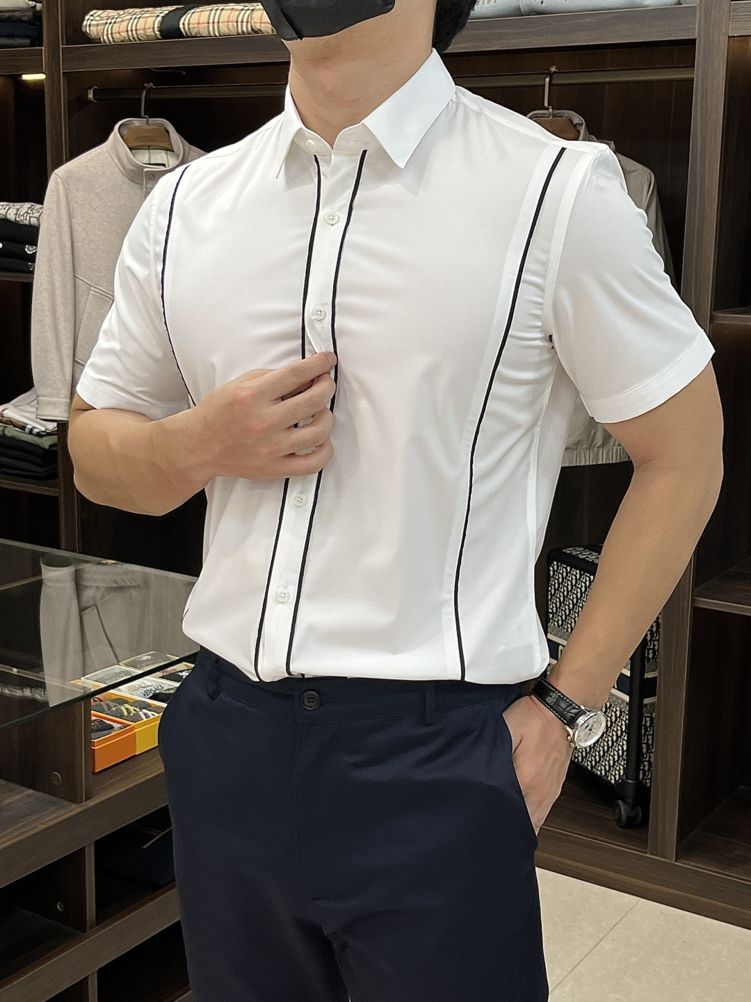 这款衣服是AAAAA 1:1 质量 (非常棒). 使用了和原版一模一样的材料. 商标部分也保持了和阿玛尼/Armani一样. 图片拍摄是实物衣服拍摄, 您所收到的实物保证和我们图片一模一样.