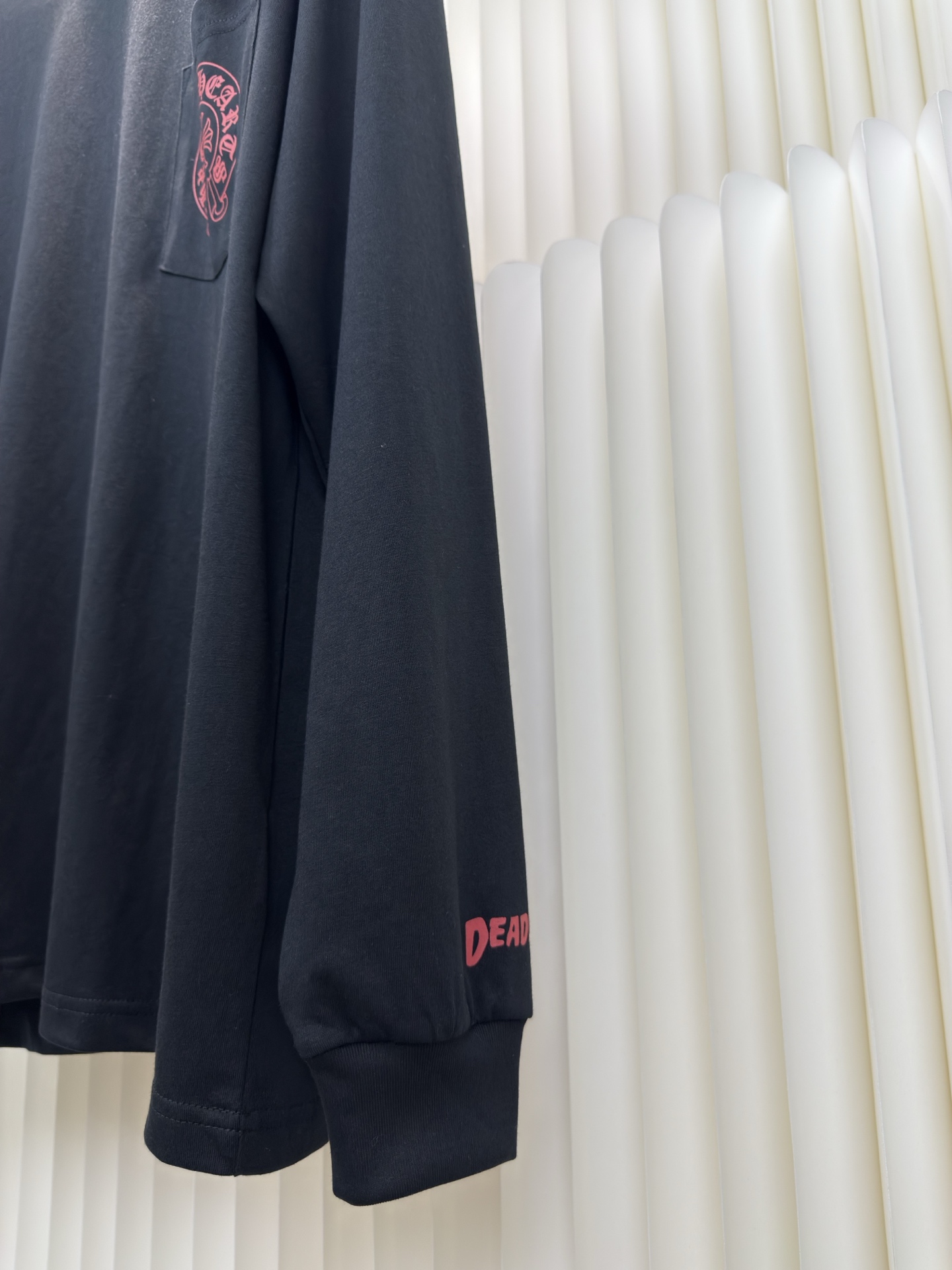 这款衣服是AAAAA 1:1 质量 (非常棒). 使用了和原版一模一样的材料. 商标部分也保持了和克罗心/Chrome Hearts一样. 图片拍摄是实物衣服拍摄, 您所收到的实物保证和我们图片一模一样.