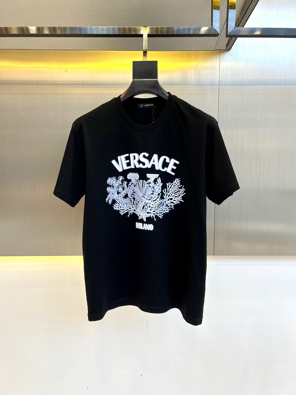 这款衣服是AAAAA 1:1 质量 (非常棒). 使用了和原版一模一样的材料. 商标部分也保持了和范思哲/Versace一样. 图片拍摄是实物衣服拍摄, 您所收到的实物保证和我们图片一模一样.