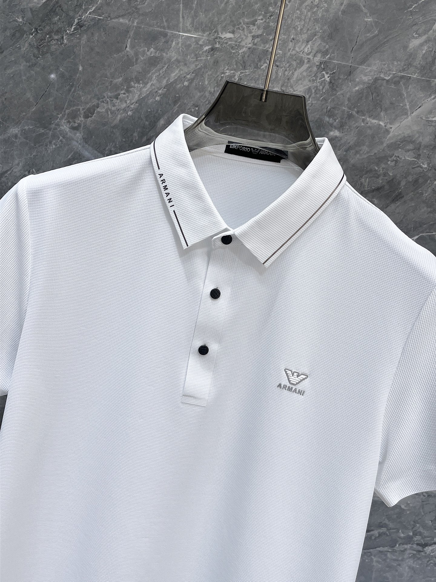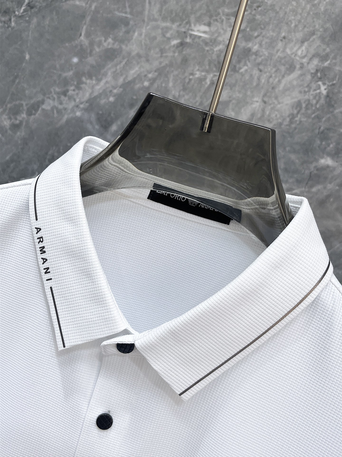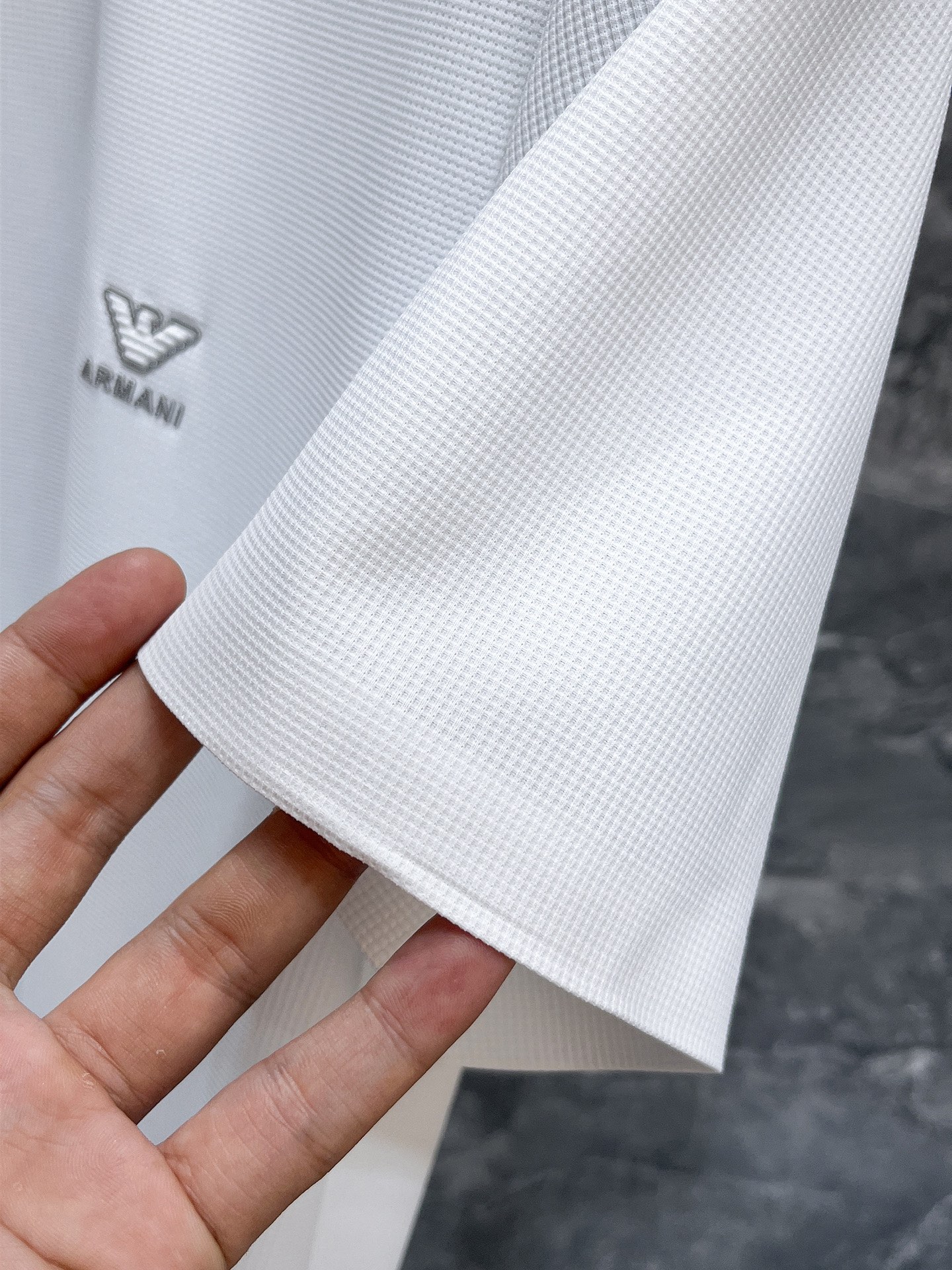 这款衣服是AAAAA 1:1 质量 (非常棒). 使用了和原版一模一样的材料. 商标部分也保持了和阿玛尼/Armani一样. 图片拍摄是实物衣服拍摄, 您所收到的实物保证和我们图片一模一样.