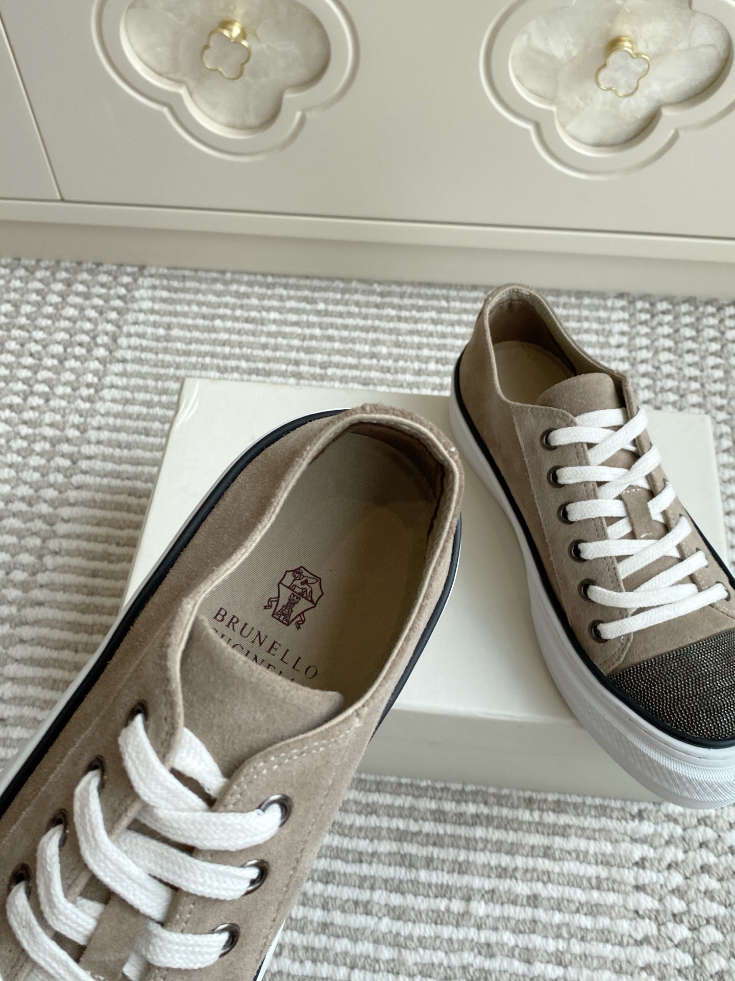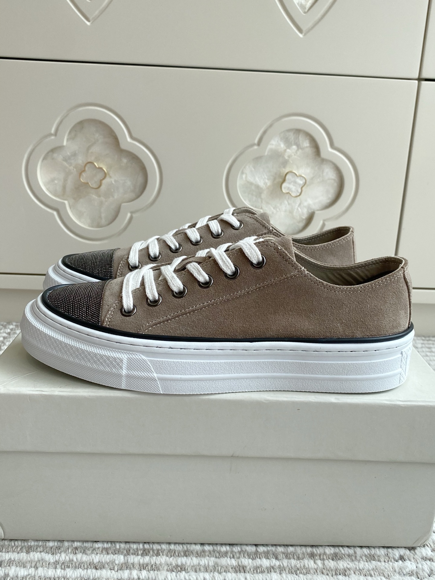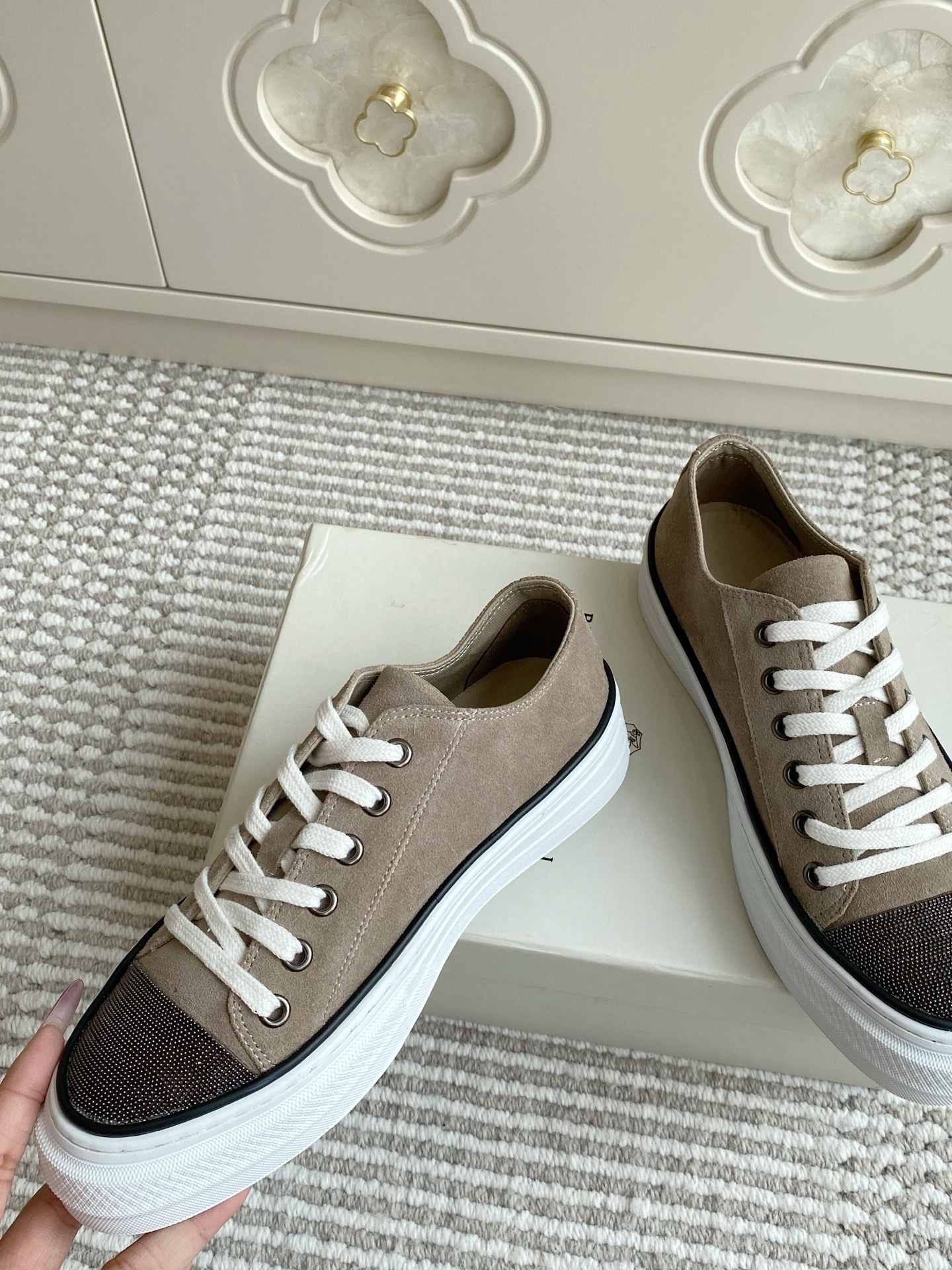 这款鞋子是AAAAA 1:1 质量 (非常棒). 使用了和原版一模一样的材料. 商标部分也保持了和Brunello Cucinelli一样. 图片拍摄是实物鞋子拍摄, 您所收到的实物保证和我们图片一模一样.