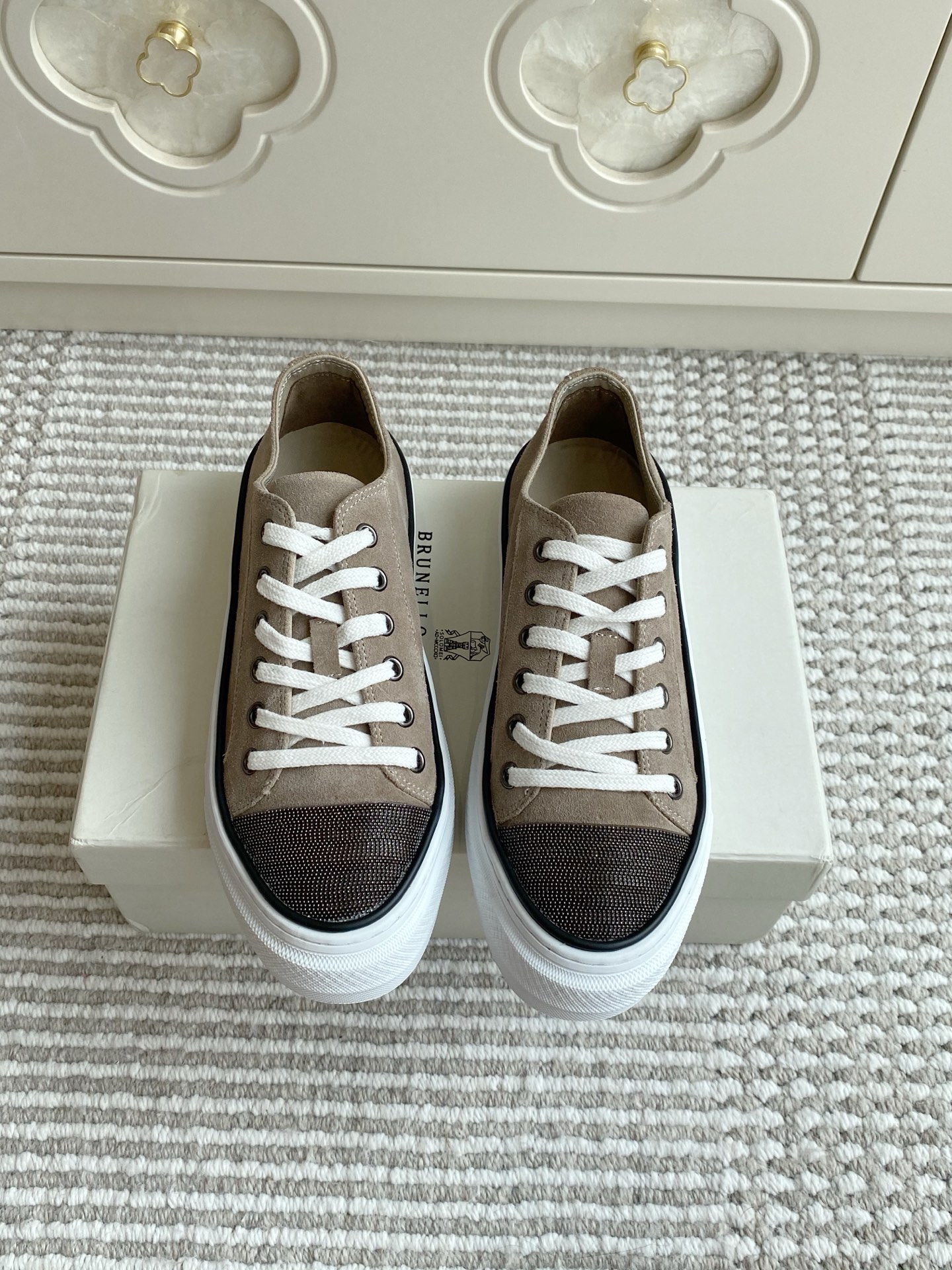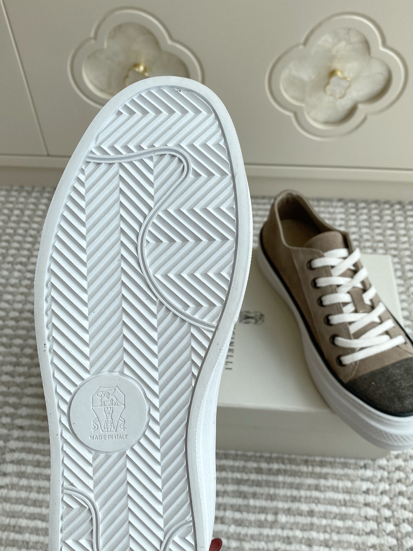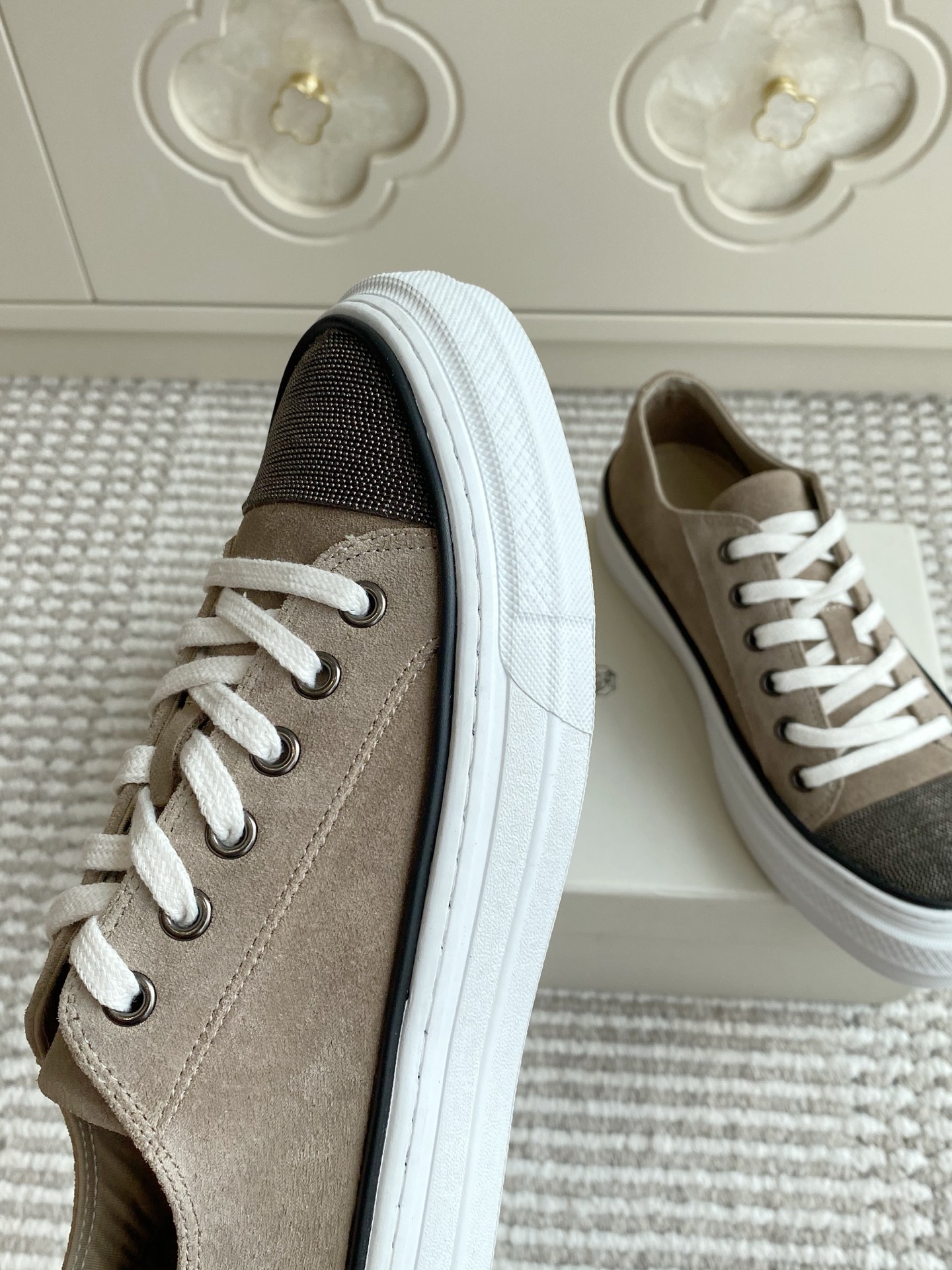 这款鞋子是AAAAA 1:1 质量 (非常棒). 使用了和原版一模一样的材料. 商标部分也保持了和Brunello Cucinelli一样. 图片拍摄是实物鞋子拍摄, 您所收到的实物保证和我们图片一模一样.