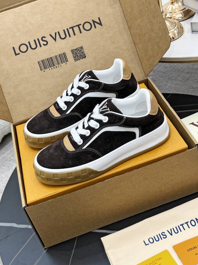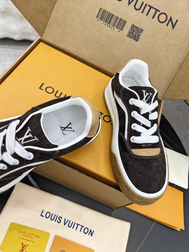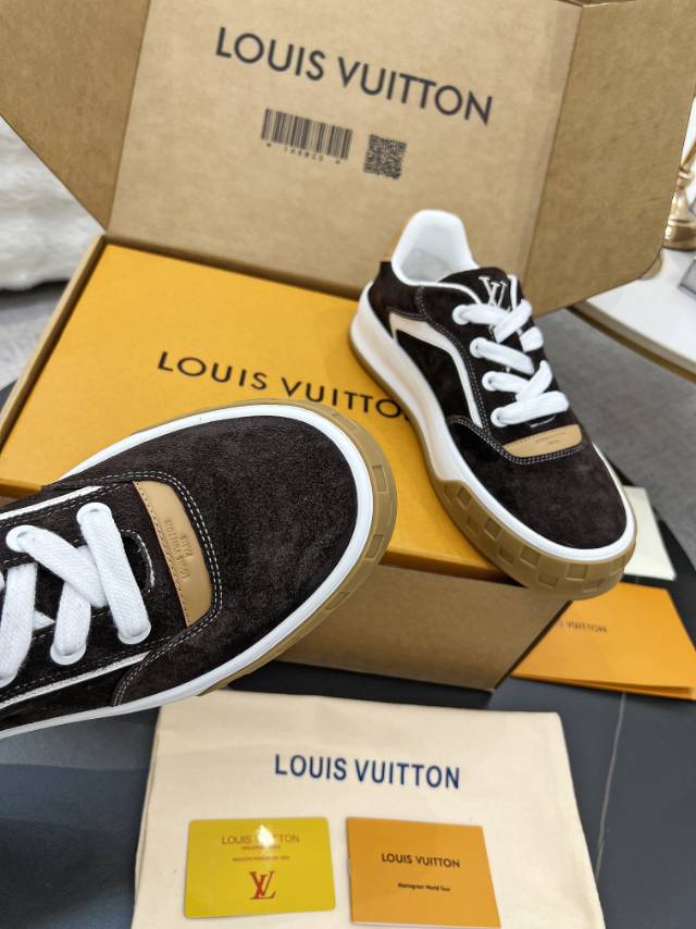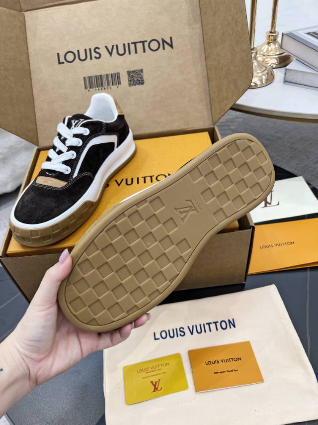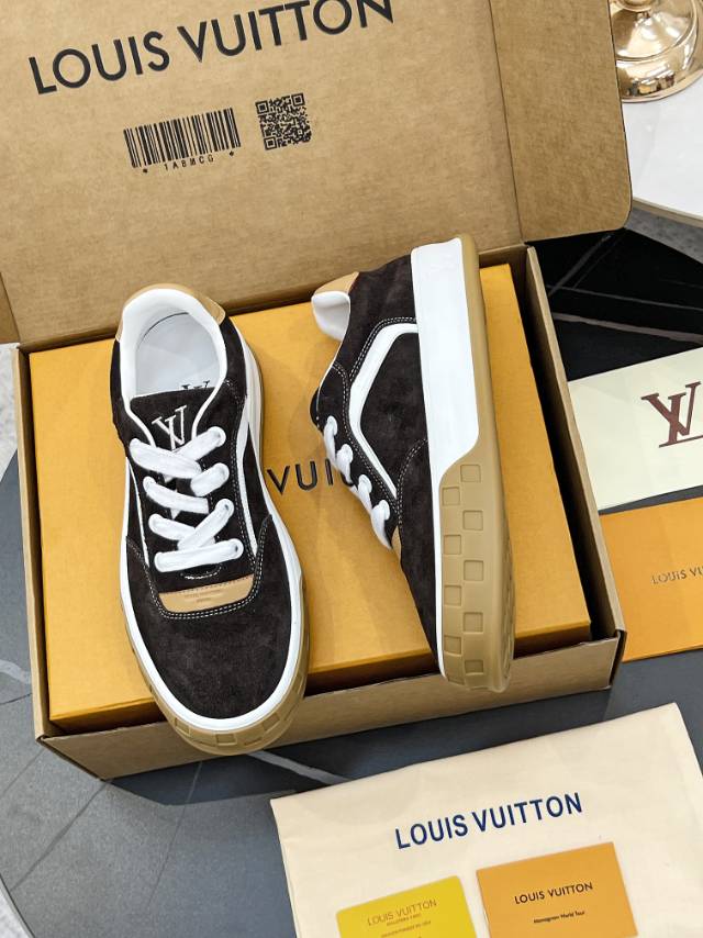 这款鞋子是AAAAA 1:1 质量 (非常棒). 使用了和原版一模一样的材料. 商标部分也保持了和路易威登/Louis Vuitton一样. 图片拍摄是实物鞋子拍摄, 您所收到的实物保证和我们图片一模一样.