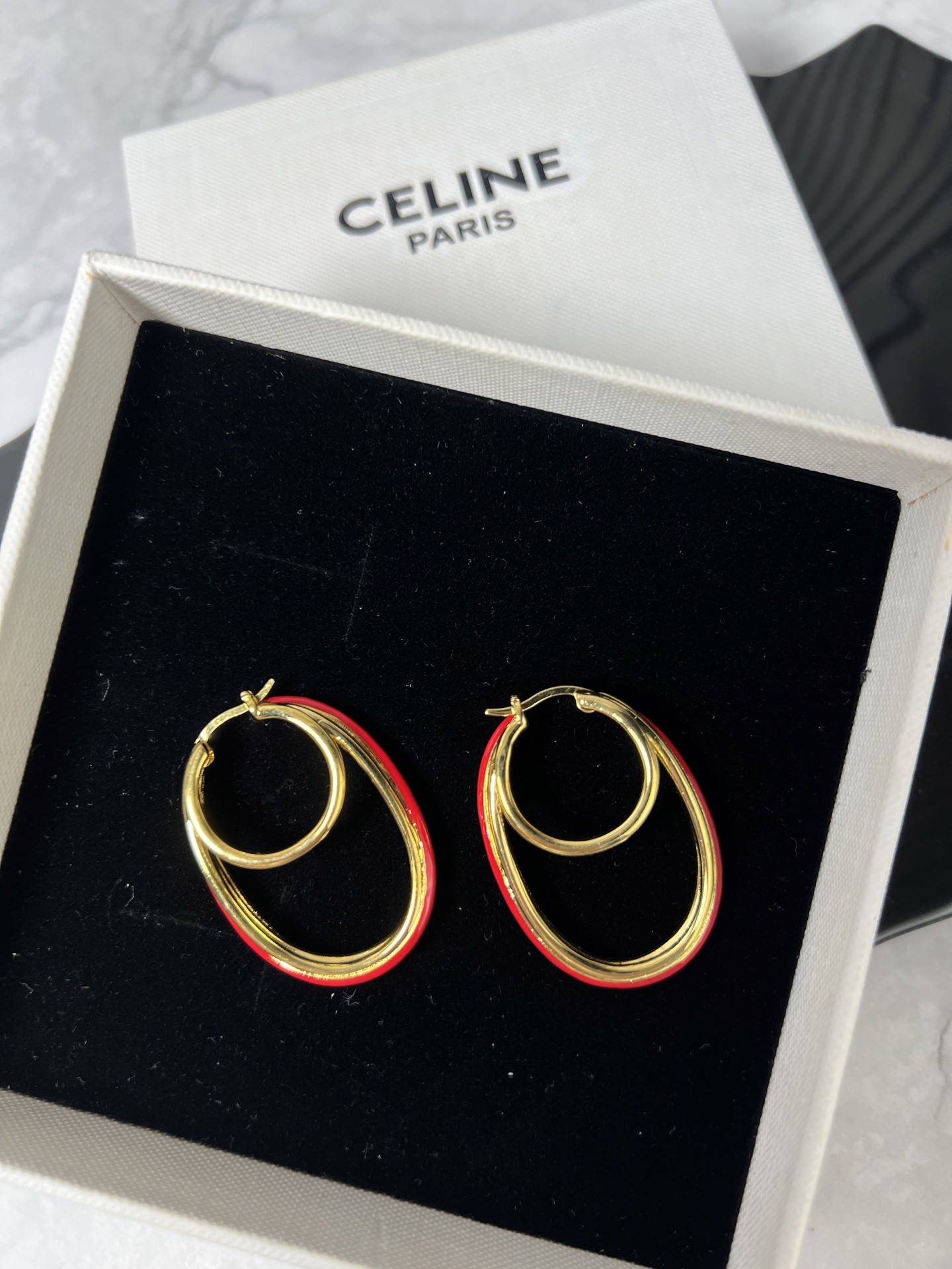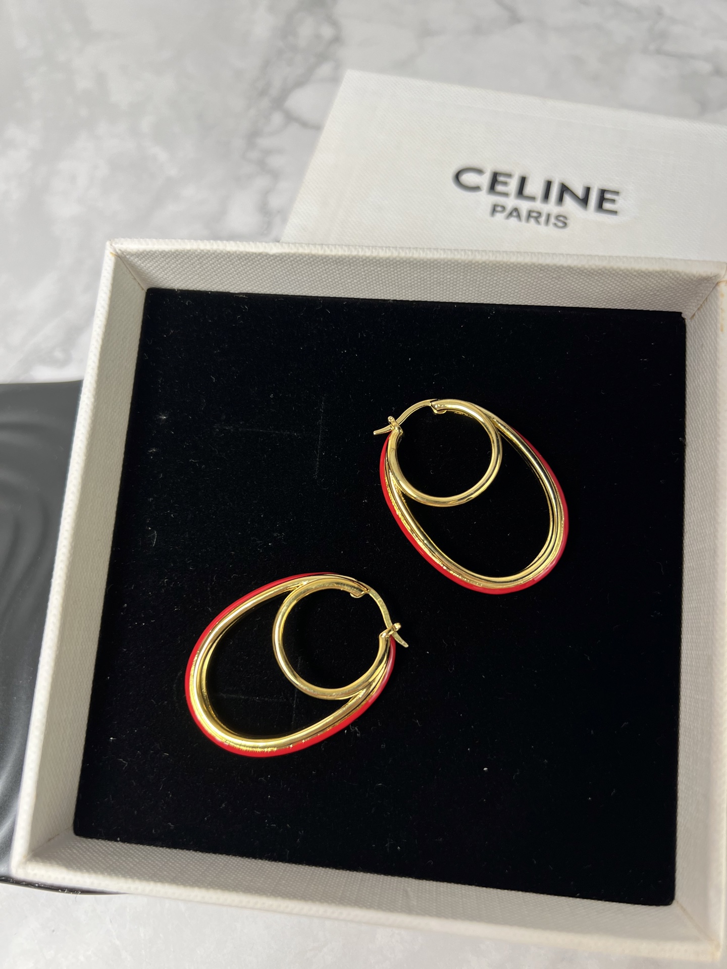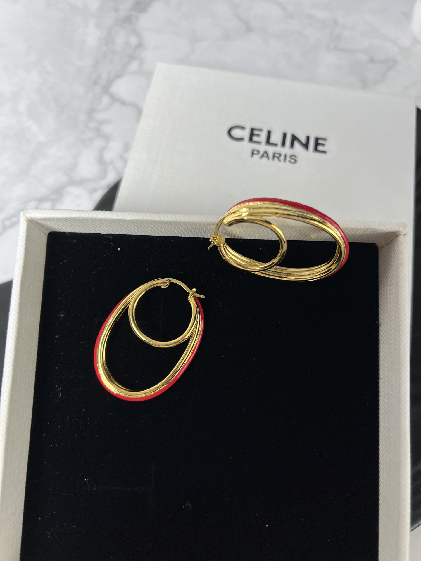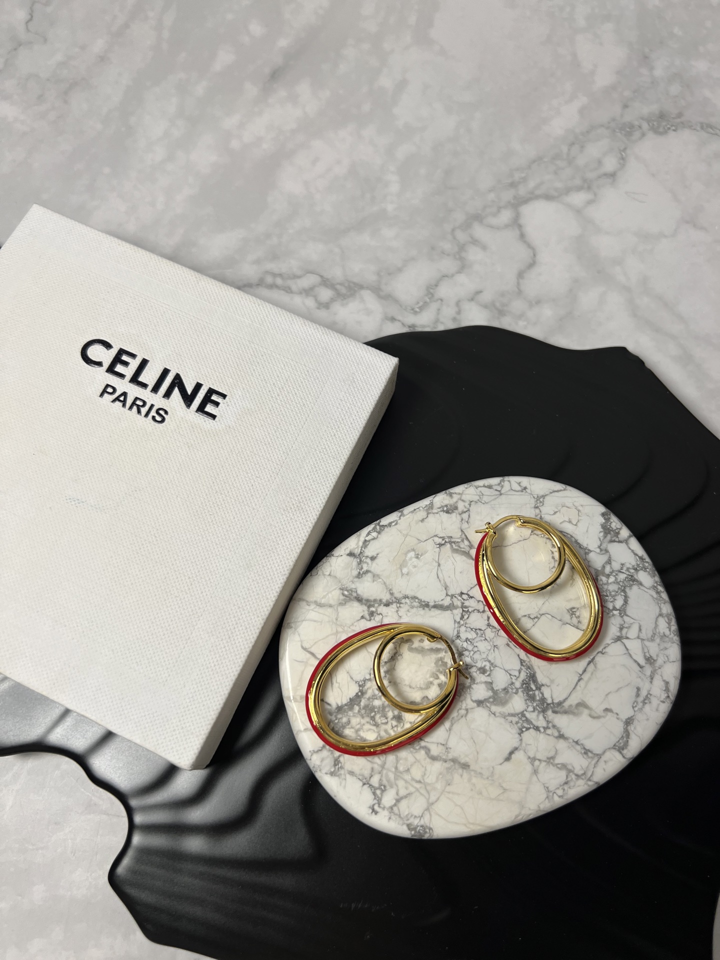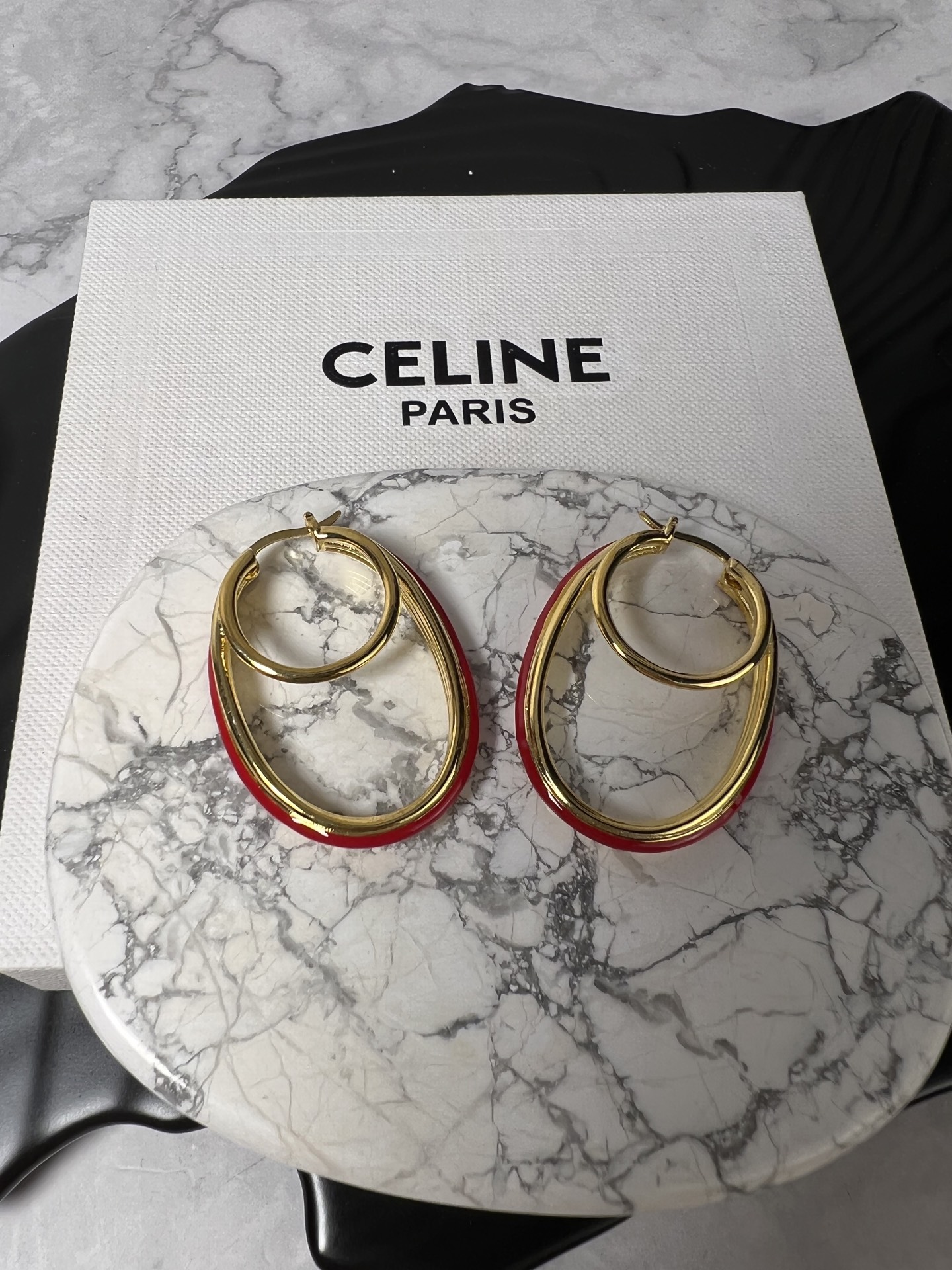 这款首饰是AAAAA 1:1 质量 (非常棒). 使用了和原版一模一样的材料. 商标部分也保持了和思琳/Celine一样. 图片拍摄是实物首饰拍摄, 您所收到的实物保证和我们图片一模一样.