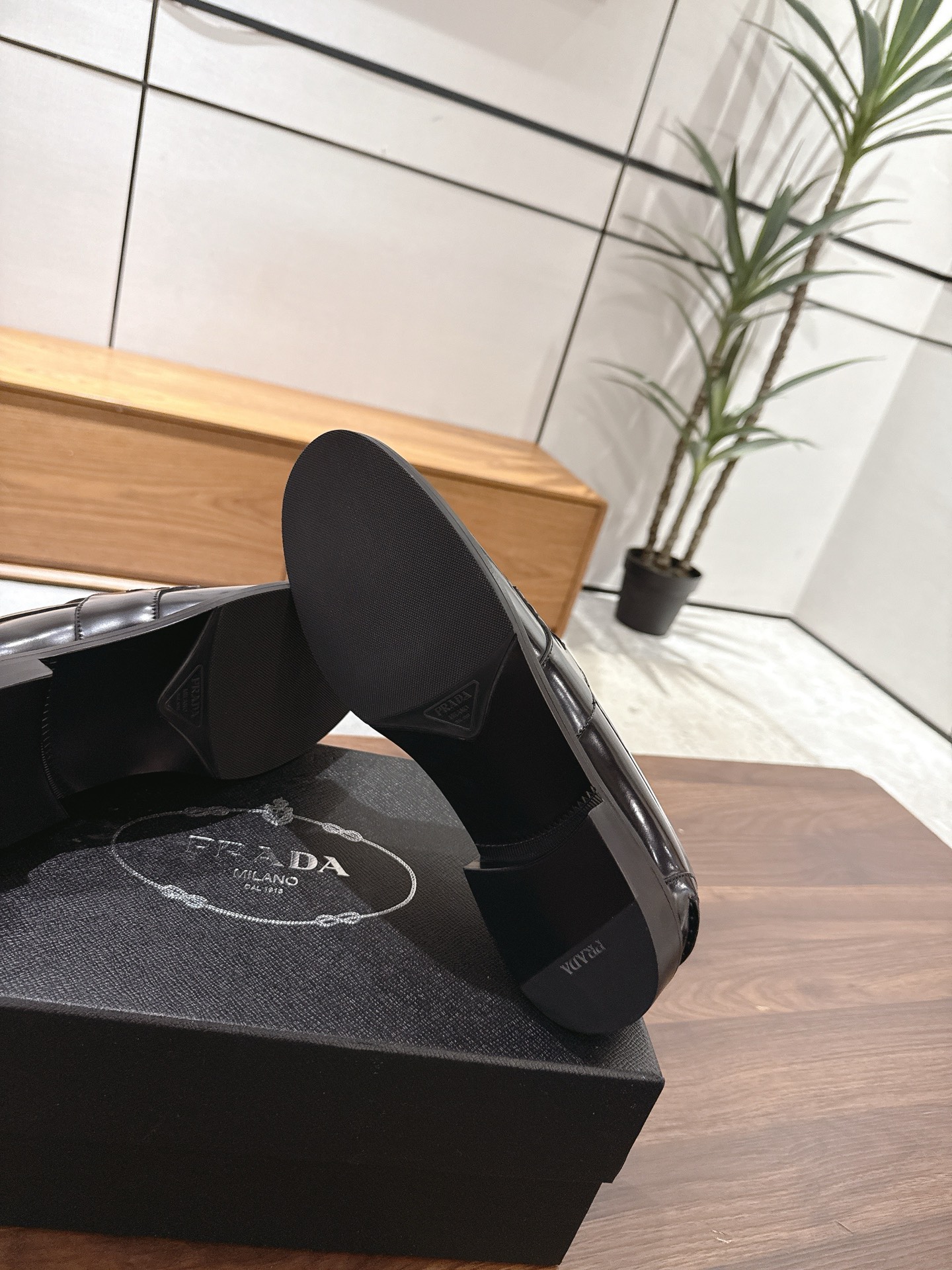 这款鞋子是AAAAA 1:1 质量 (非常棒). 使用了和原版一模一样的材料. 商标部分也保持了和普拉达/Prada一样. 图片拍摄是实物鞋子拍摄, 您所收到的实物保证和我们图片一模一样.
