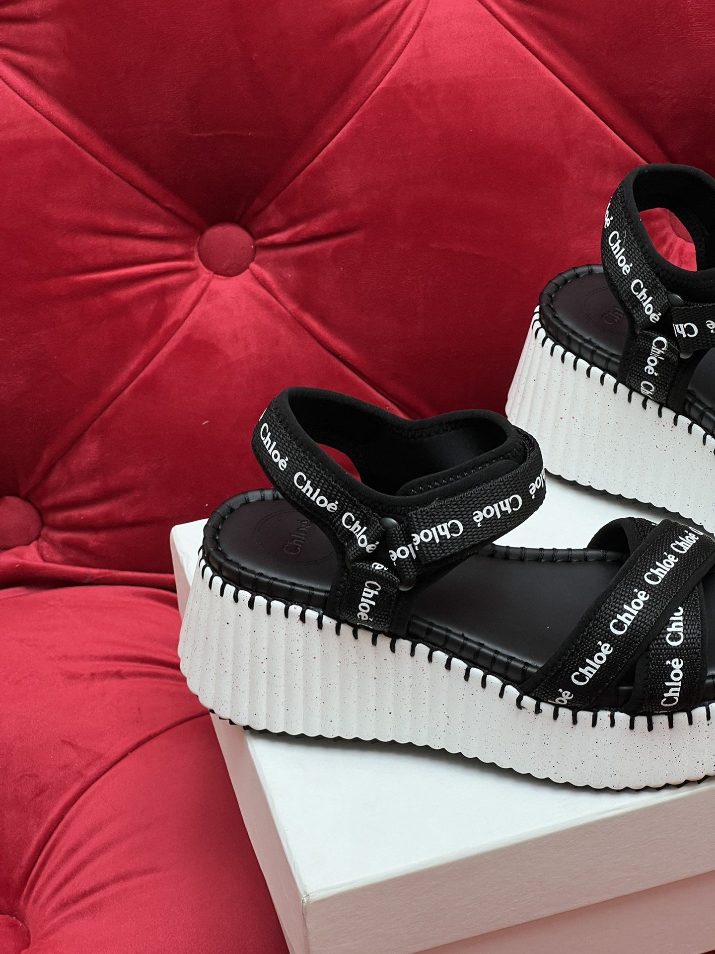 这款鞋子是AAAAA 1:1 质量 (非常棒). 使用了和原版一模一样的材料. 商标部分也保持了和克洛伊/Chloe一样. 图片拍摄是实物鞋子拍摄, 您所收到的实物保证和我们图片一模一样.