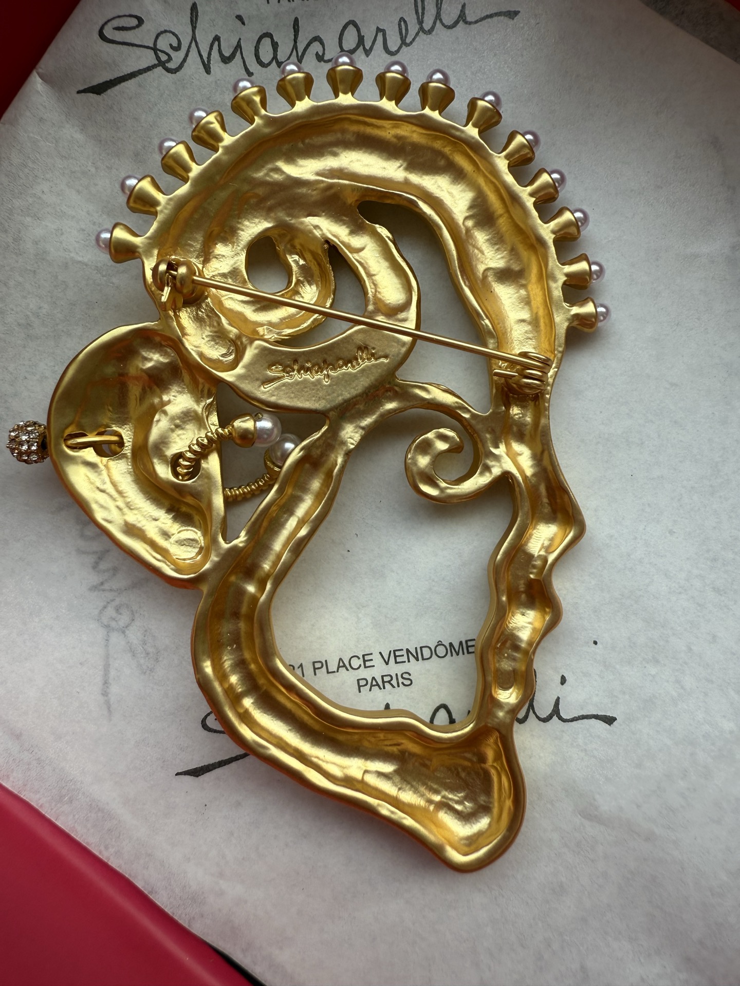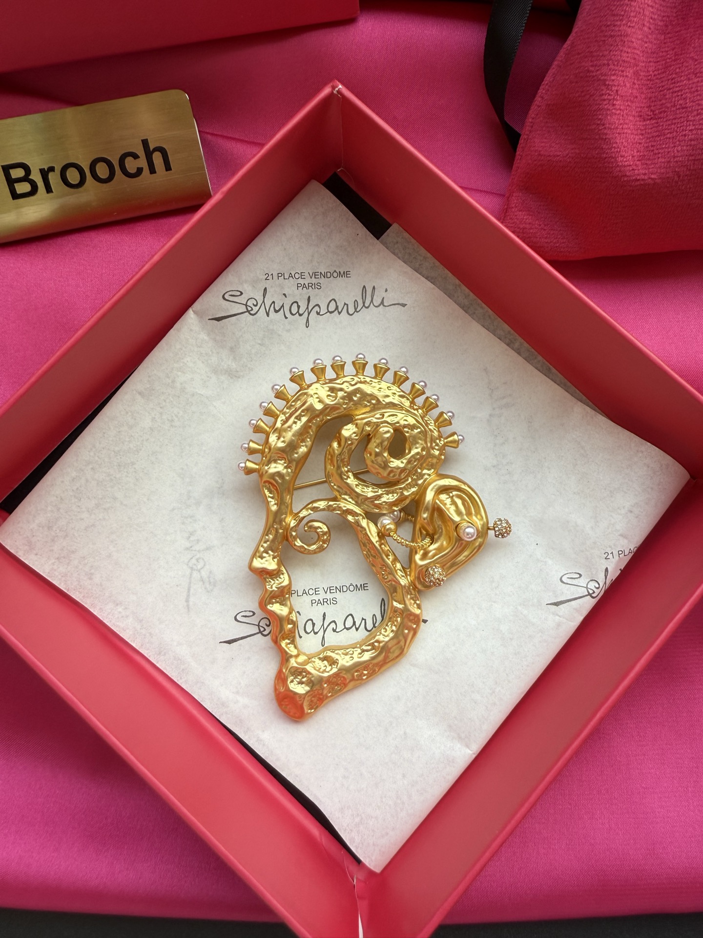 这款首饰是AAAAA 1:1 质量 (非常棒). 使用了和原版一模一样的材料. 商标部分也保持了和Schiaparelli一样. 图片拍摄是实物首饰拍摄, 您所收到的实物保证和我们图片一模一样.