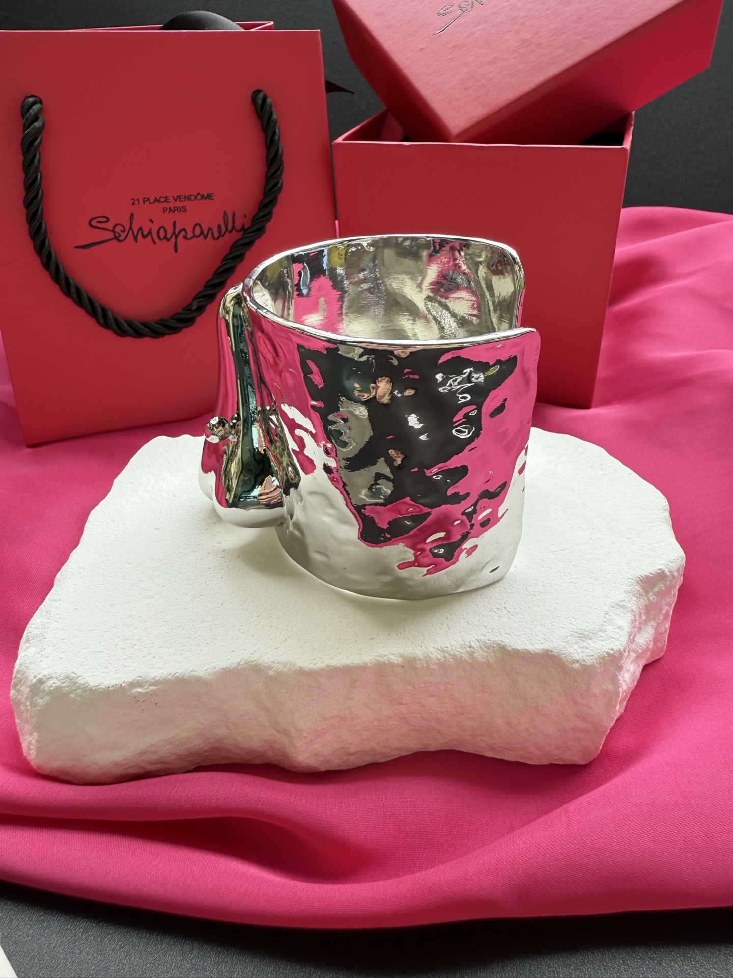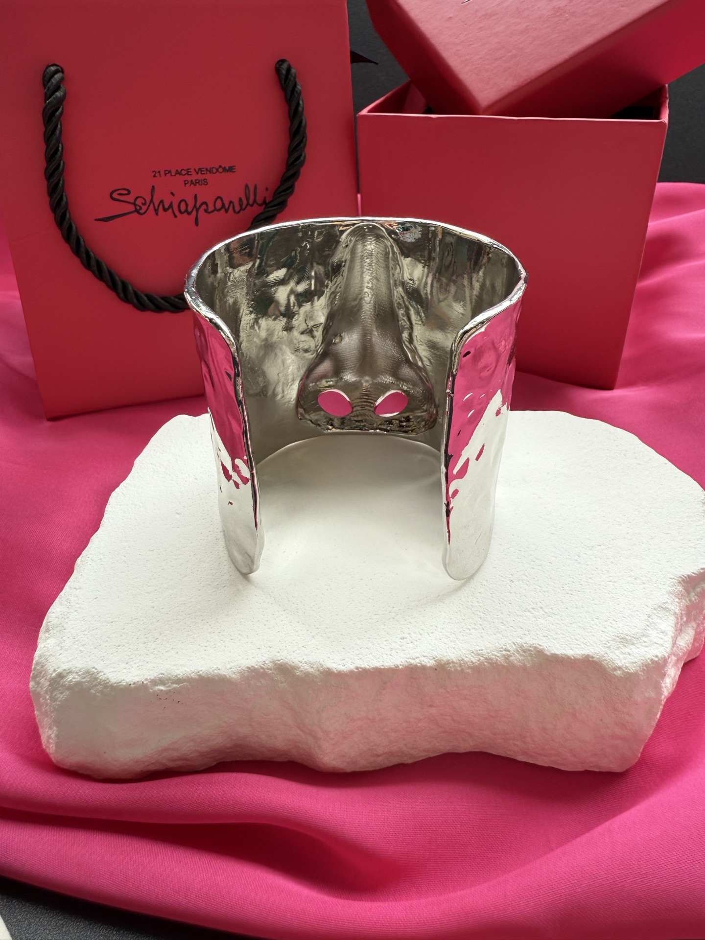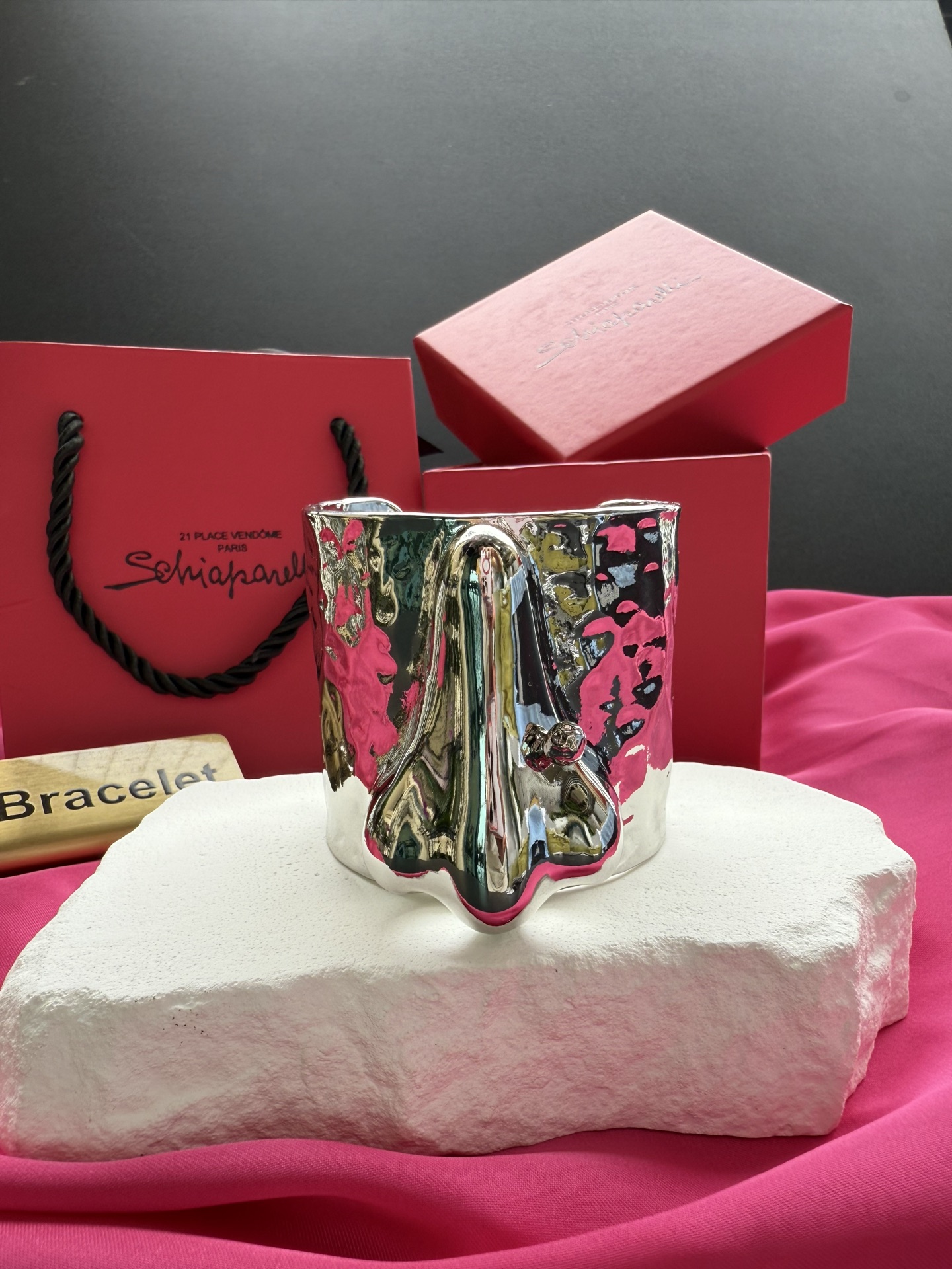 这款首饰是AAAAA 1:1 质量 (非常棒). 使用了和原版一模一样的材料. 商标部分也保持了和Schiaparelli一样. 图片拍摄是实物首饰拍摄, 您所收到的实物保证和我们图片一模一样.