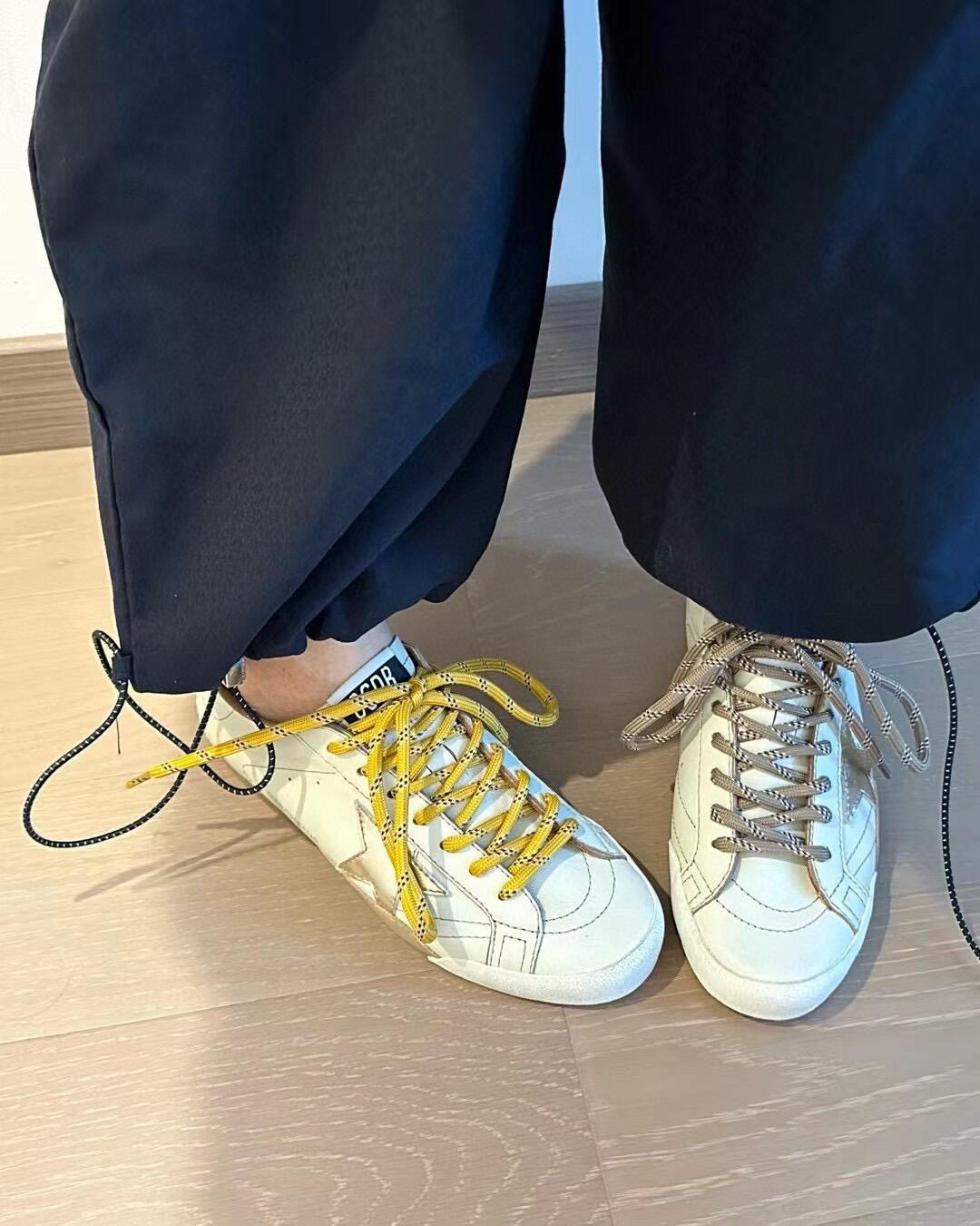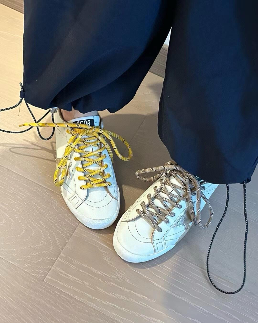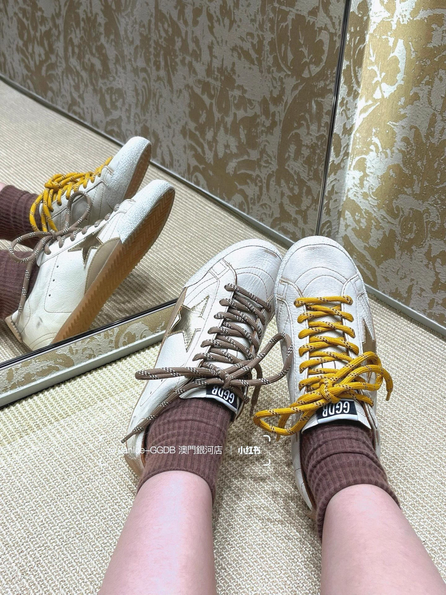 这款鞋子是AAAAA 1:1 质量 (非常棒). 使用了和原版一模一样的材料. 商标部分也保持了和Golden Goose一样. 图片拍摄是实物鞋子拍摄, 您所收到的实物保证和我们图片一模一样.