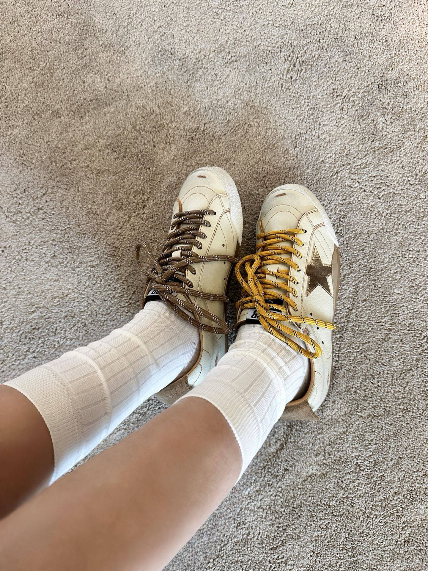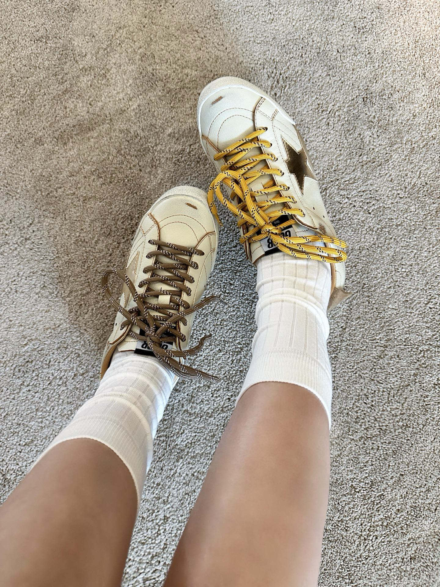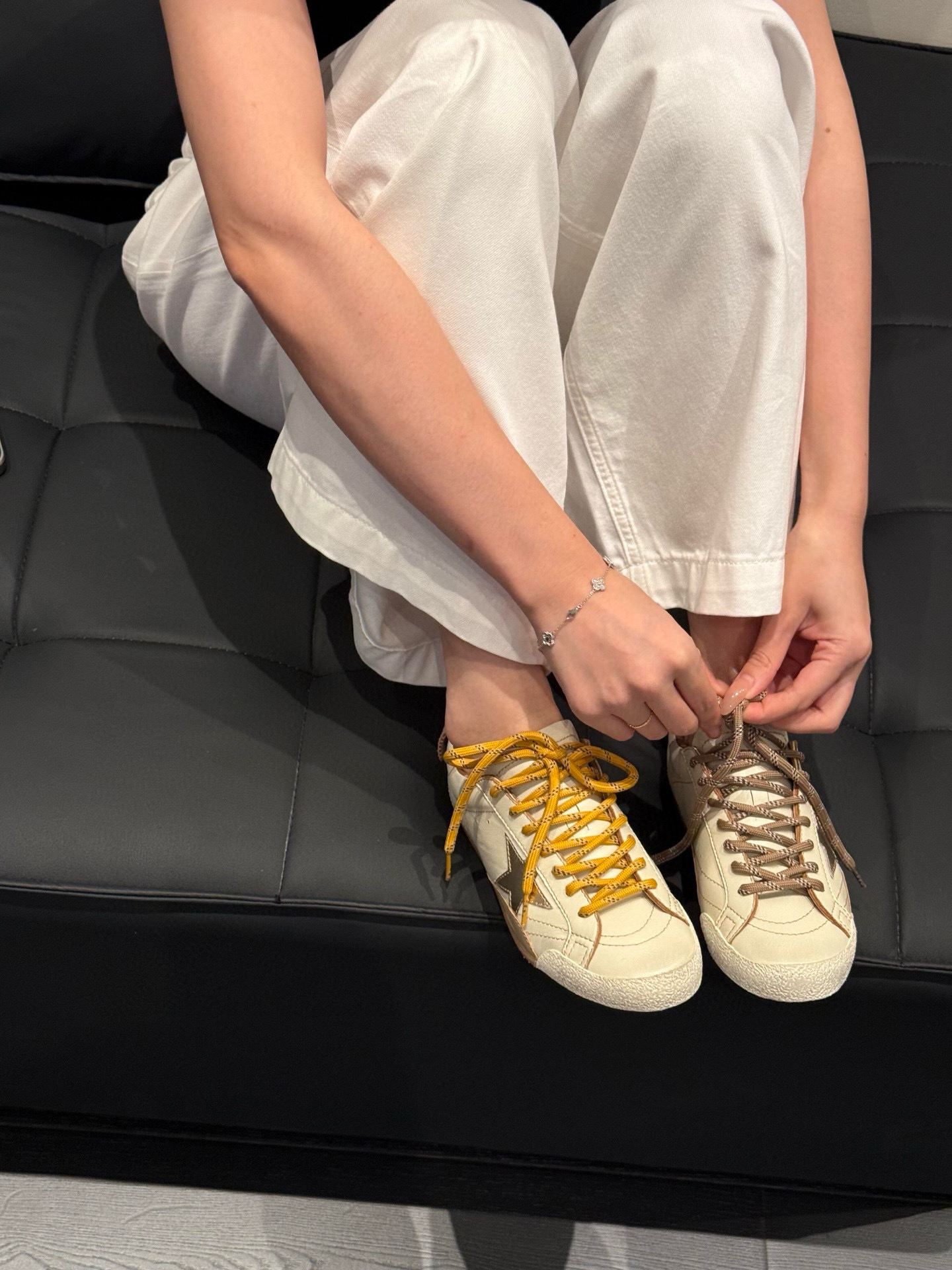 这款鞋子是AAAAA 1:1 质量 (非常棒). 使用了和原版一模一样的材料. 商标部分也保持了和Golden Goose一样. 图片拍摄是实物鞋子拍摄, 您所收到的实物保证和我们图片一模一样.