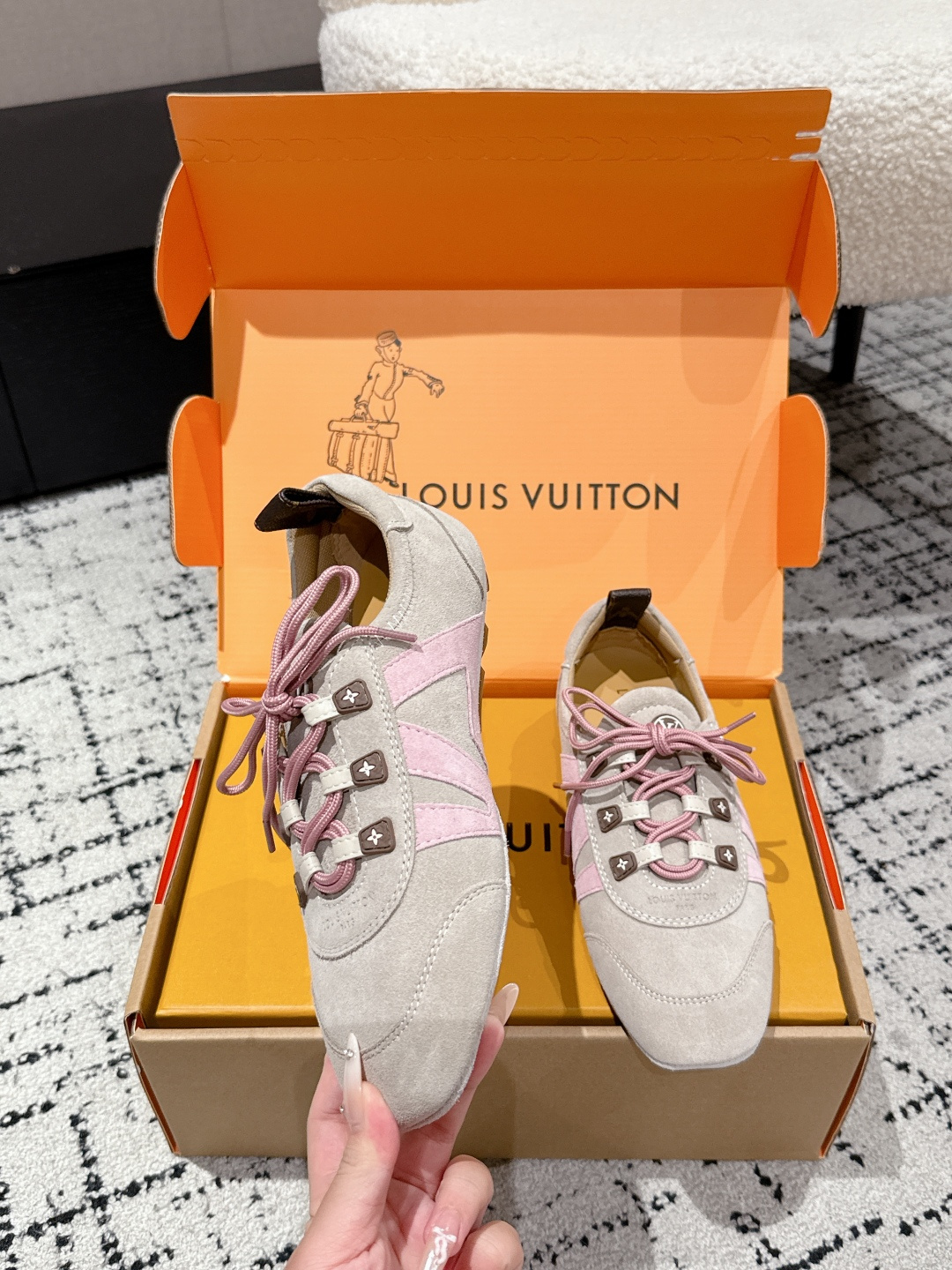 这款鞋子是AAAAA 1:1 质量 (非常棒). 使用了和原版一模一样的材料. 商标部分也保持了和一样. 图片拍摄是实物鞋子拍摄, 您所收到的实物保证和我们图片一模一样.