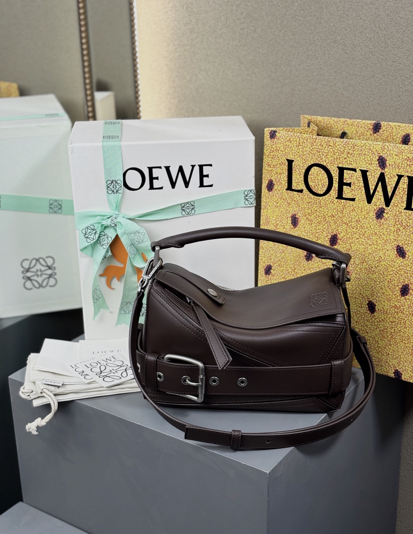 这款包包是AAAAA 1:1 质量 (非常棒). 使用了和原版一模一样的材料. 商标部分也保持了和罗意威/Loewe一样. 图片拍摄是实物包包拍摄, 您所收到的实物保证和我们图片一模一样.