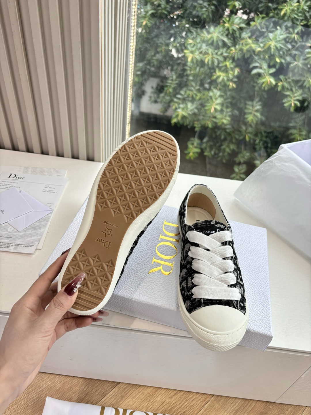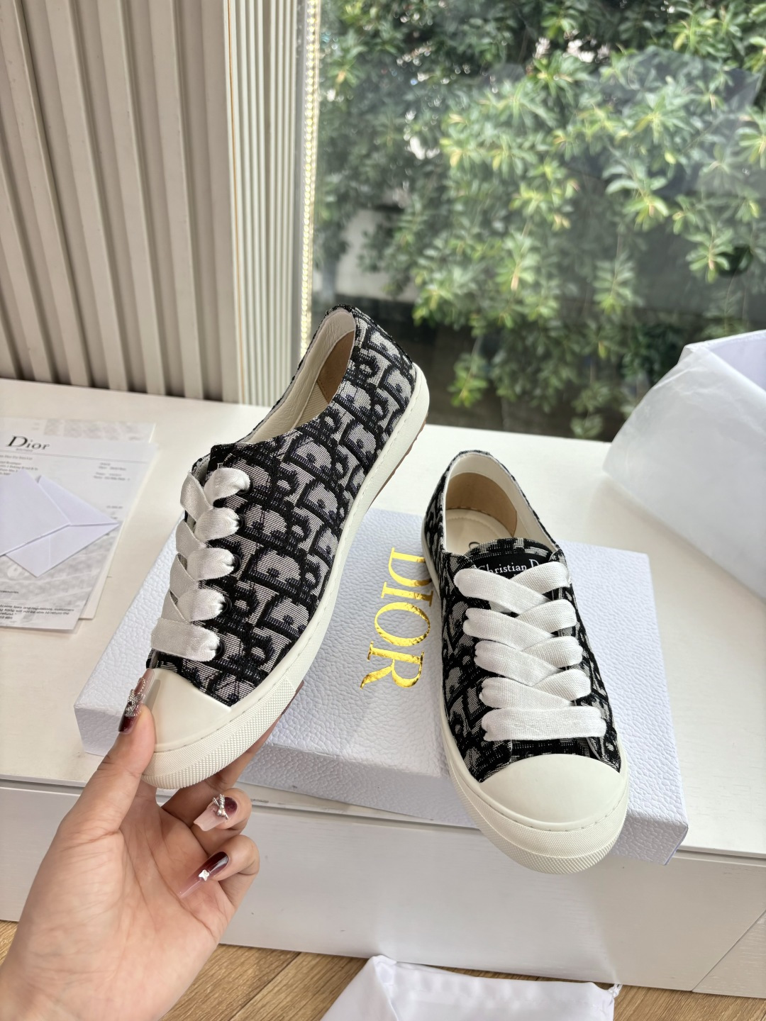 这款鞋子是AAAAA 1:1 质量 (非常棒). 使用了和原版一模一样的材料. 商标部分也保持了和迪奥/Dior一样. 图片拍摄是实物鞋子拍摄, 您所收到的实物保证和我们图片一模一样.