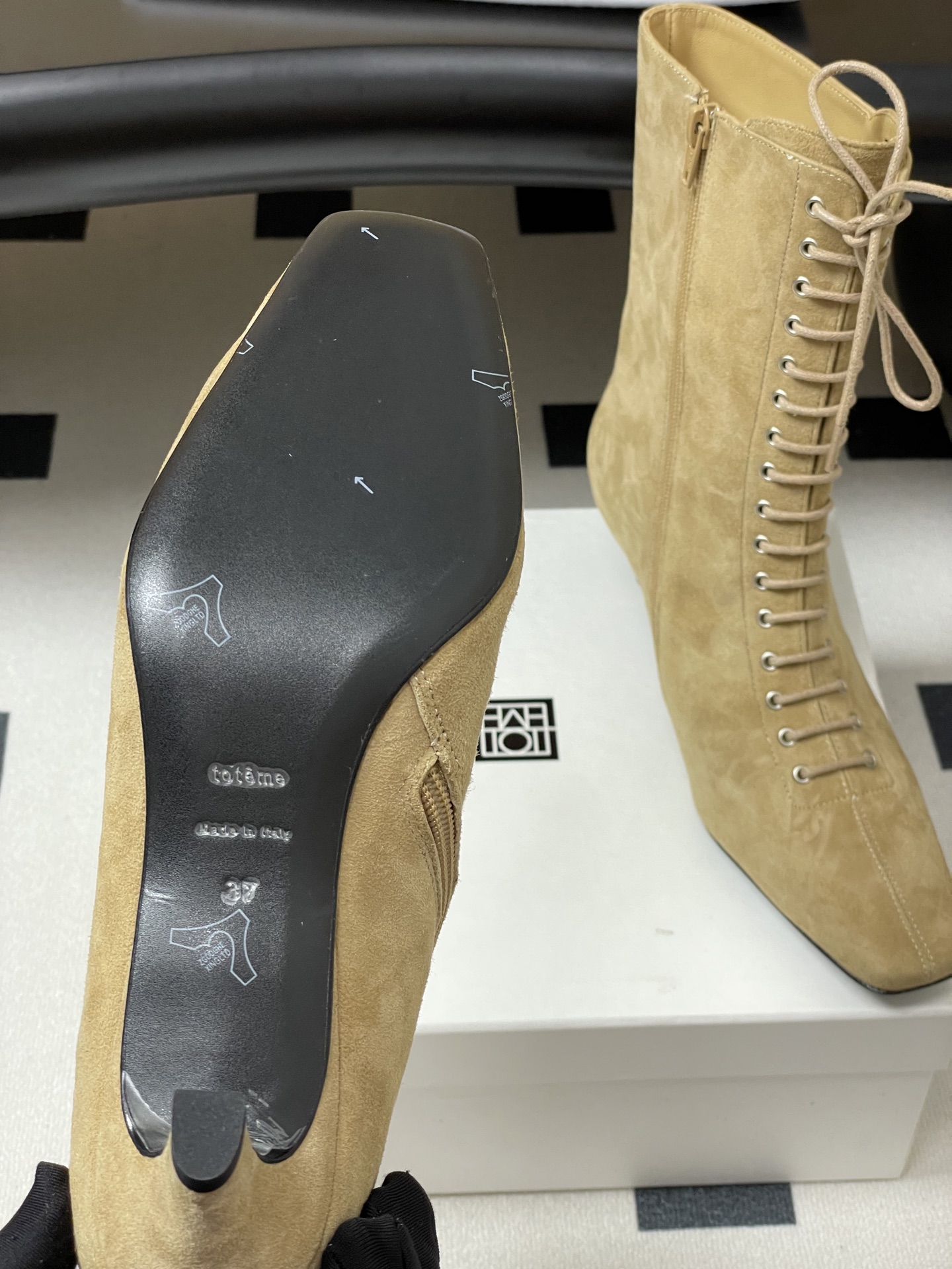 这款鞋子是AAAAA 1:1 质量 (非常棒). 使用了和原版一模一样的材料. 商标部分也保持了和Toteme一样. 图片拍摄是实物鞋子拍摄, 您所收到的实物保证和我们图片一模一样.