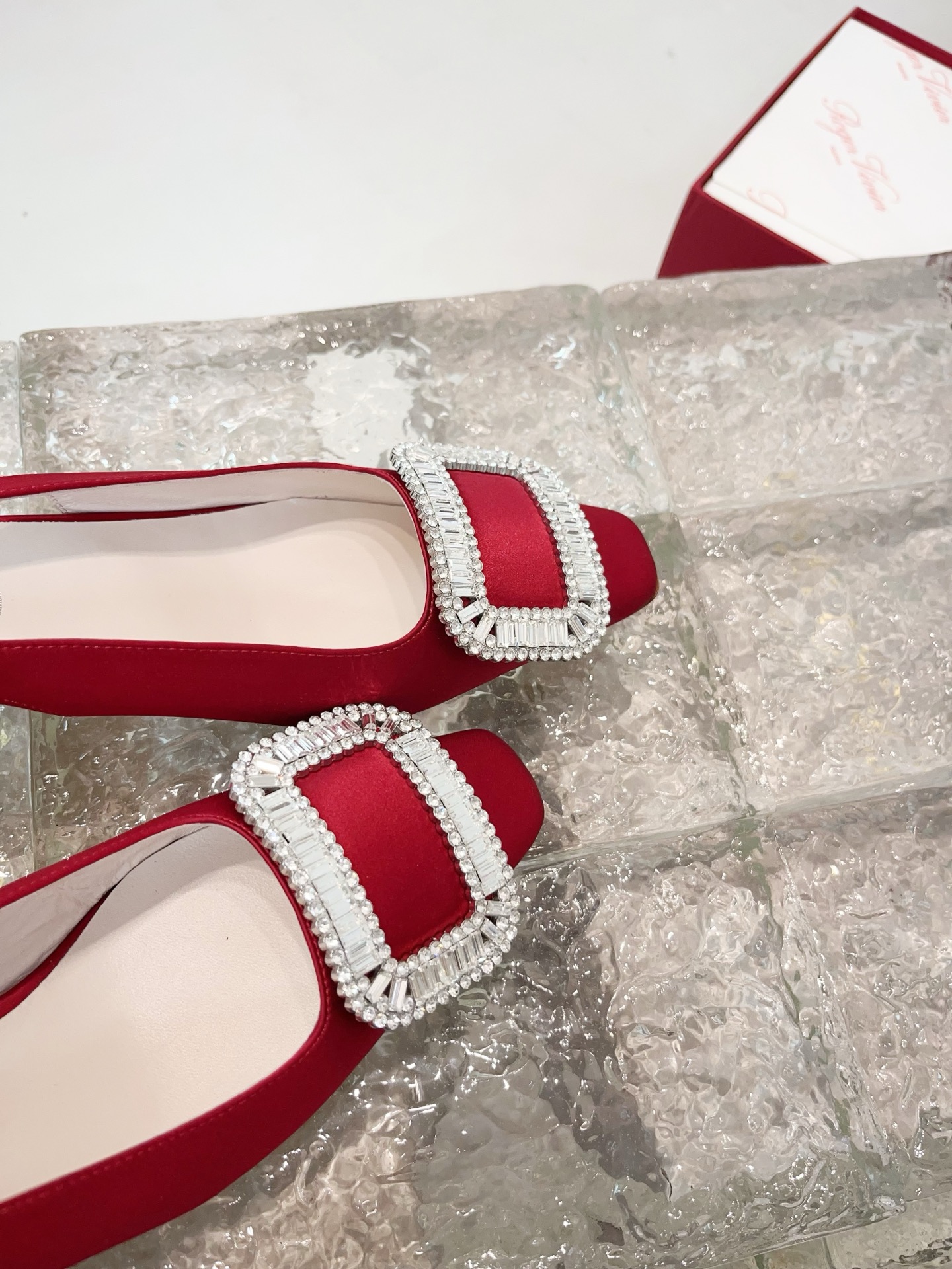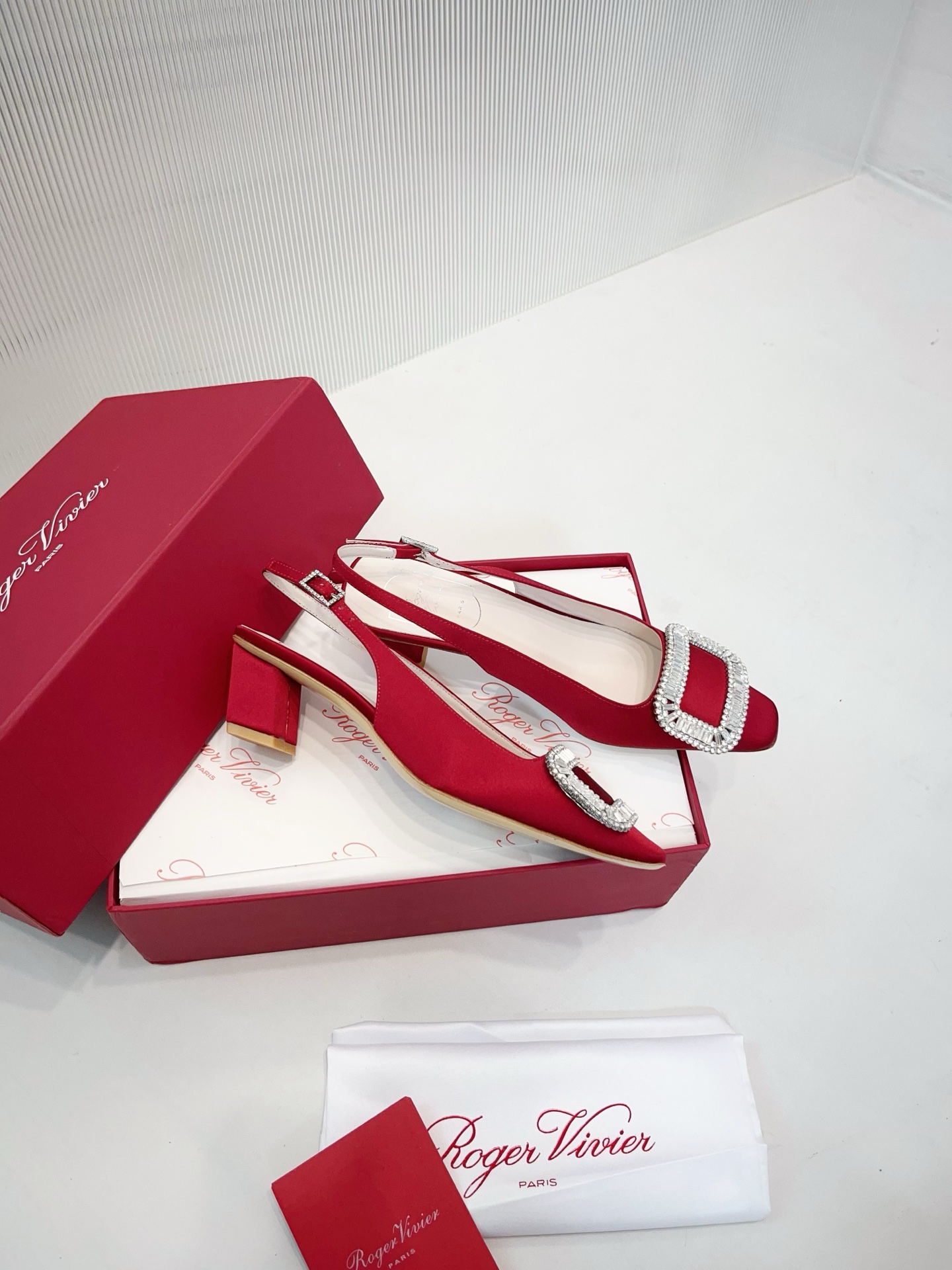 这款鞋子是AAAAA 1:1 质量 (非常棒). 使用了和原版一模一样的材料. 商标部分也保持了和罗杰维维耶/Roger Vivier一样. 图片拍摄是实物鞋子拍摄, 您所收到的实物保证和我们图片一模一样.