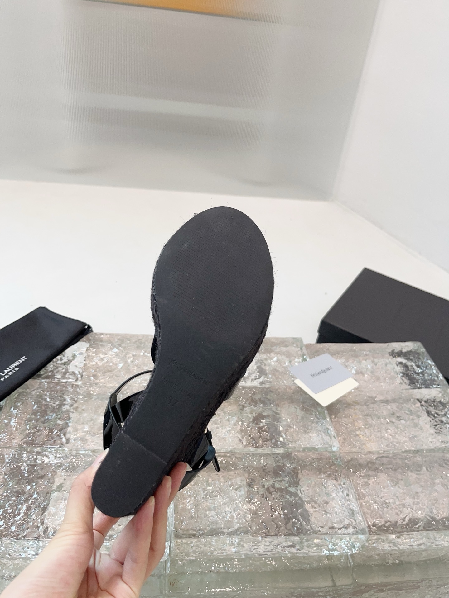 这款鞋子是AAAAA 1:1 质量 (非常棒). 使用了和原版一模一样的材料. 商标部分也保持了和圣罗兰/Saint Laurent一样. 图片拍摄是实物鞋子拍摄, 您所收到的实物保证和我们图片一模一样.