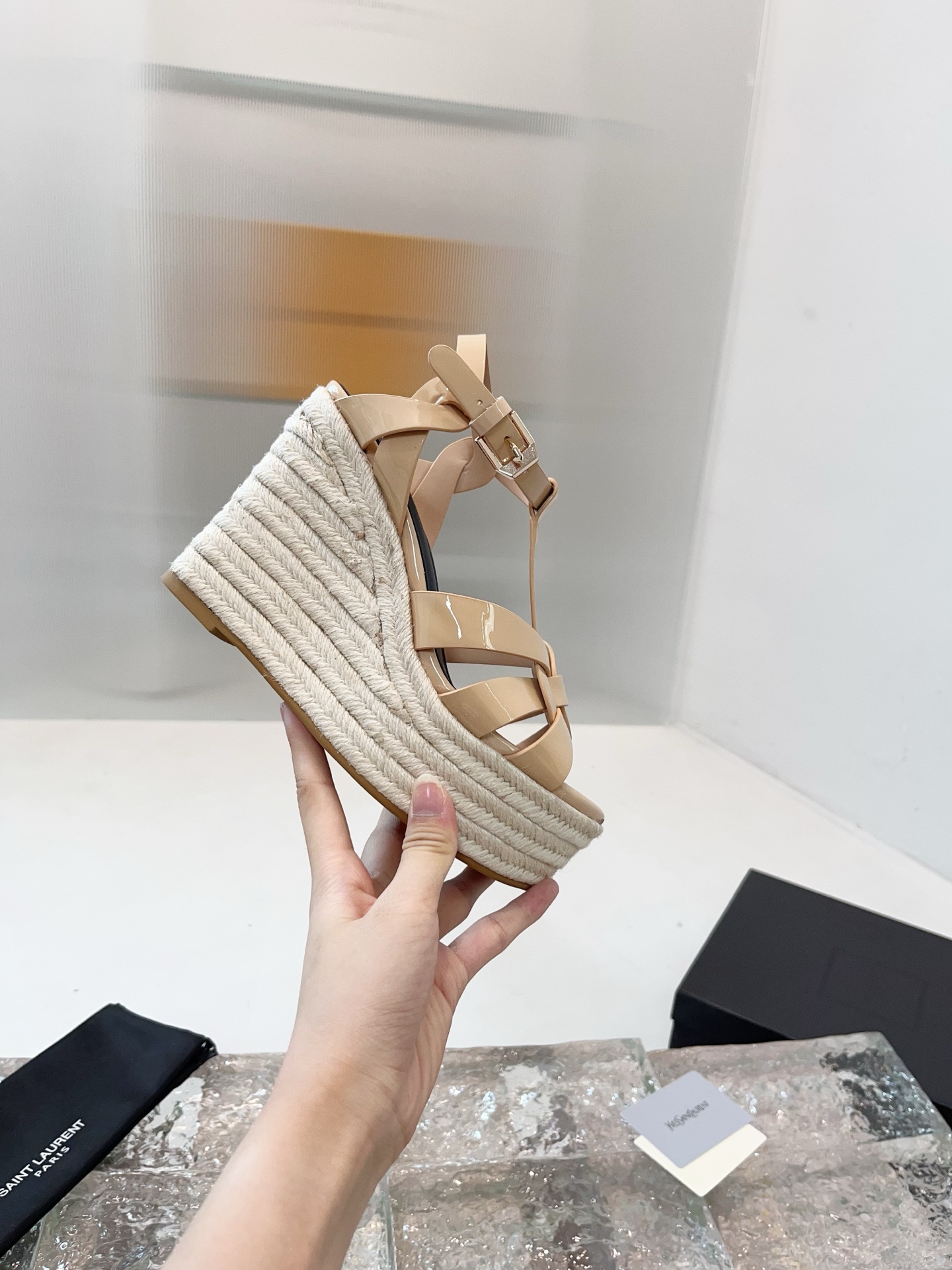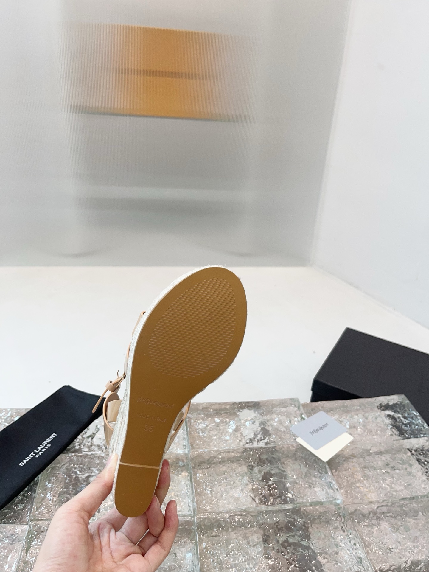 这款鞋子是AAAAA 1:1 质量 (非常棒). 使用了和原版一模一样的材料. 商标部分也保持了和圣罗兰/Saint Laurent一样. 图片拍摄是实物鞋子拍摄, 您所收到的实物保证和我们图片一模一样.