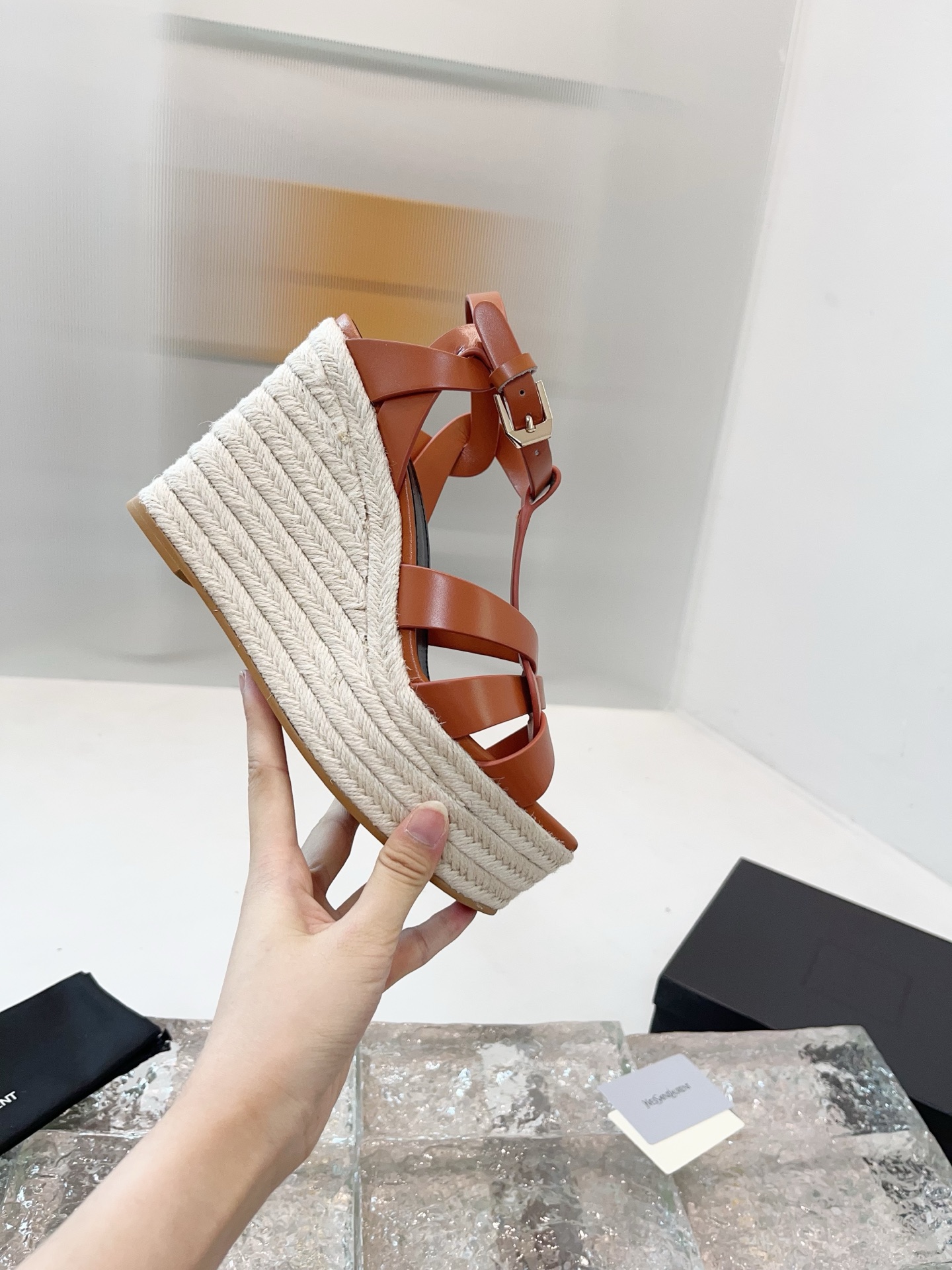 这款鞋子是AAAAA 1:1 质量 (非常棒). 使用了和原版一模一样的材料. 商标部分也保持了和圣罗兰/Saint Laurent一样. 图片拍摄是实物鞋子拍摄, 您所收到的实物保证和我们图片一模一样.