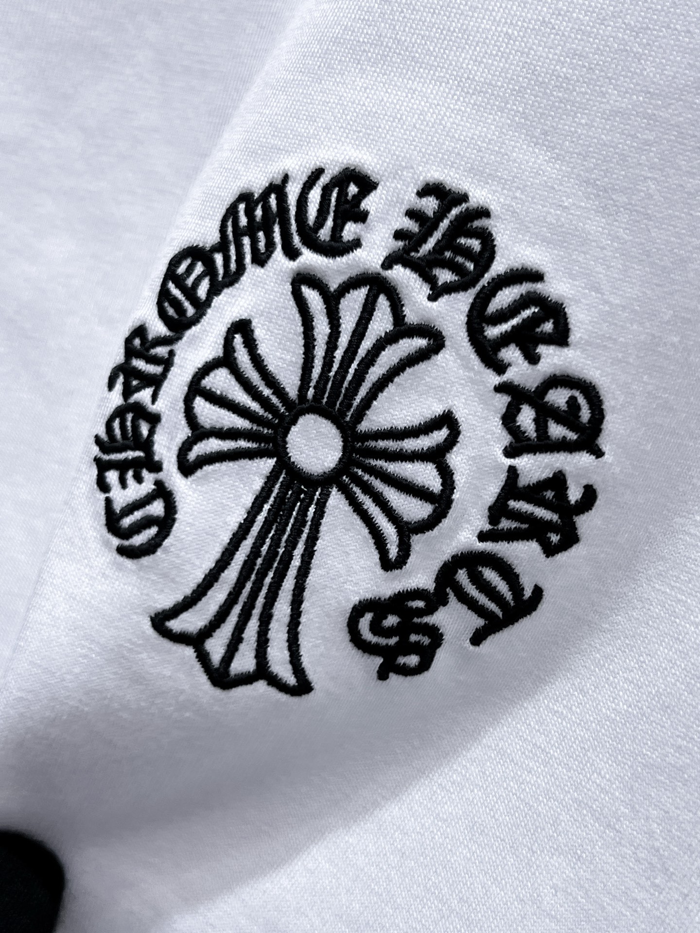 这款衣服是AAAAA 1:1 质量 (非常棒). 使用了和原版一模一样的材料. 商标部分也保持了和克罗心/Chrome Hearts一样. 图片拍摄是实物衣服拍摄, 您所收到的实物保证和我们图片一模一样.