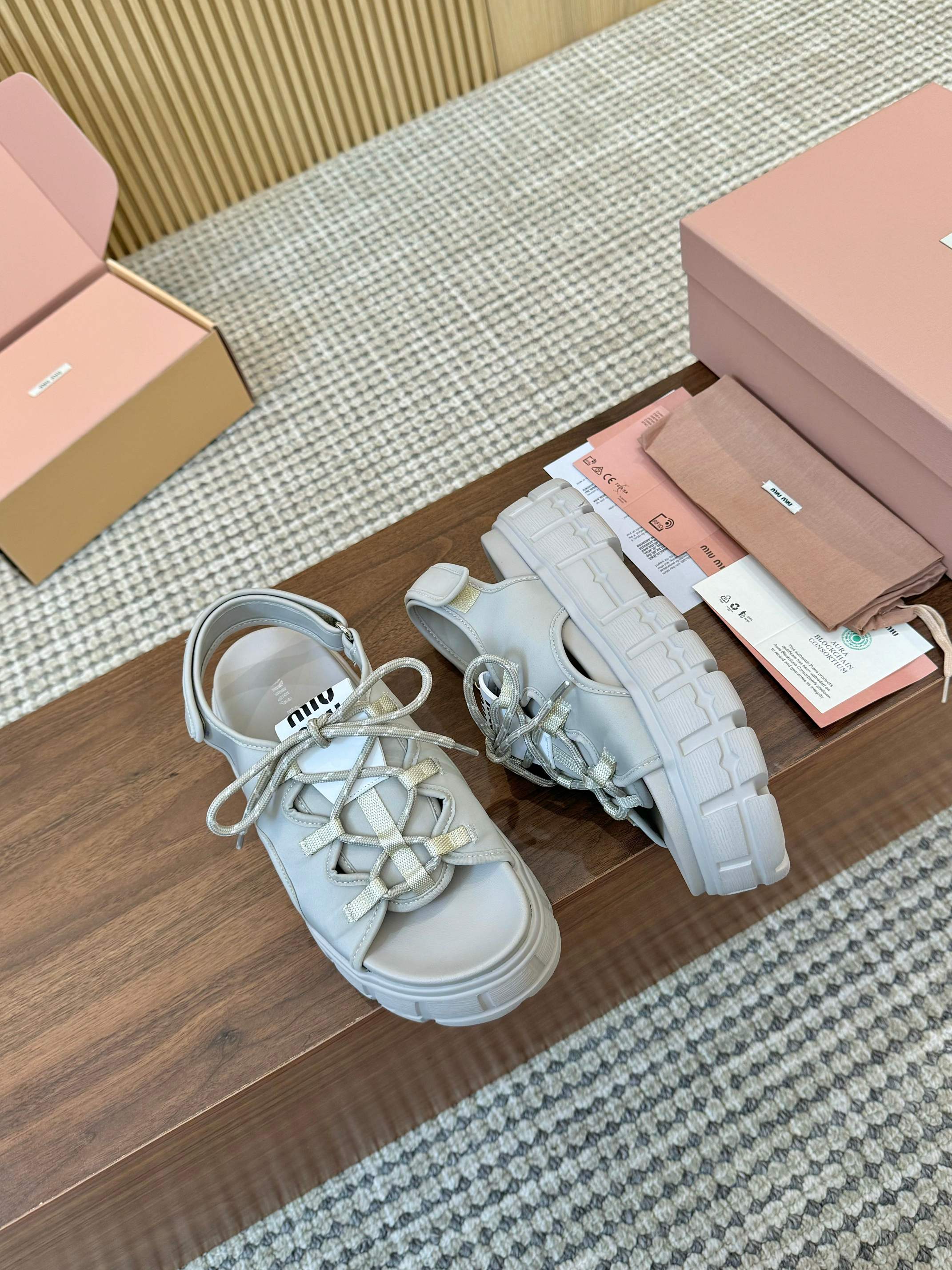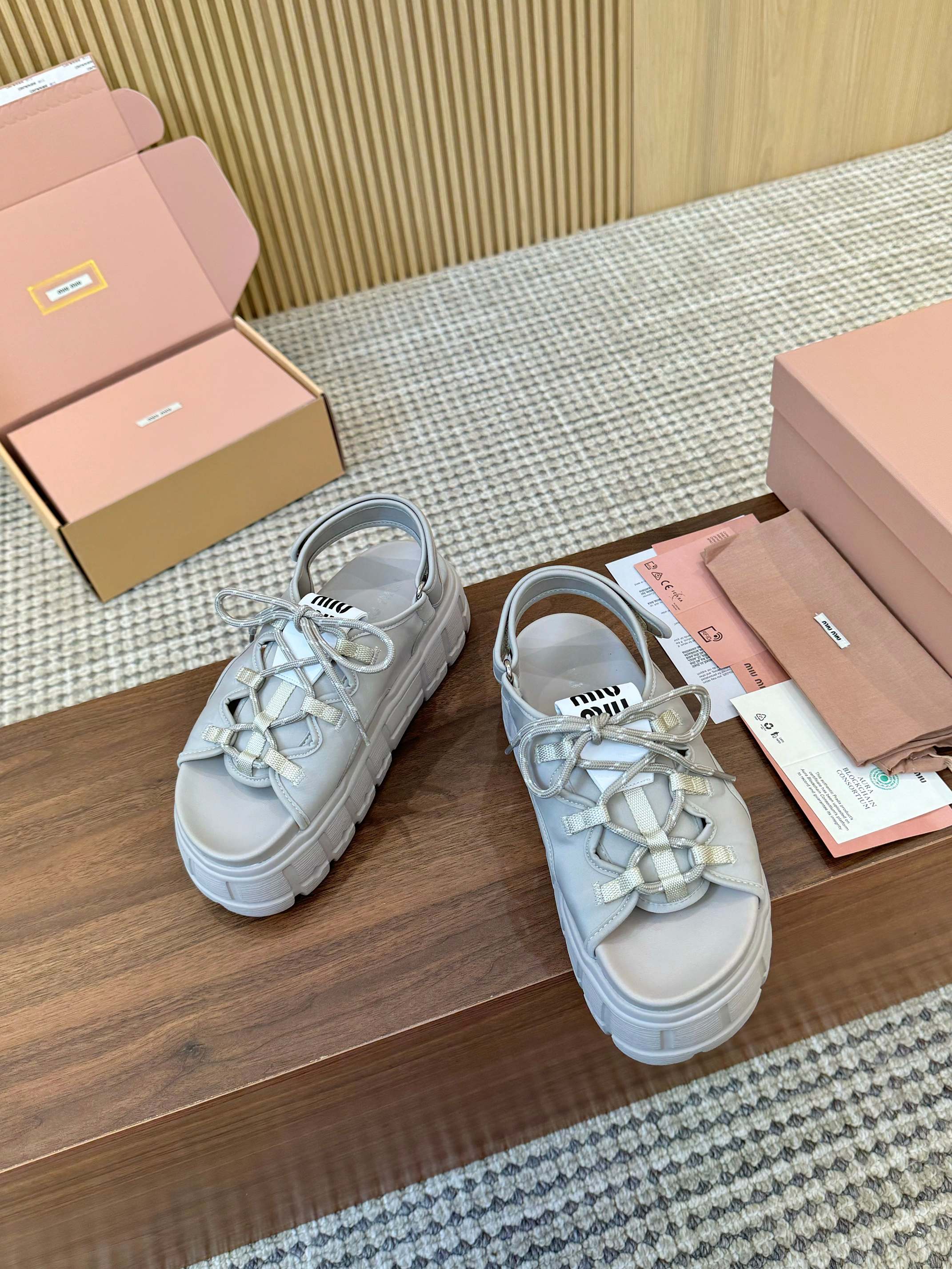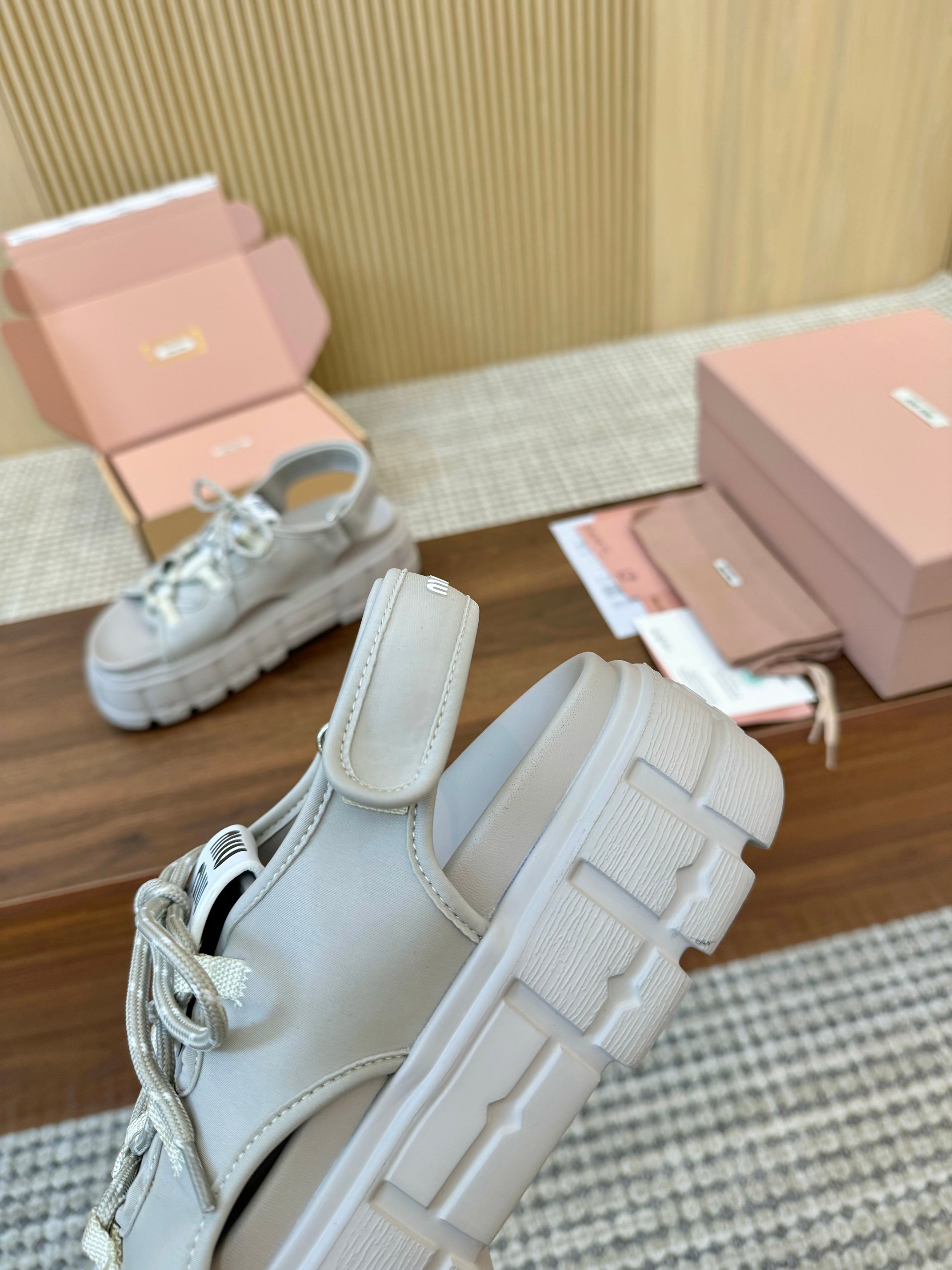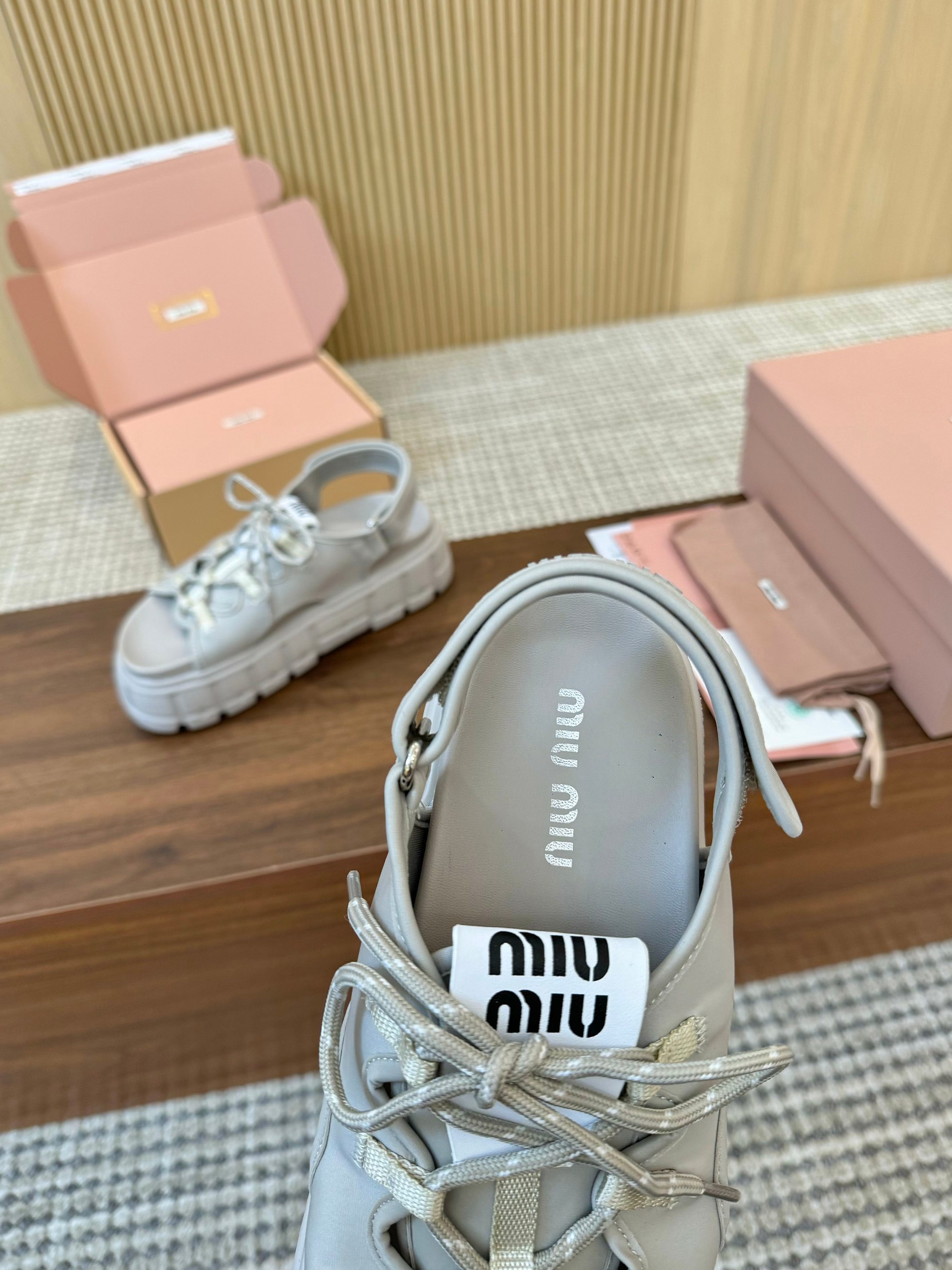 这款鞋子是AAAAA 1:1 质量 (非常棒). 使用了和原版一模一样的材料. 商标部分也保持了和缪缪/Miu Miu一样. 图片拍摄是实物鞋子拍摄, 您所收到的实物保证和我们图片一模一样.