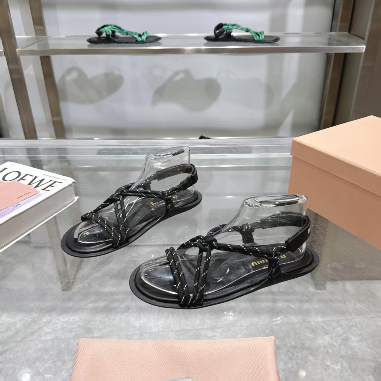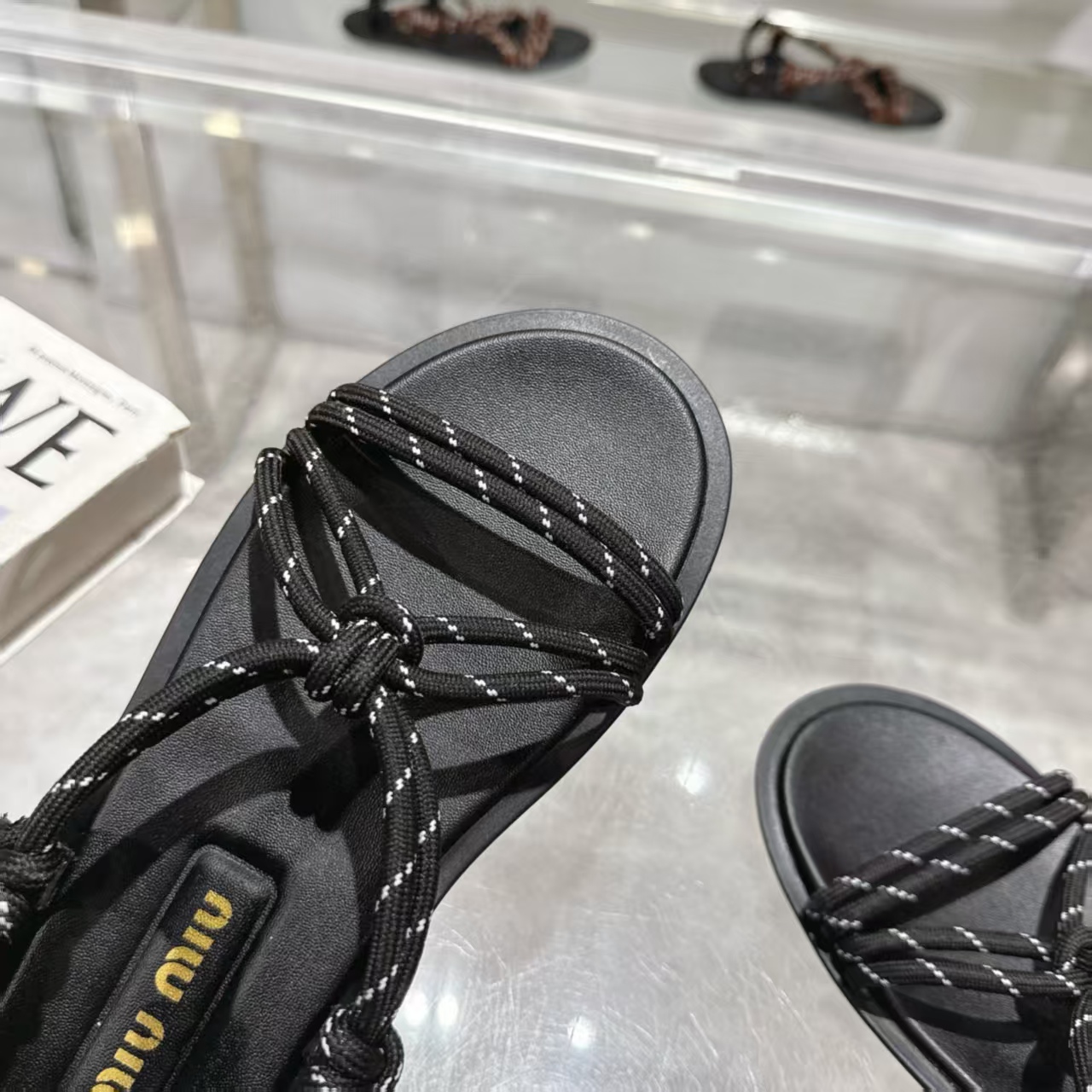 这款鞋子是AAAAA 1:1 质量 (非常棒). 使用了和原版一模一样的材料. 商标部分也保持了和缪缪/Miu Miu一样. 图片拍摄是实物鞋子拍摄, 您所收到的实物保证和我们图片一模一样.