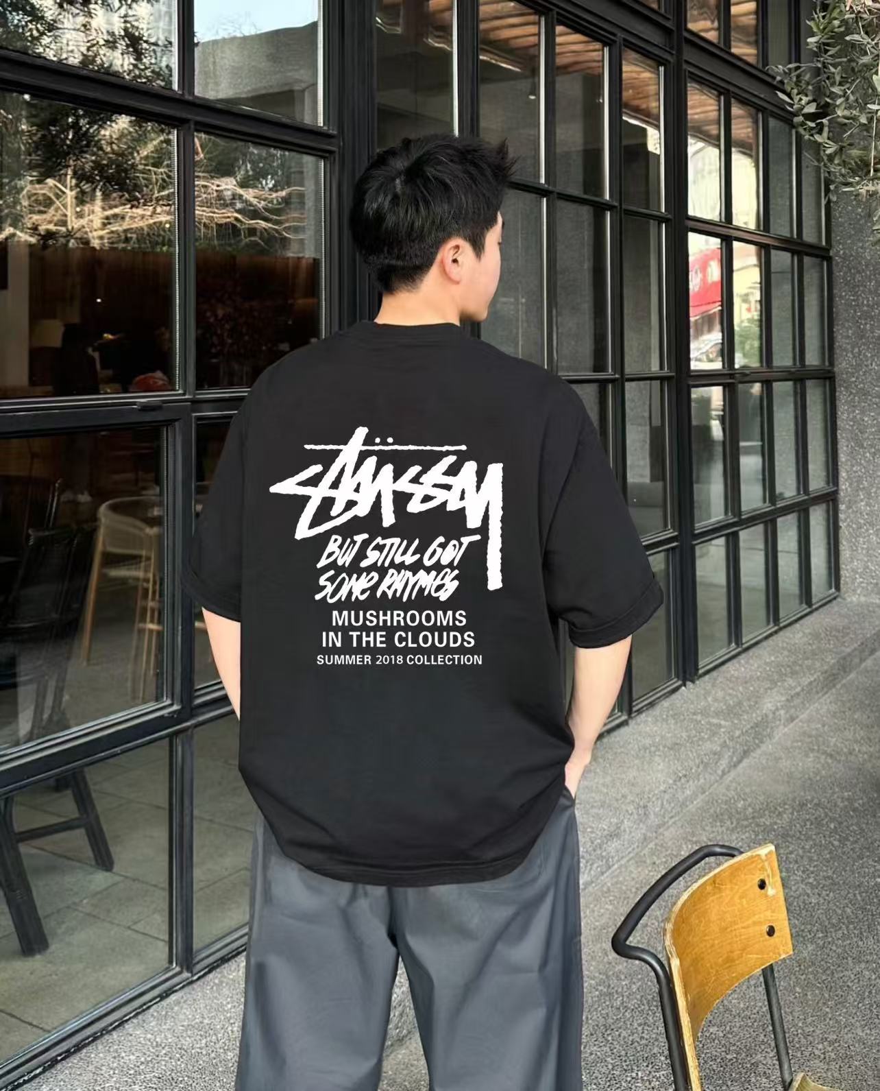这款衣服是AAAAA 1:1 质量 (非常棒). 使用了和原版一模一样的材料. 商标部分也保持了和Stussy一样. 图片拍摄是实物衣服拍摄, 您所收到的实物保证和我们图片一模一样.