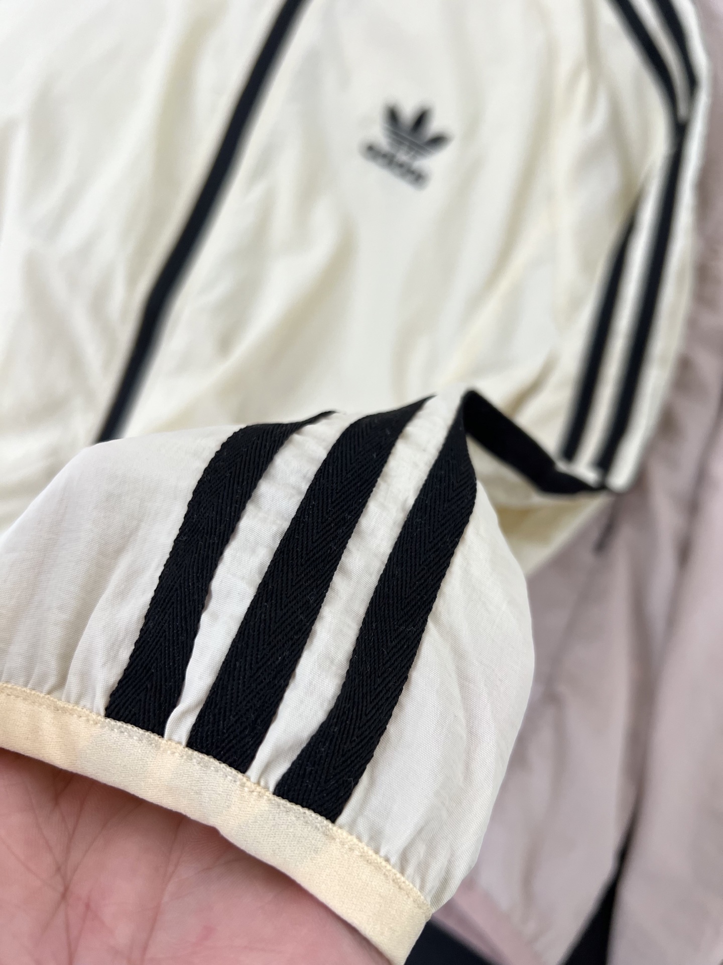 这款衣服是AAAAA 1:1 质量 (非常棒). 使用了和原版一模一样的材料. 商标部分也保持了和阿迪达斯/Adidas一样. 图片拍摄是实物衣服拍摄, 您所收到的实物保证和我们图片一模一样.