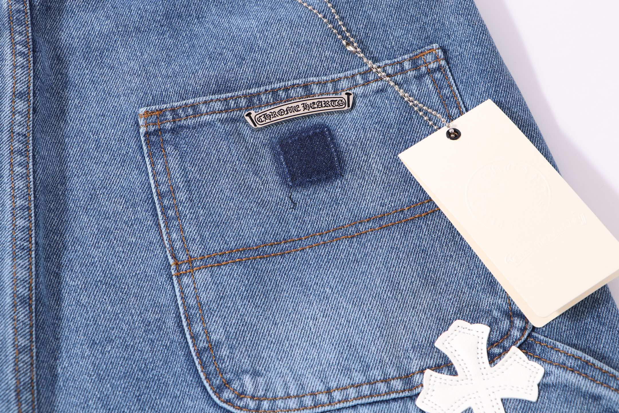 这款衣服是AAAAA 1:1 质量 (非常棒). 使用了和原版一模一样的材料. 商标部分也保持了和克罗心/Chrome Hearts一样. 图片拍摄是实物衣服拍摄, 您所收到的实物保证和我们图片一模一样.
