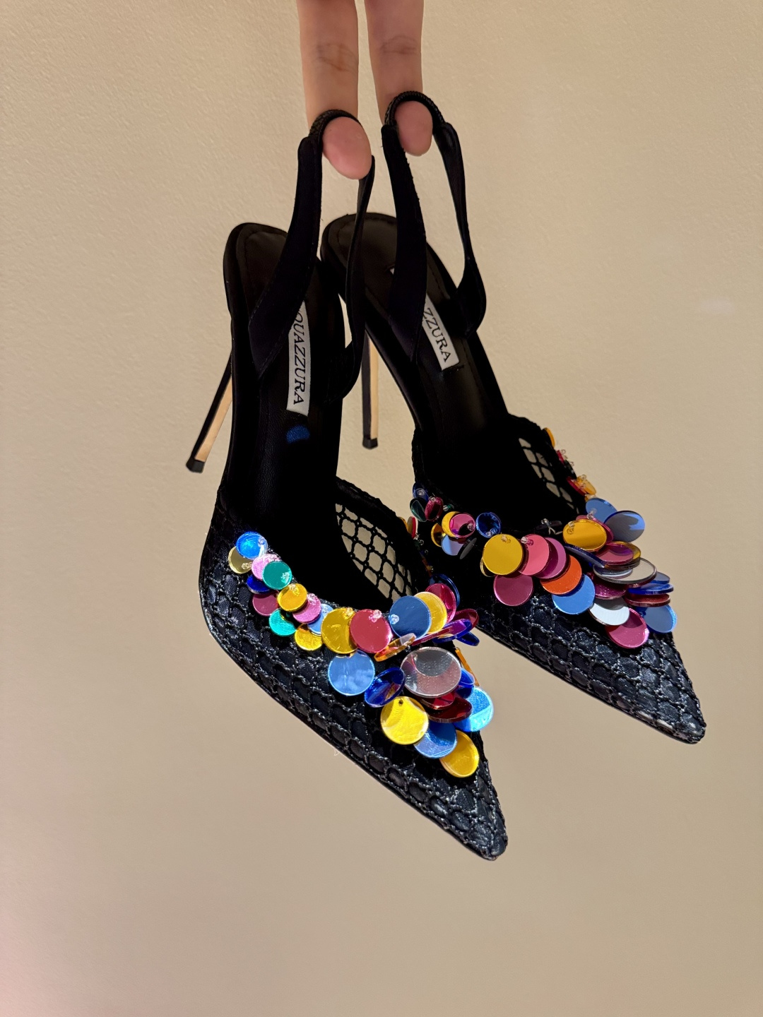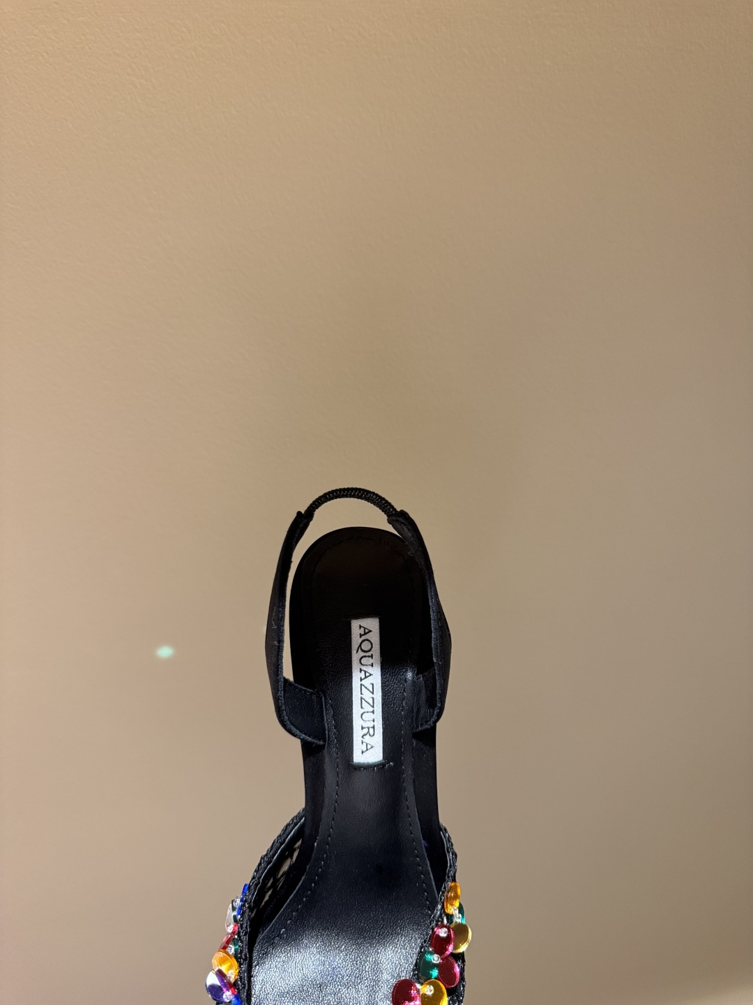这款鞋子是AAAAA 1:1 质量 (非常棒). 使用了和原版一模一样的材料. 商标部分也保持了和Aquazzura一样. 图片拍摄是实物鞋子拍摄, 您所收到的实物保证和我们图片一模一样.