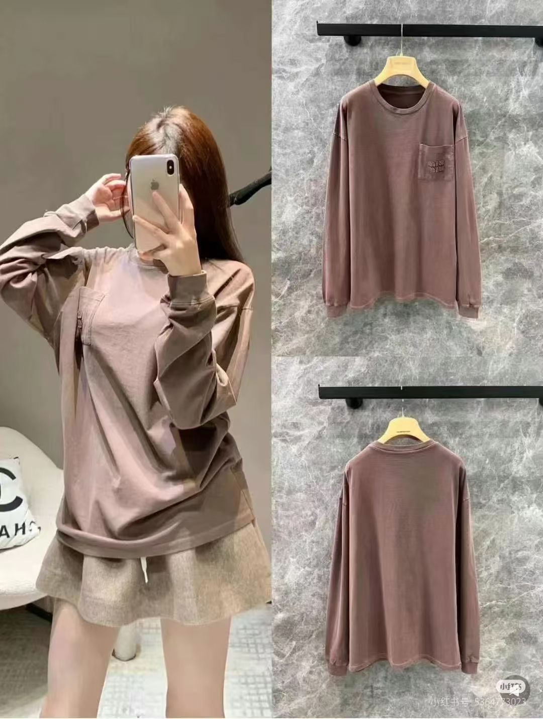 这款衣服是AAAAA 1:1 质量 (非常棒). 使用了和原版一模一样的材料. 商标部分也保持了和缪缪/Miu Miu一样. 图片拍摄是实物衣服拍摄, 您所收到的实物保证和我们图片一模一样.