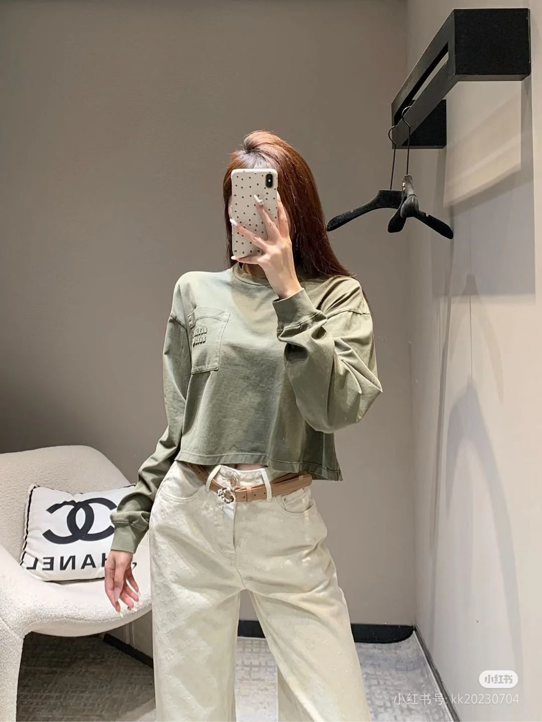 这款衣服是AAAAA 1:1 质量 (非常棒). 使用了和原版一模一样的材料. 商标部分也保持了和缪缪/Miu Miu一样. 图片拍摄是实物衣服拍摄, 您所收到的实物保证和我们图片一模一样.