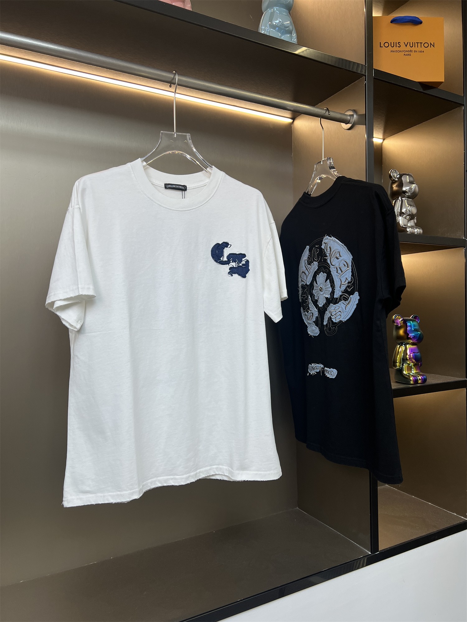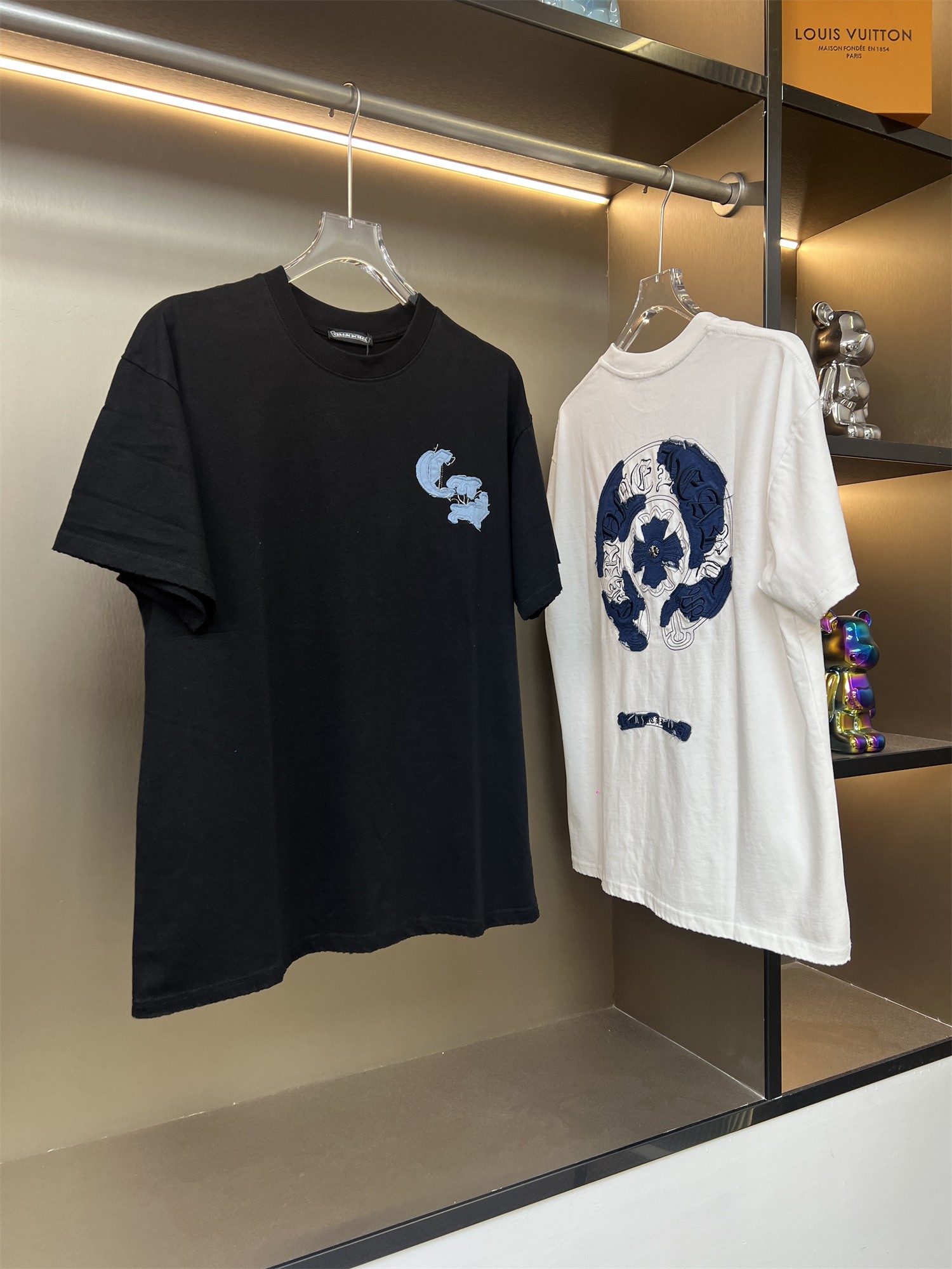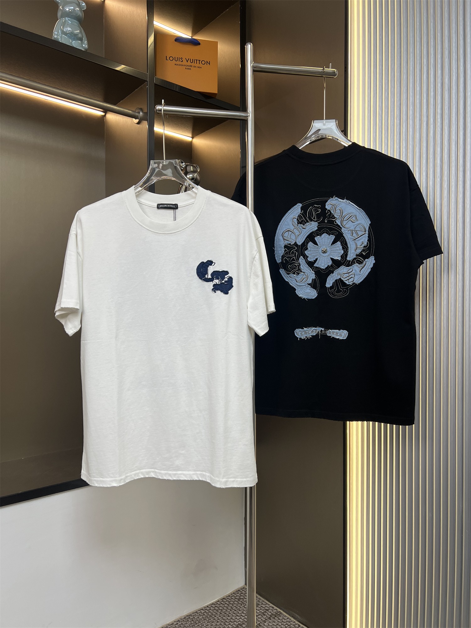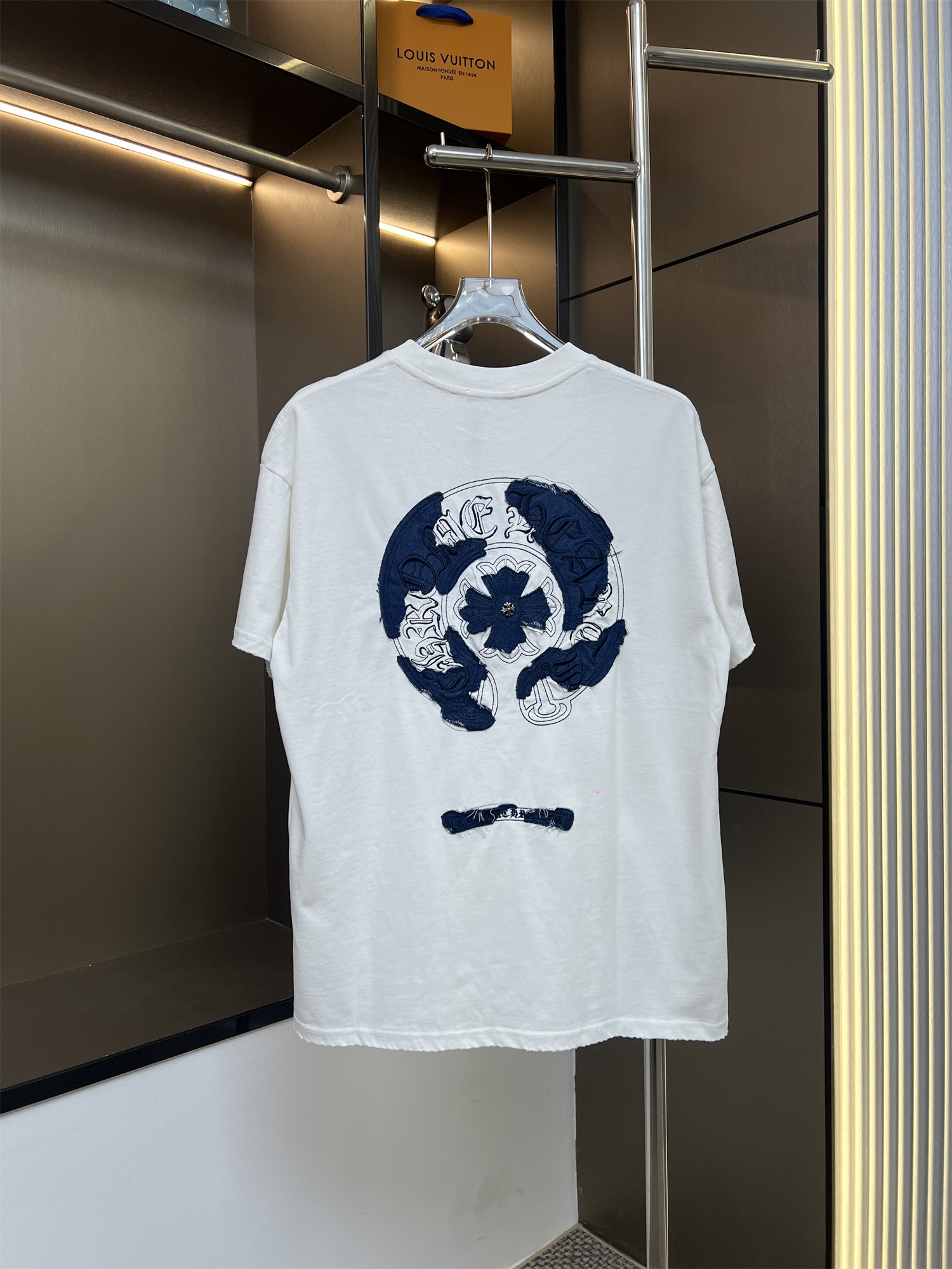 这款衣服是AAAAA 1:1 质量 (非常棒). 使用了和原版一模一样的材料. 商标部分也保持了和克罗心/Chrome Hearts一样. 图片拍摄是实物衣服拍摄, 您所收到的实物保证和我们图片一模一样.