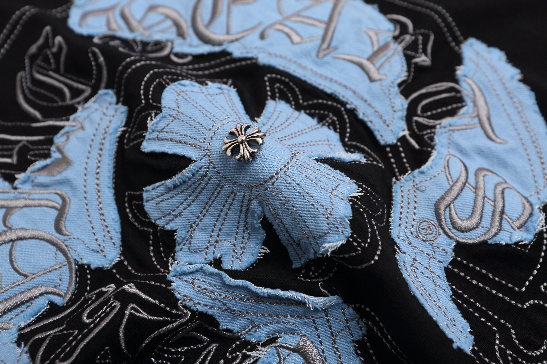 这款衣服是AAAAA 1:1 质量 (非常棒). 使用了和原版一模一样的材料. 商标部分也保持了和克罗心/Chrome Hearts一样. 图片拍摄是实物衣服拍摄, 您所收到的实物保证和我们图片一模一样.