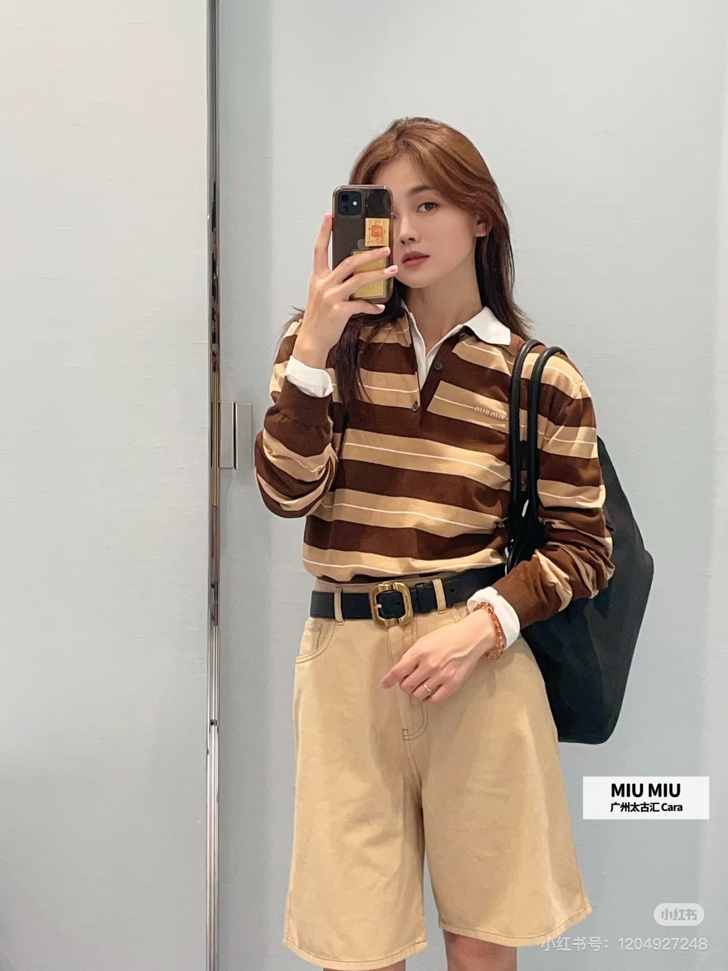 这款衣服是AAAAA 1:1 质量 (非常棒). 使用了和原版一模一样的材料. 商标部分也保持了和缪缪/Miu Miu一样. 图片拍摄是实物衣服拍摄, 您所收到的实物保证和我们图片一模一样.
