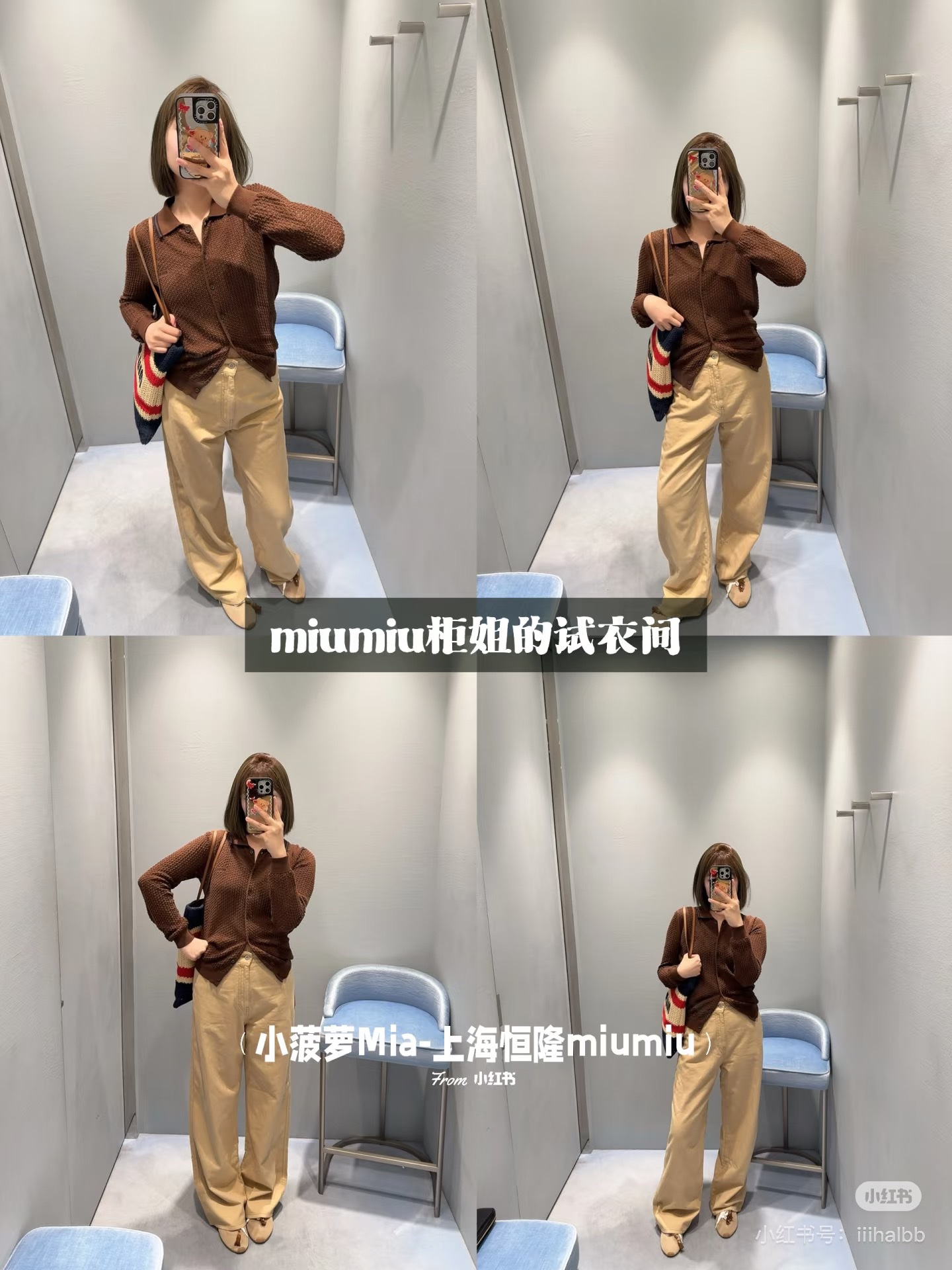 这款衣服是AAAAA 1:1 质量 (非常棒). 使用了和原版一模一样的材料. 商标部分也保持了和缪缪/Miu Miu一样. 图片拍摄是实物衣服拍摄, 您所收到的实物保证和我们图片一模一样.