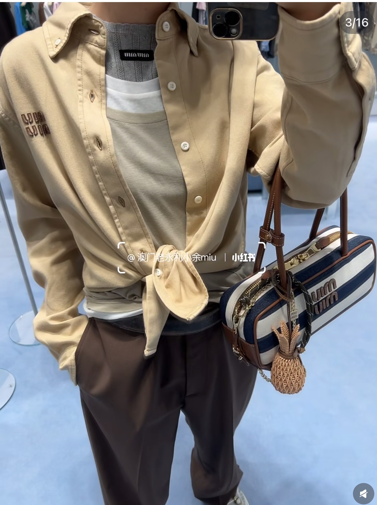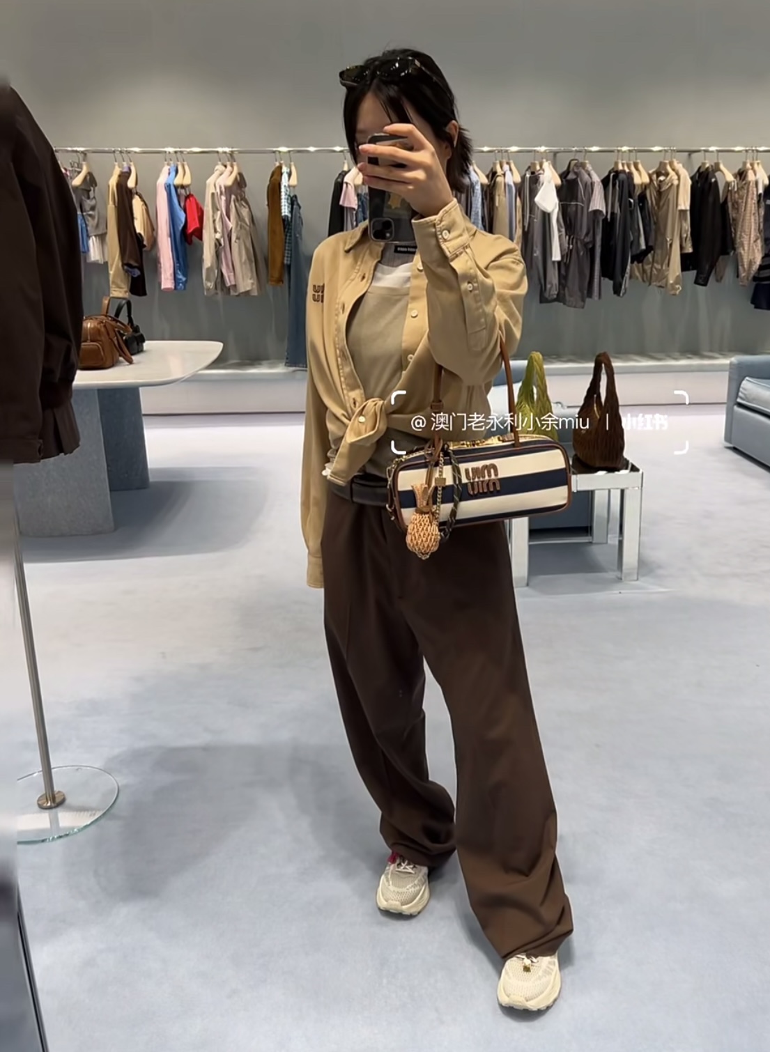这款衣服是AAAAA 1:1 质量 (非常棒). 使用了和原版一模一样的材料. 商标部分也保持了和缪缪/Miu Miu一样. 图片拍摄是实物衣服拍摄, 您所收到的实物保证和我们图片一模一样.