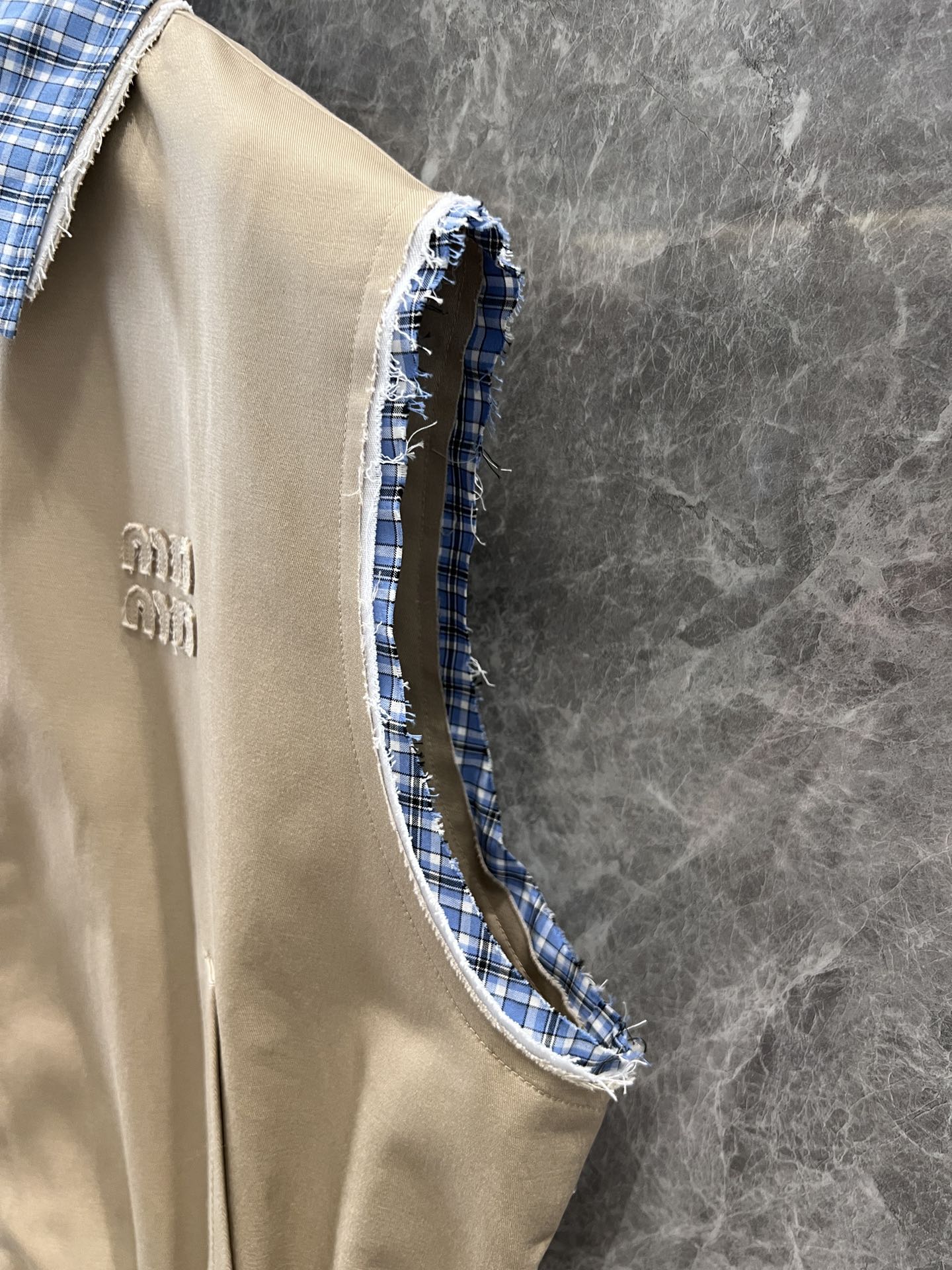 这款衣服是AAAAA 1:1 质量 (非常棒). 使用了和原版一模一样的材料. 商标部分也保持了和缪缪/Miu Miu一样. 图片拍摄是实物衣服拍摄, 您所收到的实物保证和我们图片一模一样.