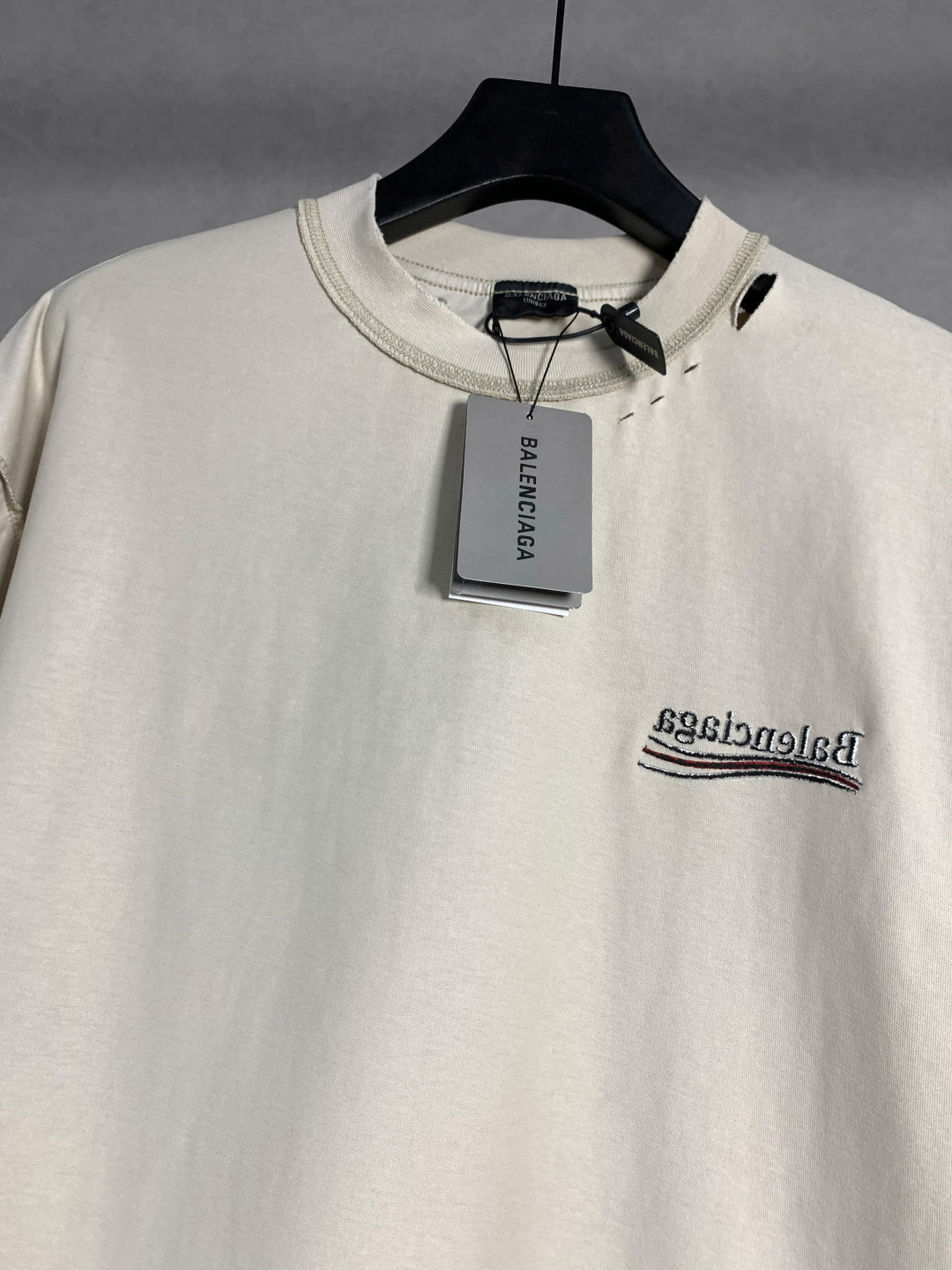 这款衣服是AAAAA 1:1 质量 (非常棒). 使用了和原版一模一样的材料. 商标部分也保持了和巴黎世家/Balenciaga一样. 图片拍摄是实物衣服拍摄, 您所收到的实物保证和我们图片一模一样.