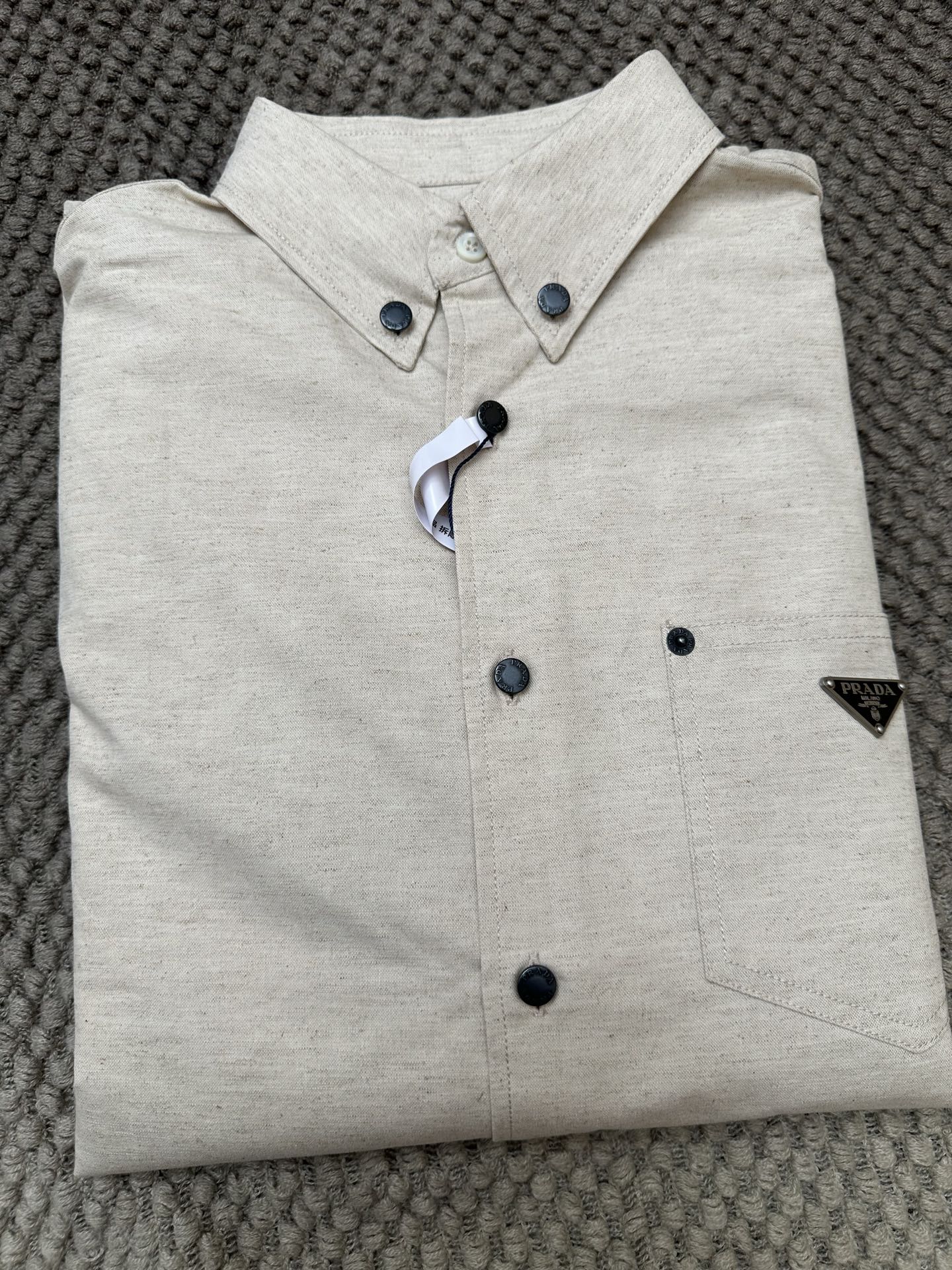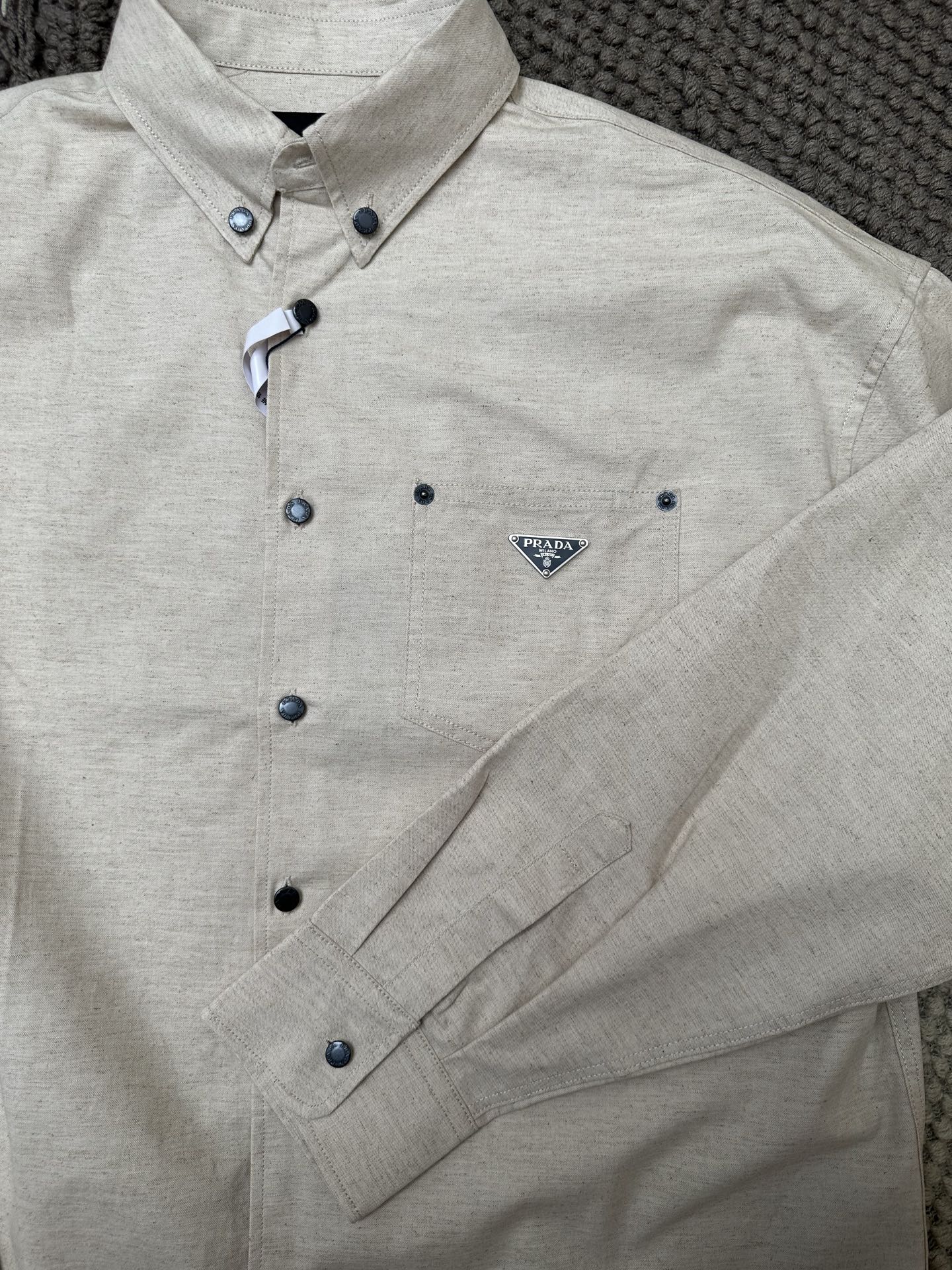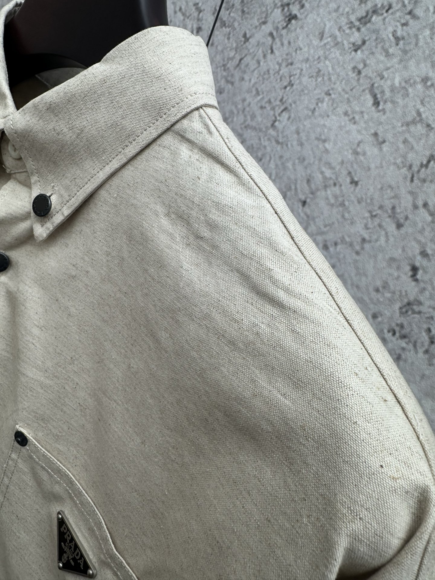 这款衣服是AAAAA 1:1 质量 (非常棒). 使用了和原版一模一样的材料. 商标部分也保持了和普拉达/Prada一样. 图片拍摄是实物衣服拍摄, 您所收到的实物保证和我们图片一模一样.