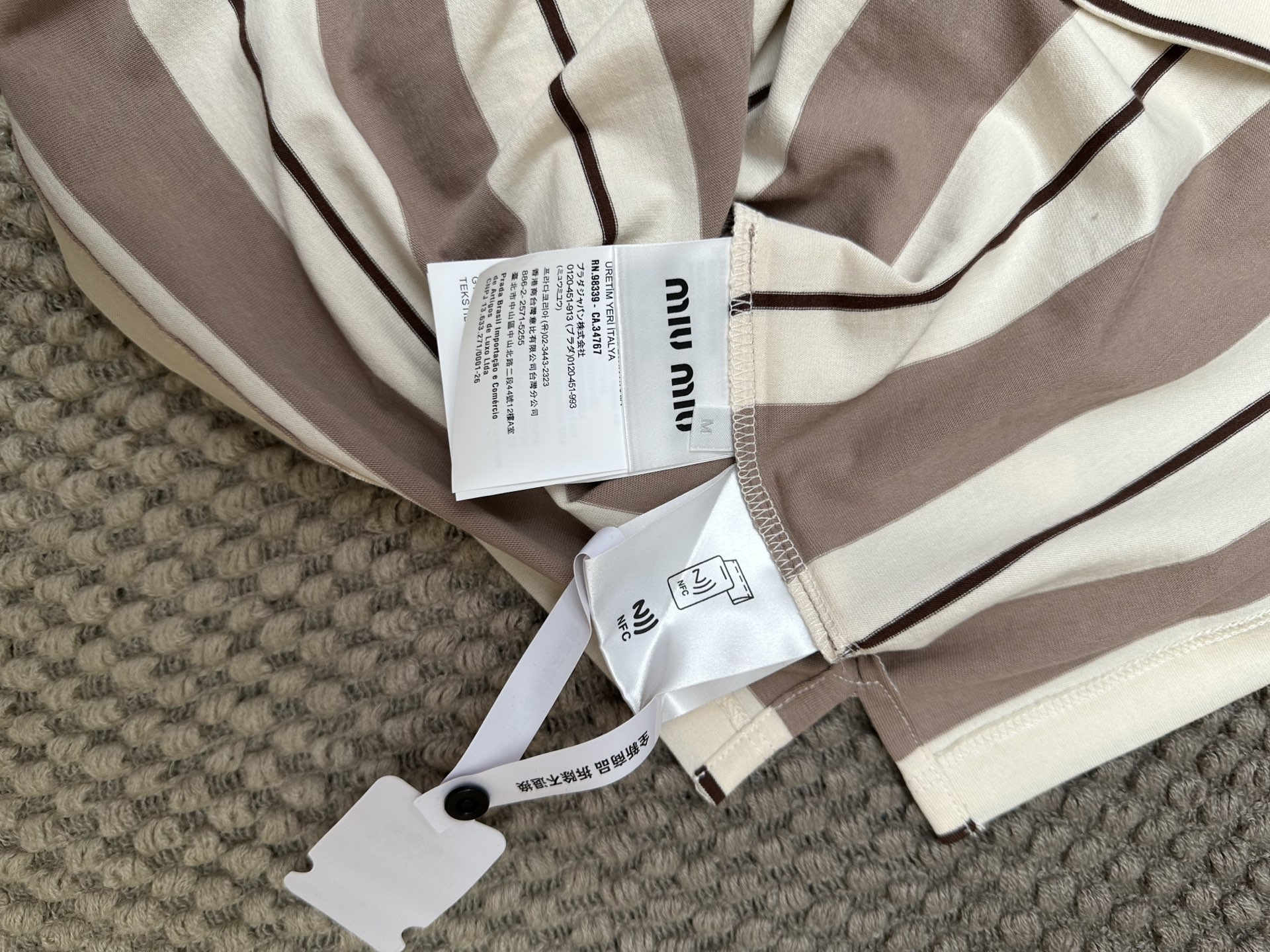 这款衣服是AAAAA 1:1 质量 (非常棒). 使用了和原版一模一样的材料. 商标部分也保持了和缪缪/Miu Miu一样. 图片拍摄是实物衣服拍摄, 您所收到的实物保证和我们图片一模一样.