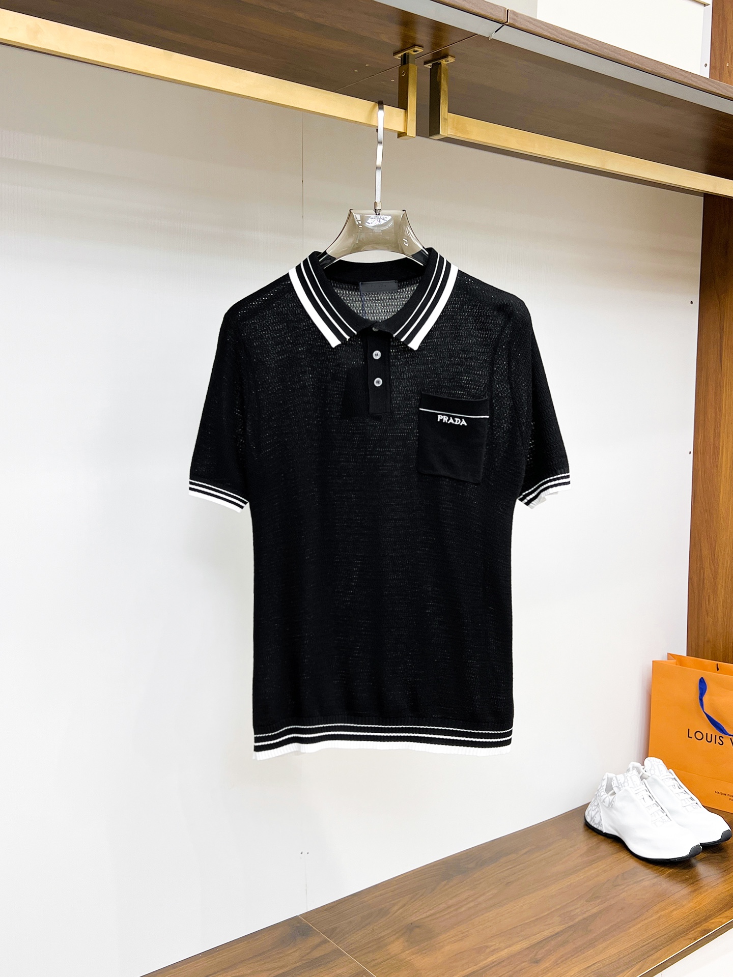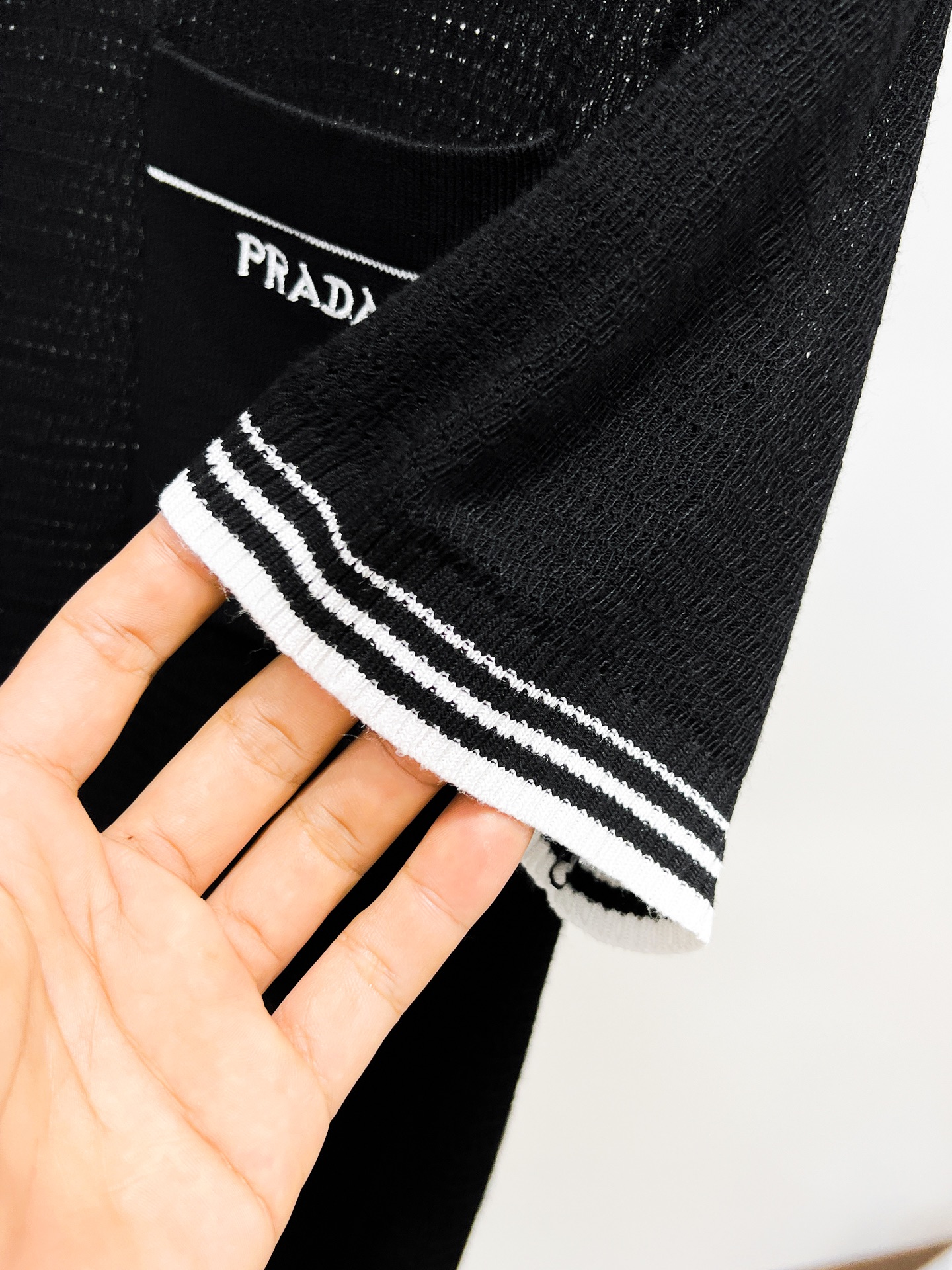 这款衣服是AAAAA 1:1 质量 (非常棒). 使用了和原版一模一样的材料. 商标部分也保持了和普拉达/Prada一样. 图片拍摄是实物衣服拍摄, 您所收到的实物保证和我们图片一模一样.