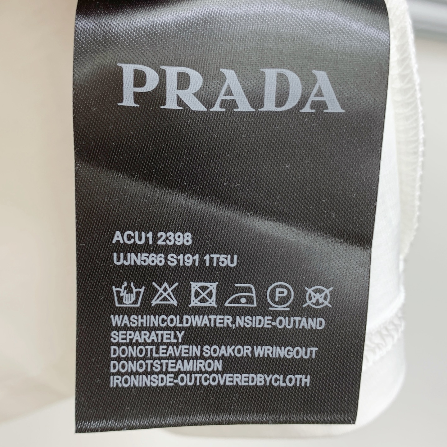 这款衣服是AAAAA 1:1 质量 (非常棒). 使用了和原版一模一样的材料. 商标部分也保持了和普拉达/Prada一样. 图片拍摄是实物衣服拍摄, 您所收到的实物保证和我们图片一模一样.