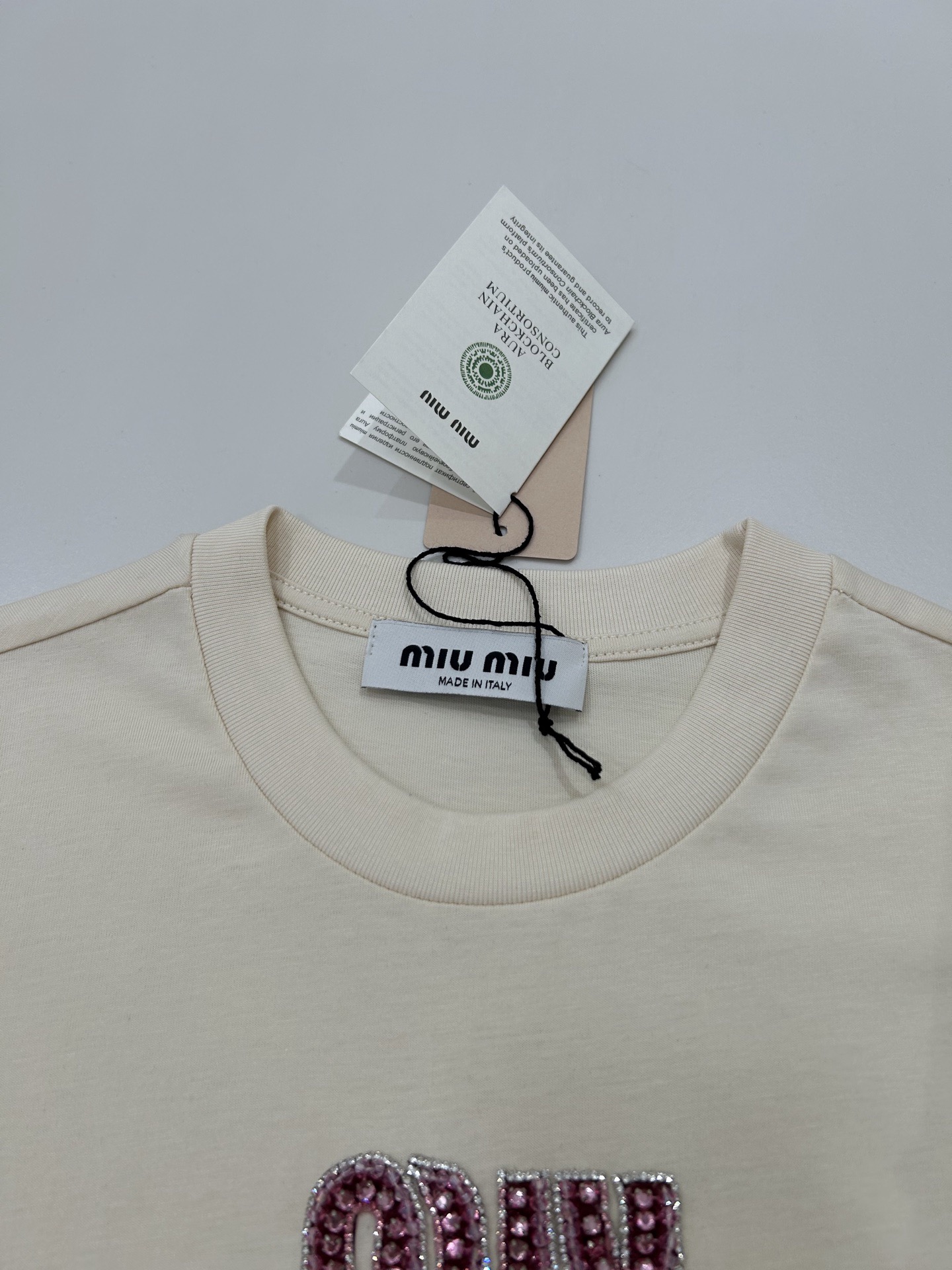 这款衣服是AAAAA 1:1 质量 (非常棒). 使用了和原版一模一样的材料. 商标部分也保持了和缪缪/Miu Miu一样. 图片拍摄是实物衣服拍摄, 您所收到的实物保证和我们图片一模一样.