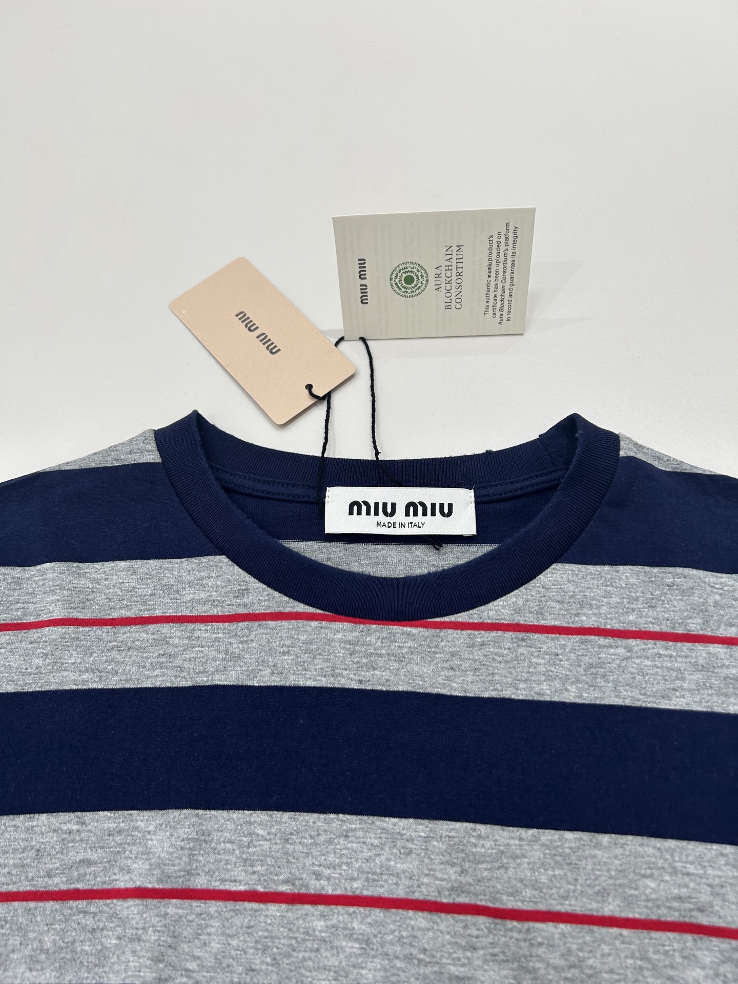 这款衣服是AAAAA 1:1 质量 (非常棒). 使用了和原版一模一样的材料. 商标部分也保持了和缪缪/Miu Miu一样. 图片拍摄是实物衣服拍摄, 您所收到的实物保证和我们图片一模一样.