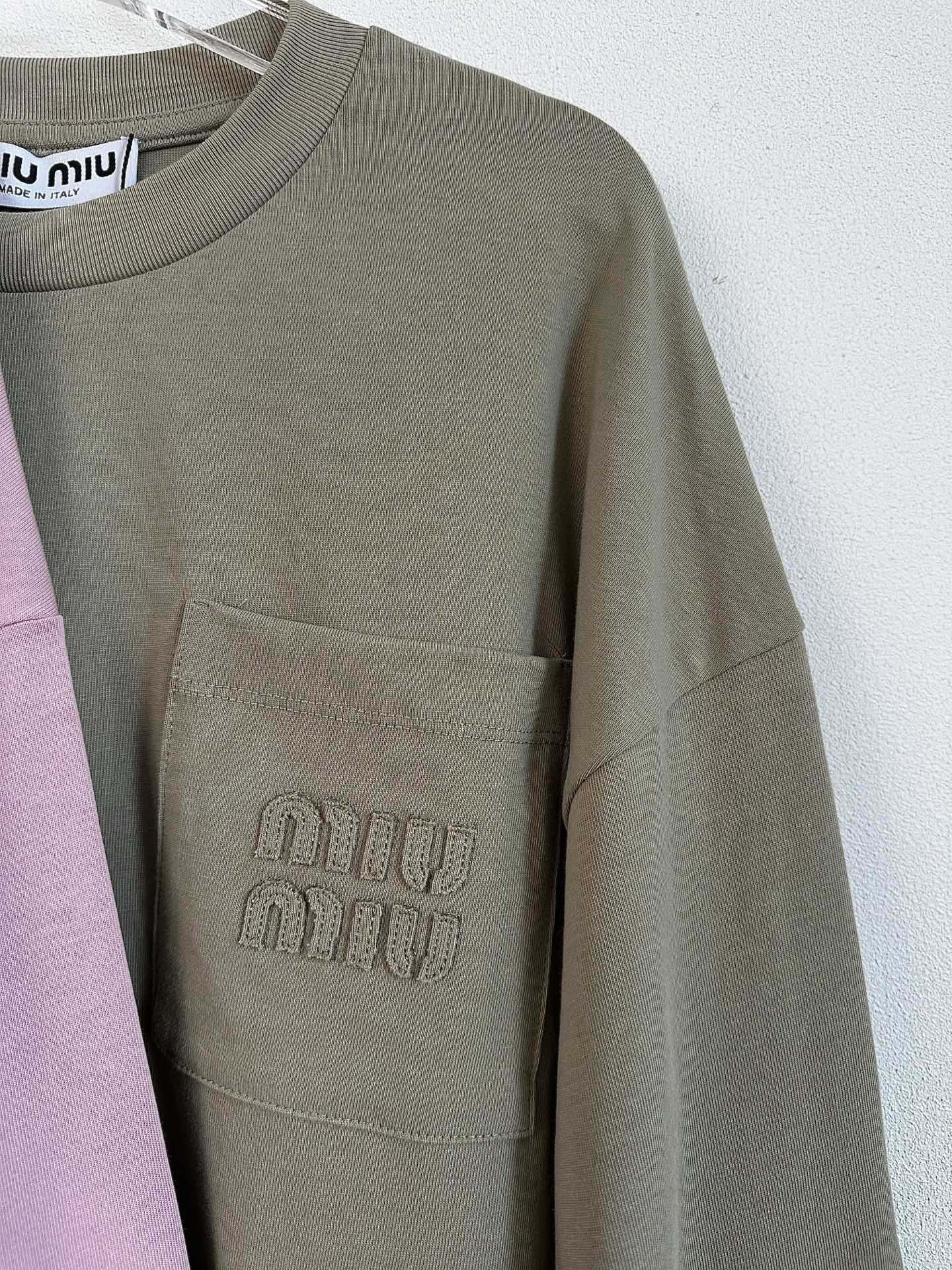 这款衣服是AAAAA 1:1 质量 (非常棒). 使用了和原版一模一样的材料. 商标部分也保持了和缪缪/Miu Miu一样. 图片拍摄是实物衣服拍摄, 您所收到的实物保证和我们图片一模一样.