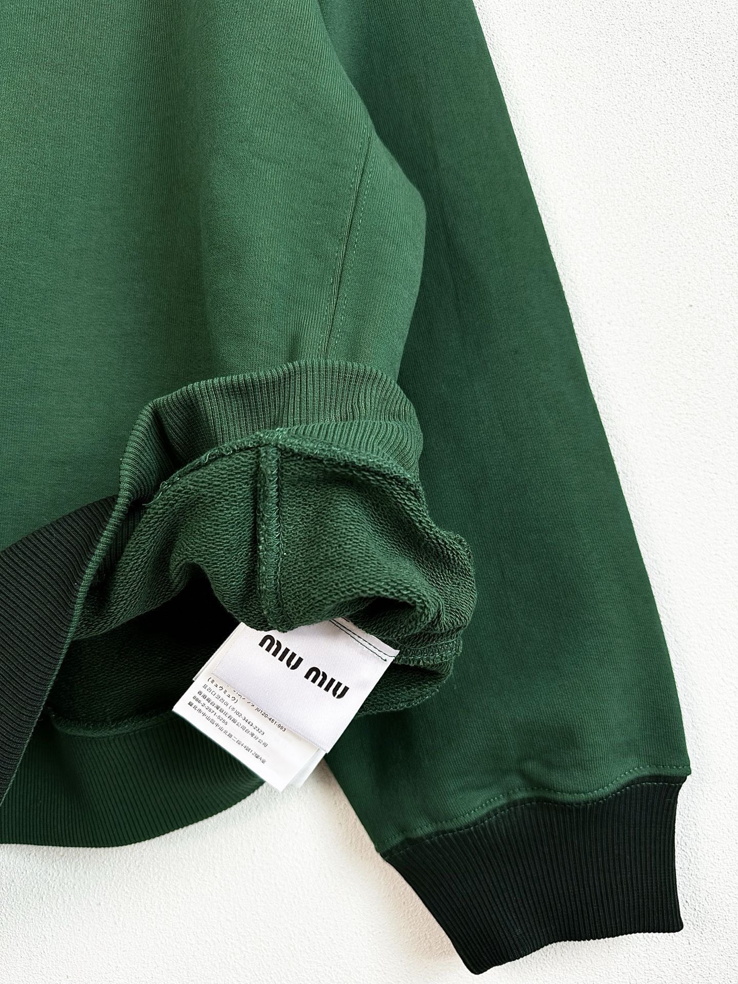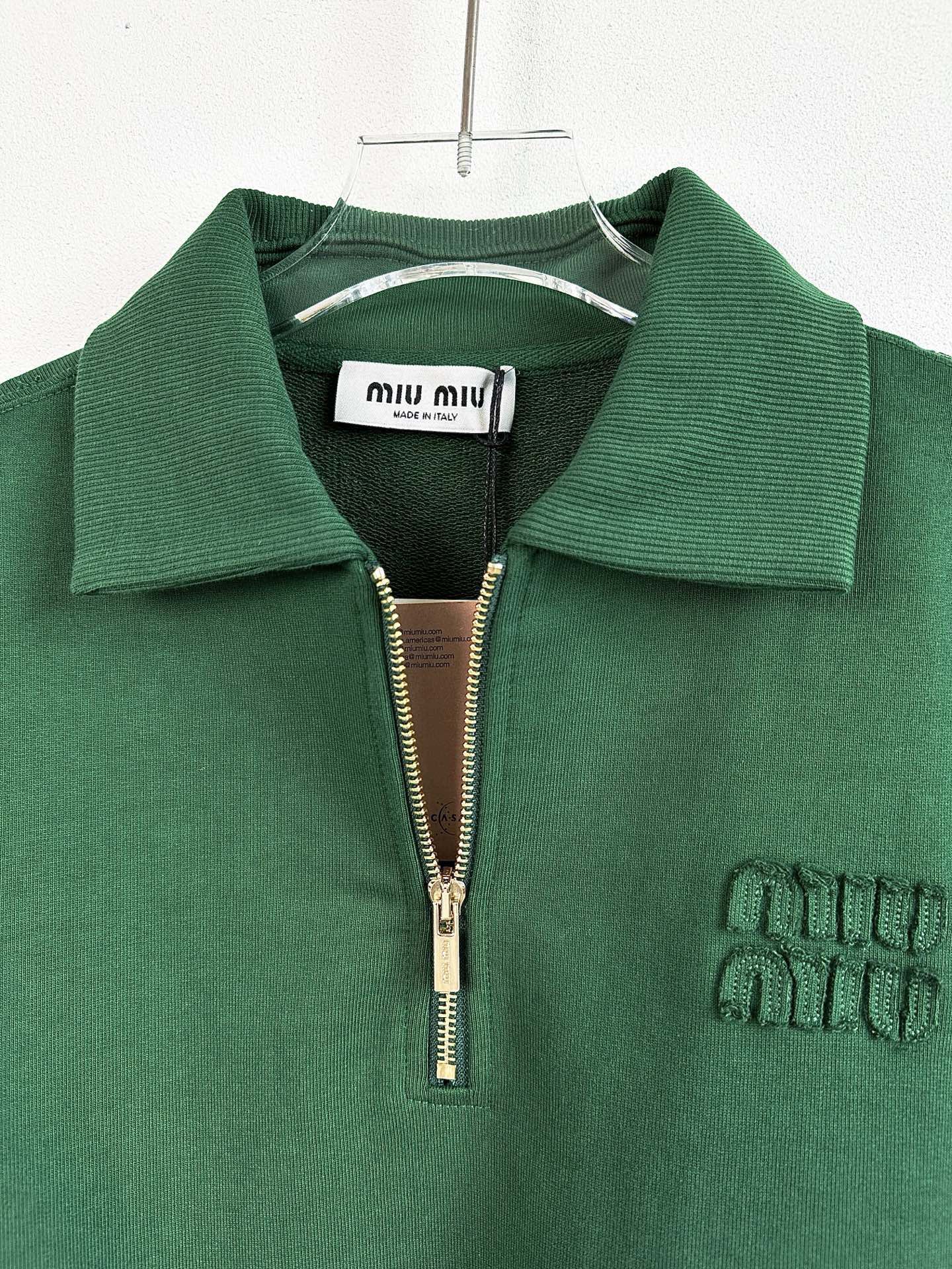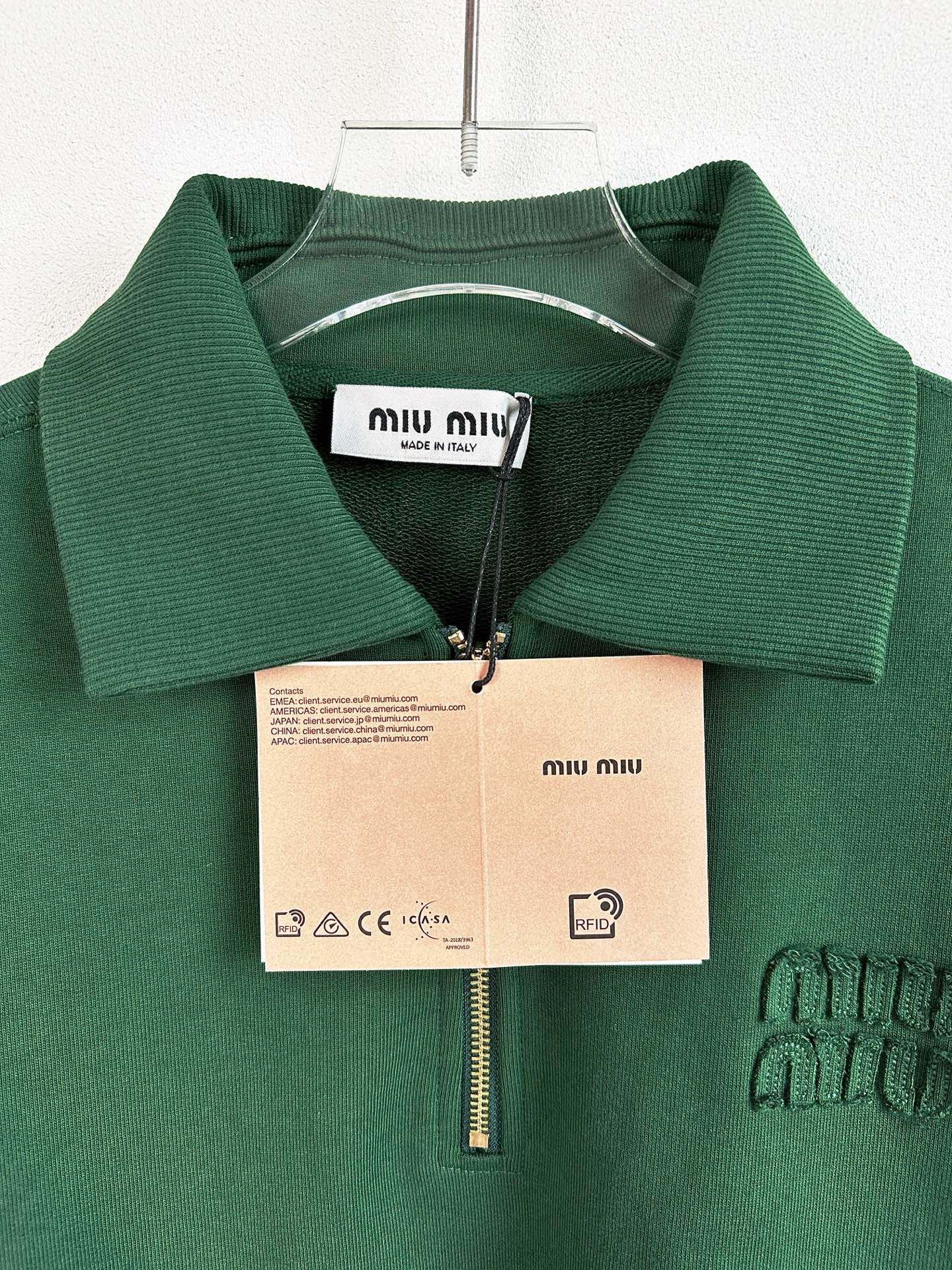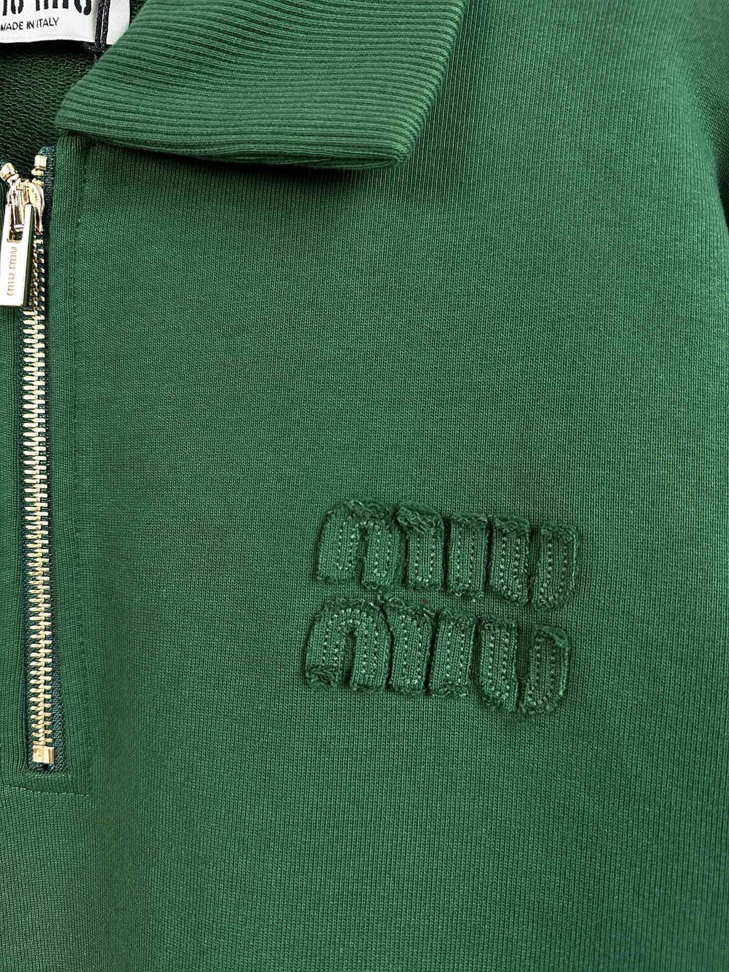 这款衣服是AAAAA 1:1 质量 (非常棒). 使用了和原版一模一样的材料. 商标部分也保持了和缪缪/Miu Miu一样. 图片拍摄是实物衣服拍摄, 您所收到的实物保证和我们图片一模一样.