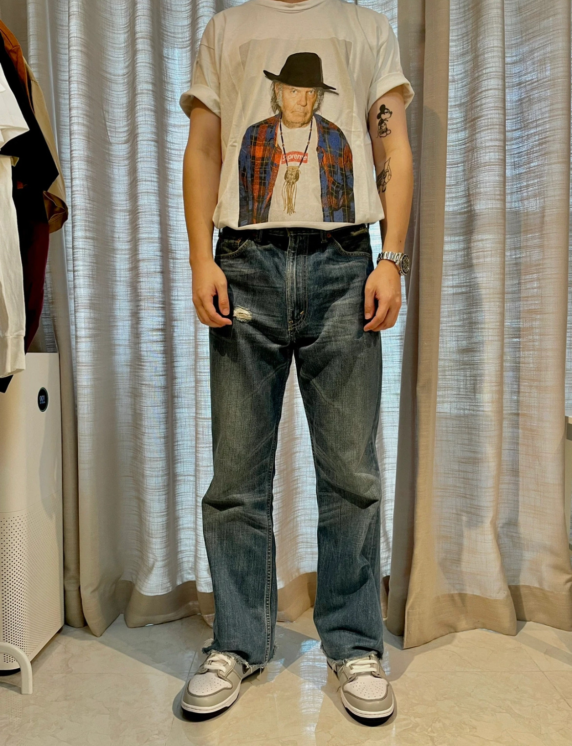 这款衣服是AAAAA 1:1 质量 (非常棒). 使用了和原版一模一样的材料. 商标部分也保持了和Superme一样. 图片拍摄是实物衣服拍摄, 您所收到的实物保证和我们图片一模一样.