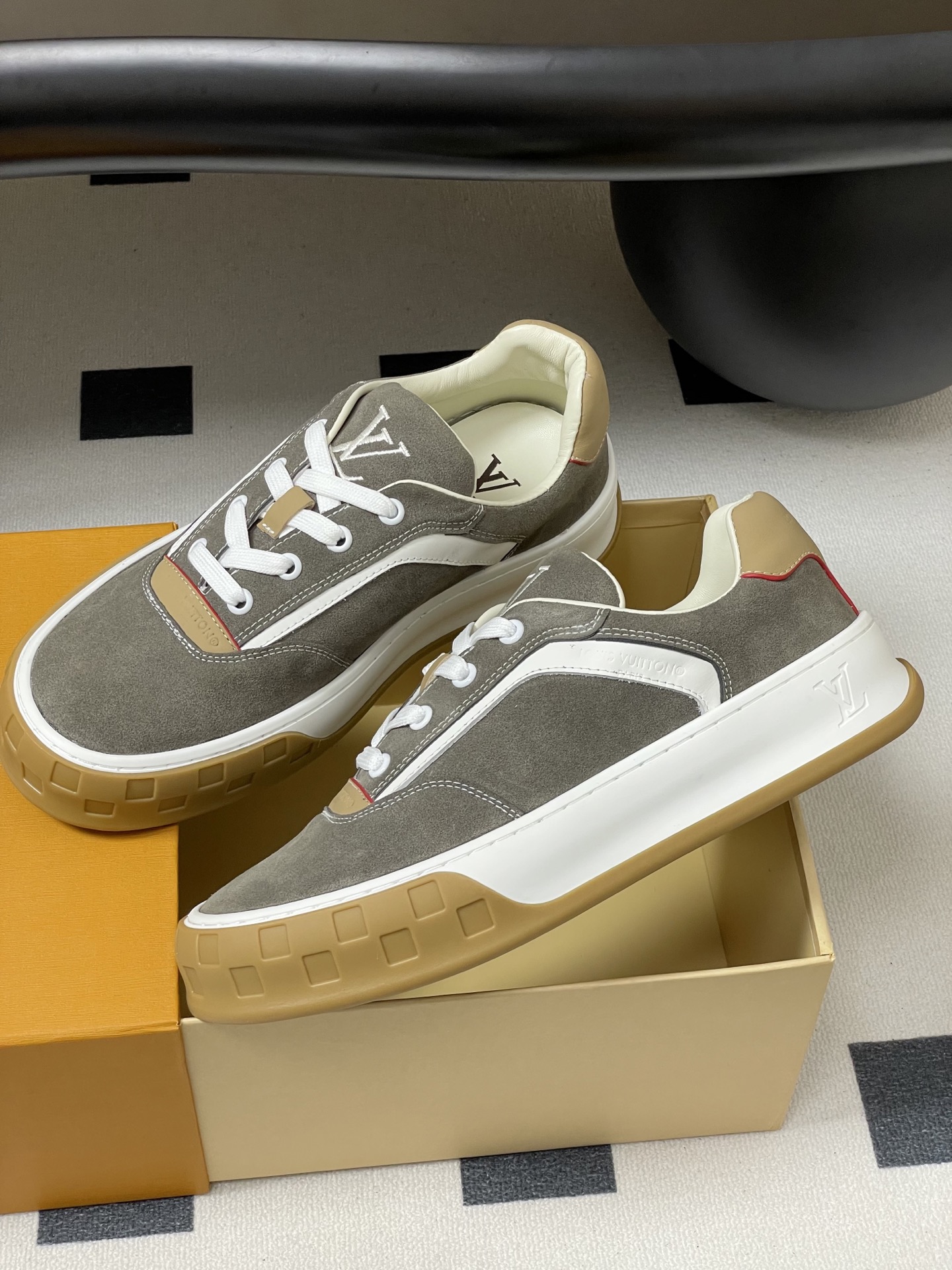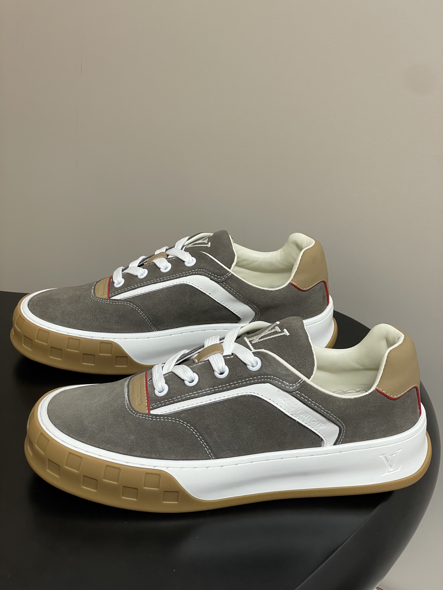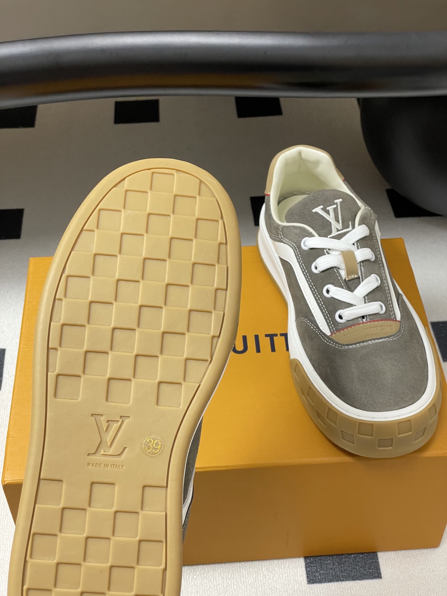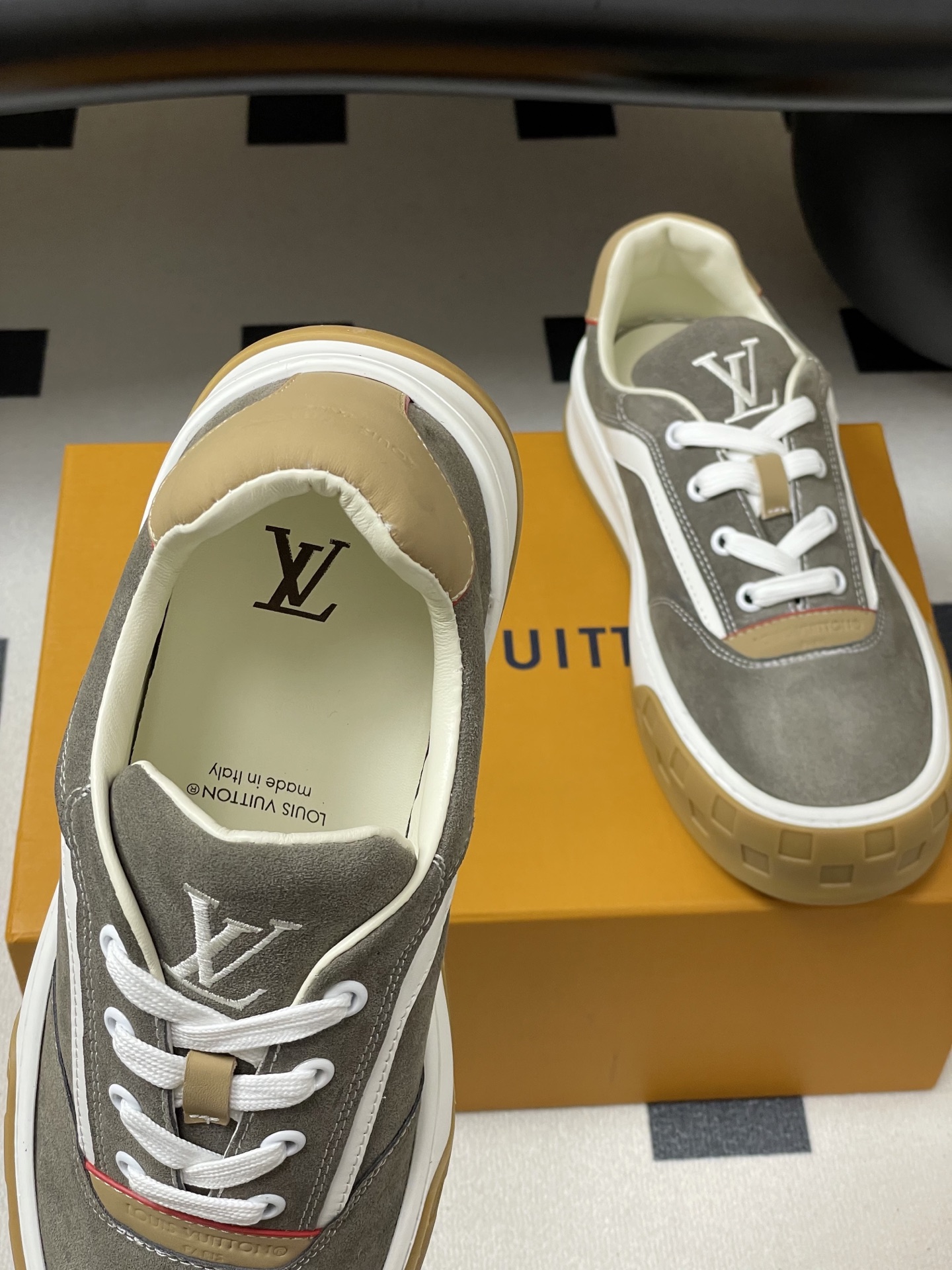 这款鞋子是AAAAA 1:1 质量 (非常棒). 使用了和原版一模一样的材料. 商标部分也保持了和路易威登/Louis Vuitton一样. 图片拍摄是实物鞋子拍摄, 您所收到的实物保证和我们图片一模一样.
